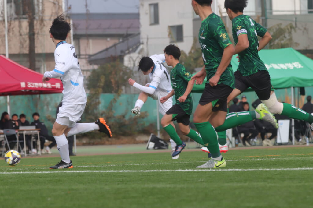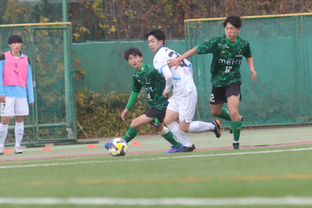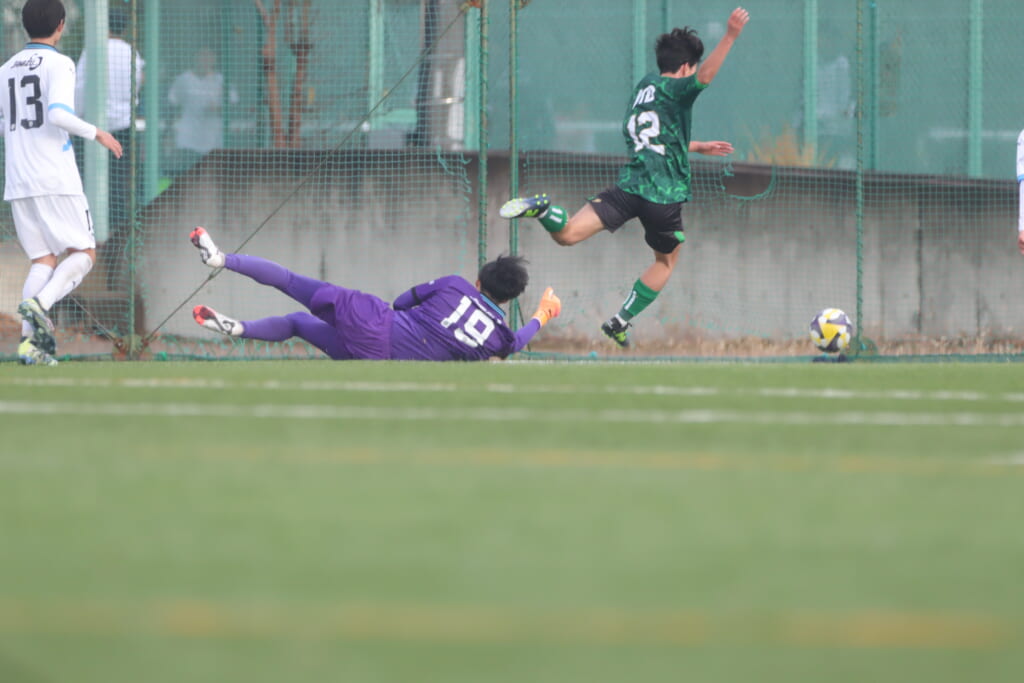さらに恩田が中央でカット。そのパスに木下が正面へ抜け出しますが、ここでも昌平高校がブロック。