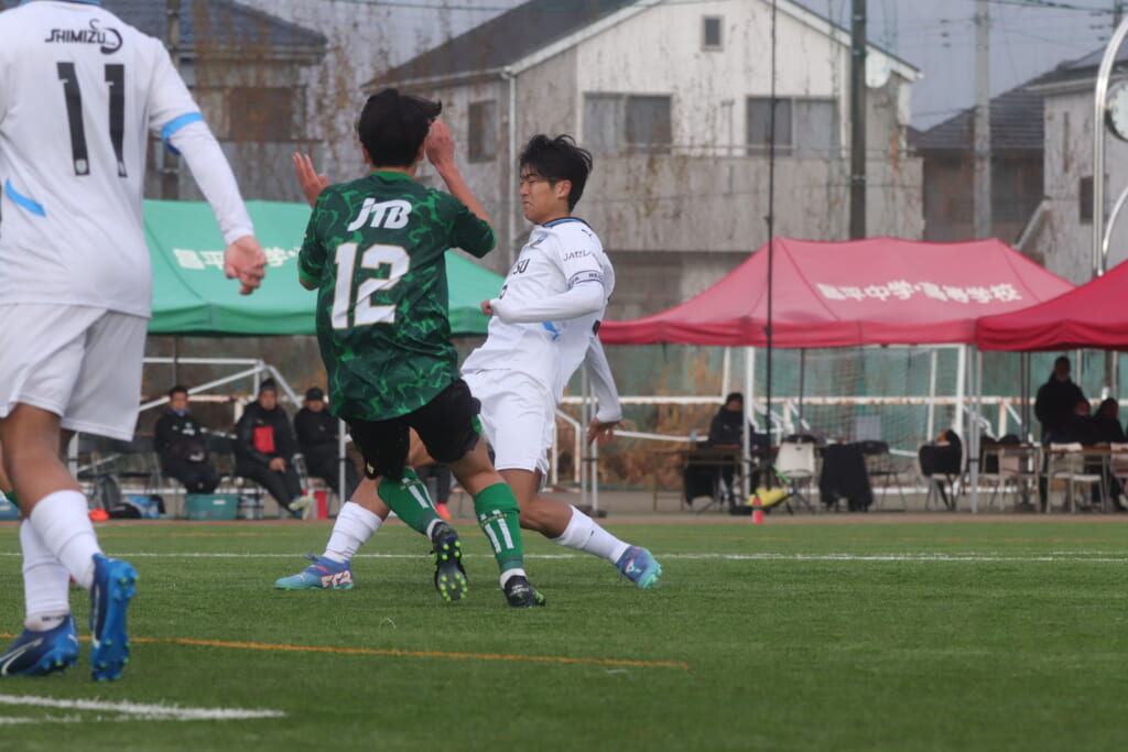 さらにフロンターレは藤田のフィードを廣瀬がおさめ、そのパスに新堀が高い位置への動き出し、昌平高校はそれに対して、カット。正面へ飯島が持ち込んでいきますが、そこから右サイドへ持ち込んできたところ、関がカット。