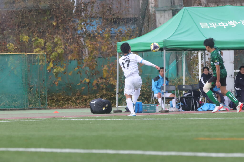 昌平高校のファールによりフリーキックを得て、そのセカンドボールも拾い、攻勢を続けていきます。