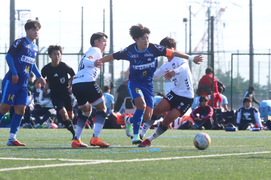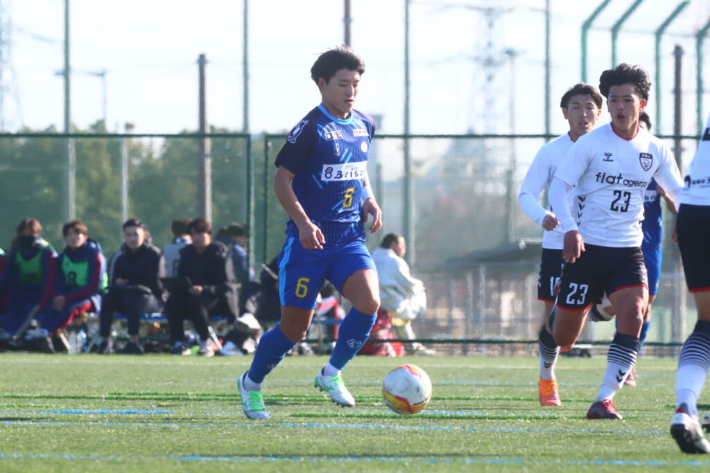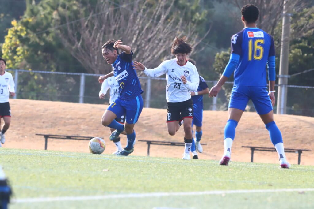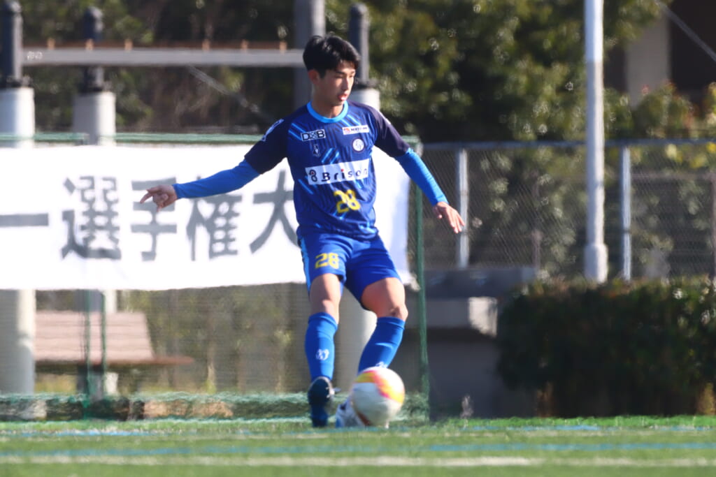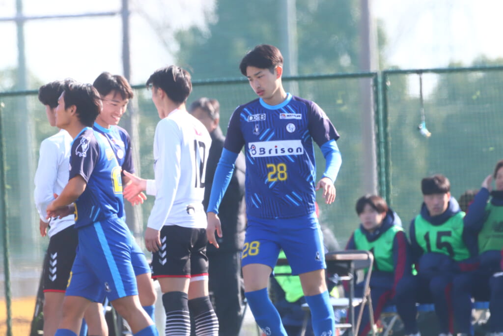先発は、GK12中原碧琉、最終ラインは右から28吉井泰生、4小野成夢、キャプテンの5逵村健斗、ボランチは23大倉慎平、10伊藤翼、右に3滝口晴斗、左に17福永裕也、シャドーに7皿良立輝、14長谷川裟恭、前線には26高川諒希。