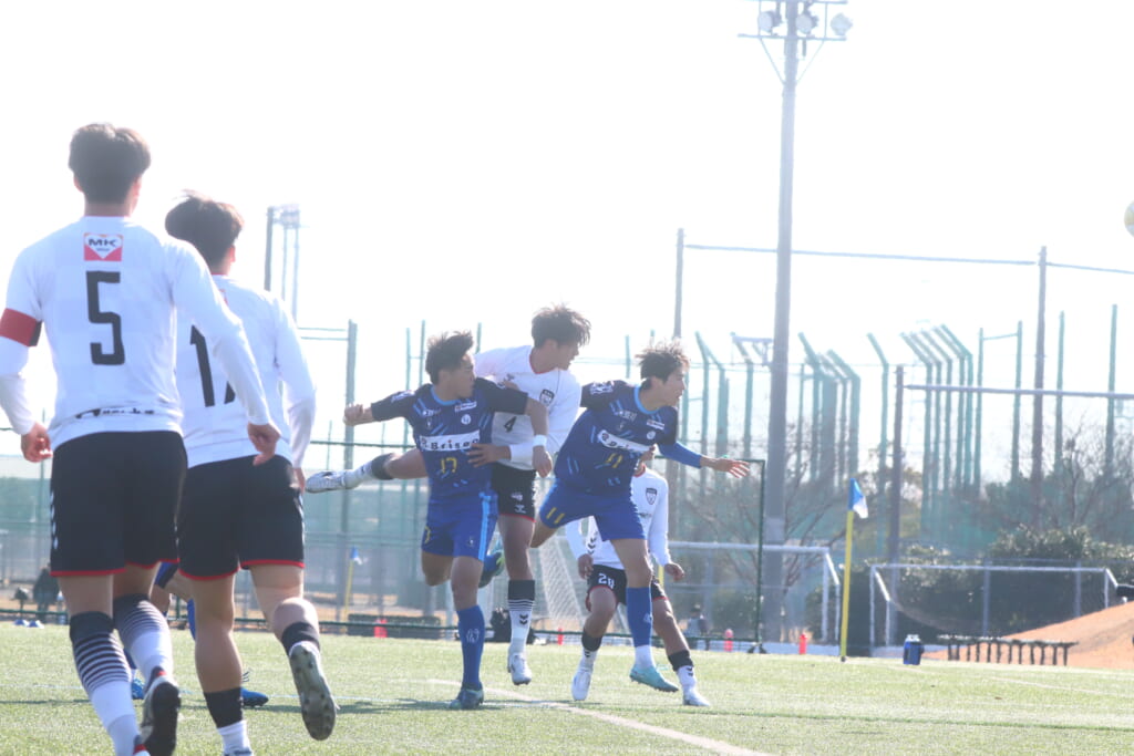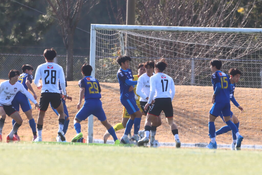 キッカーは皿良。左足で遠いサイドに入れると、セカンドボールを拾い、右クロス。遠いサイドで折り返しますが、桐蔭横浜大は集中してそれに対応していきます。