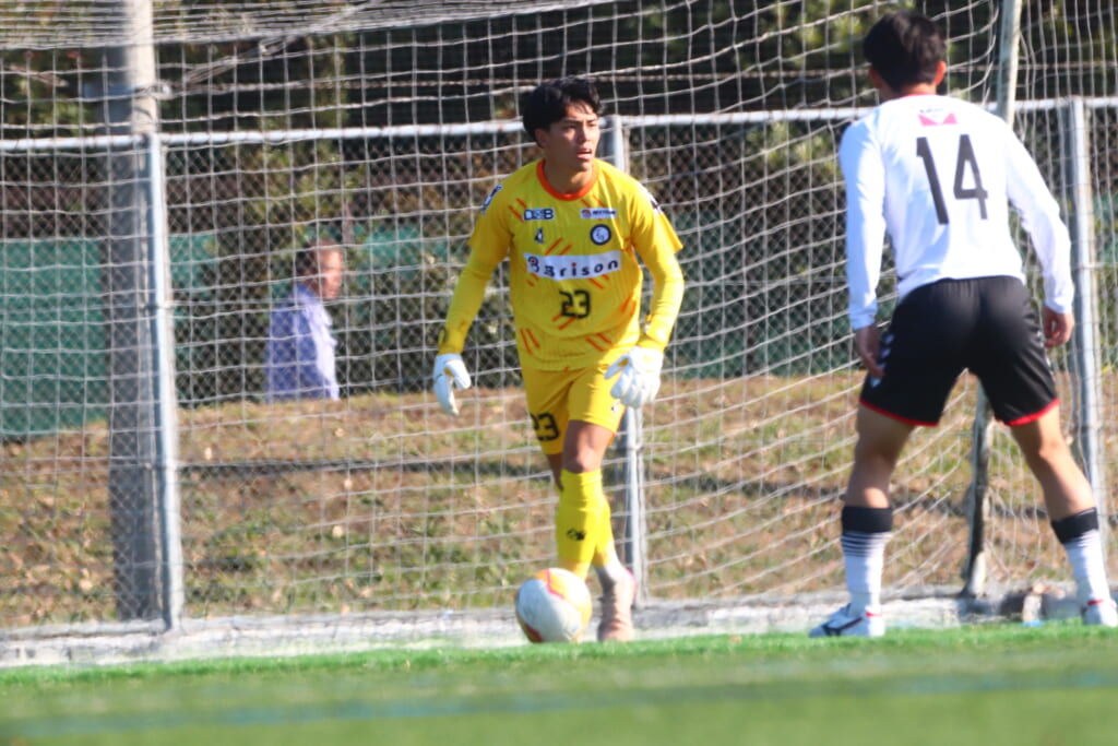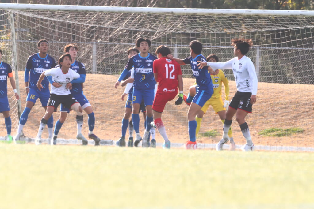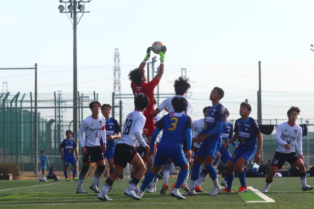 さらに左サイドでのフィードから京都産業大がゴールへ迫る場面をつくりますが吾妻がカバー。
