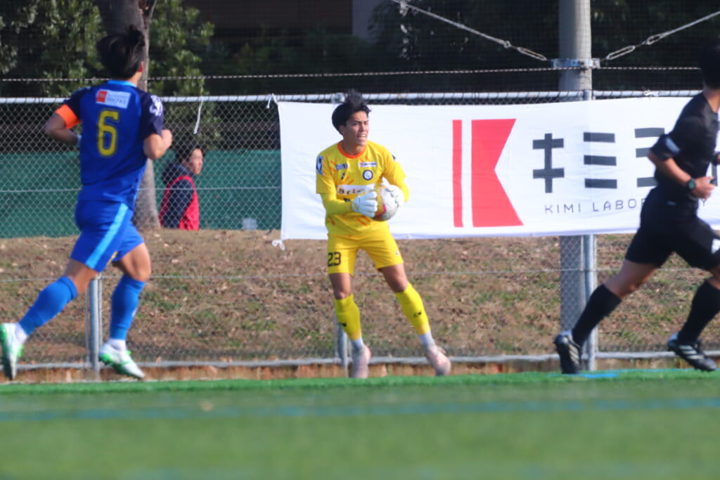 40分にはさらに京都産業大、伊藤のパスに滝口がエリア外右へ。しかし、折り返しに対しては、吾妻が正面をカバー。