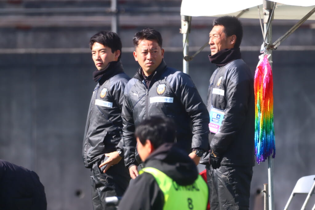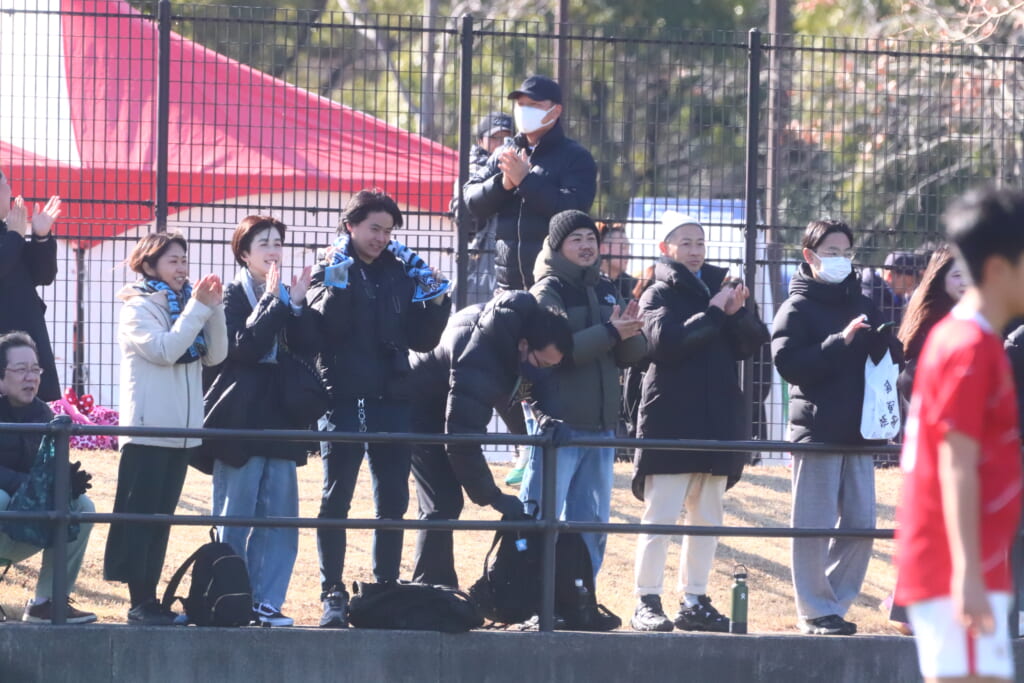 青空の広がった鹿児島ふれあいスポーツランド。ピッチ脇の観客席には、選手の家族らに加え、フロンターレのサポーターの姿も。