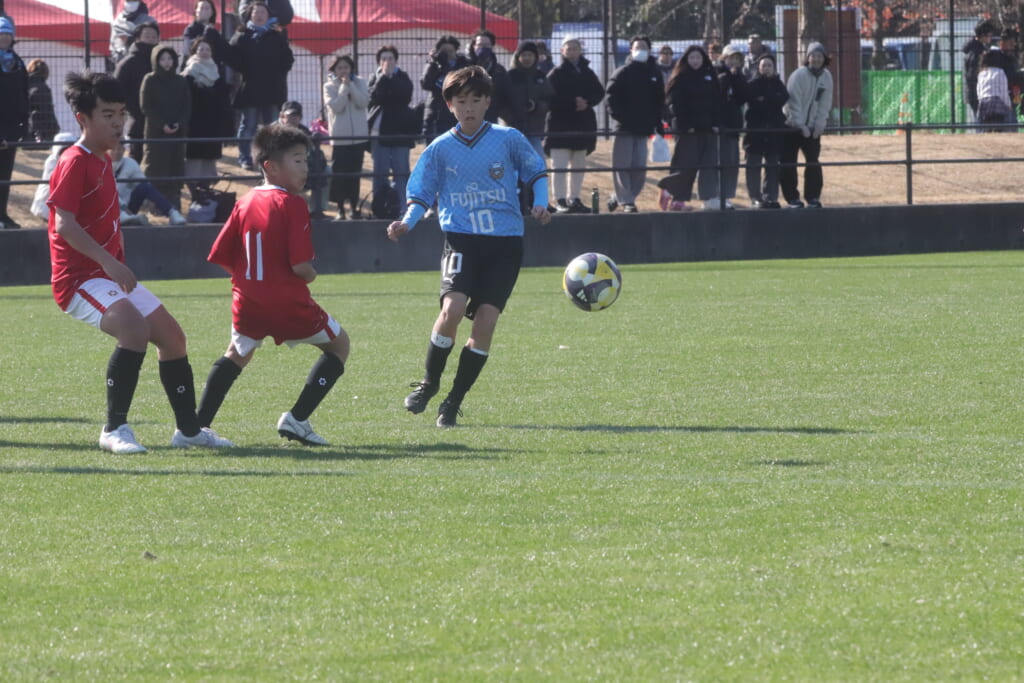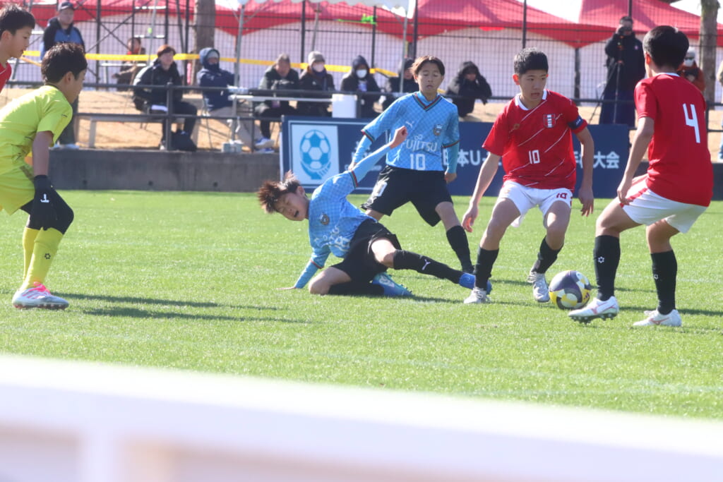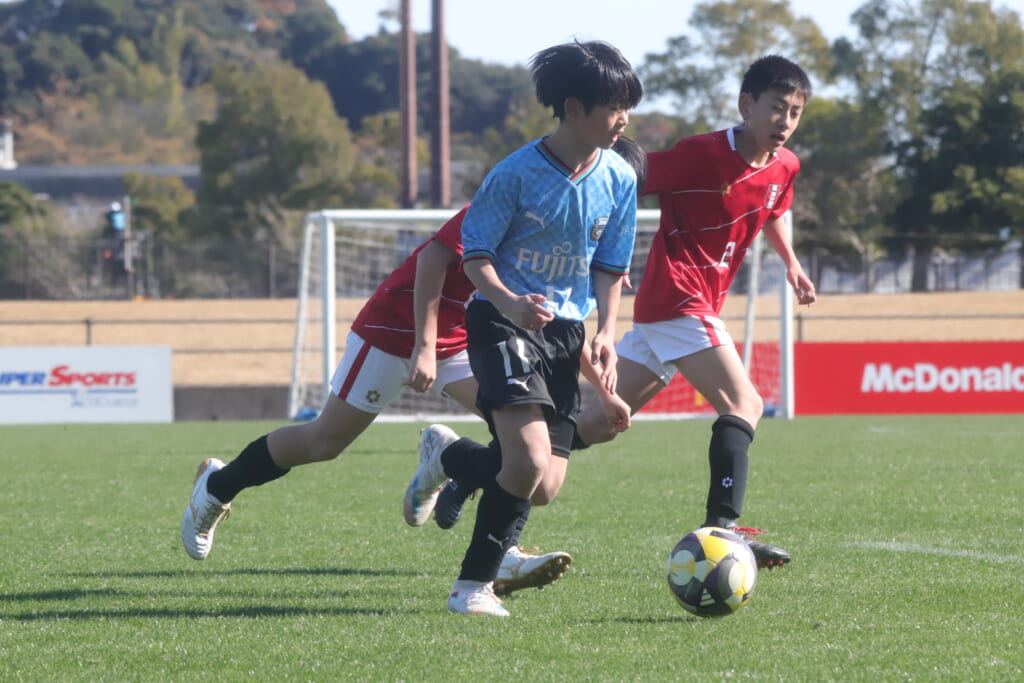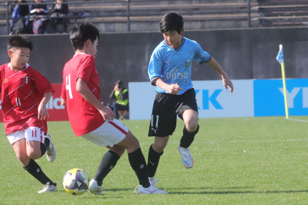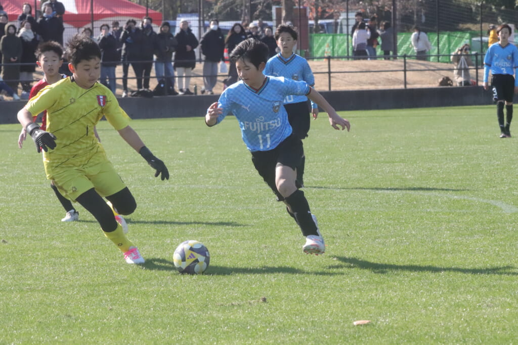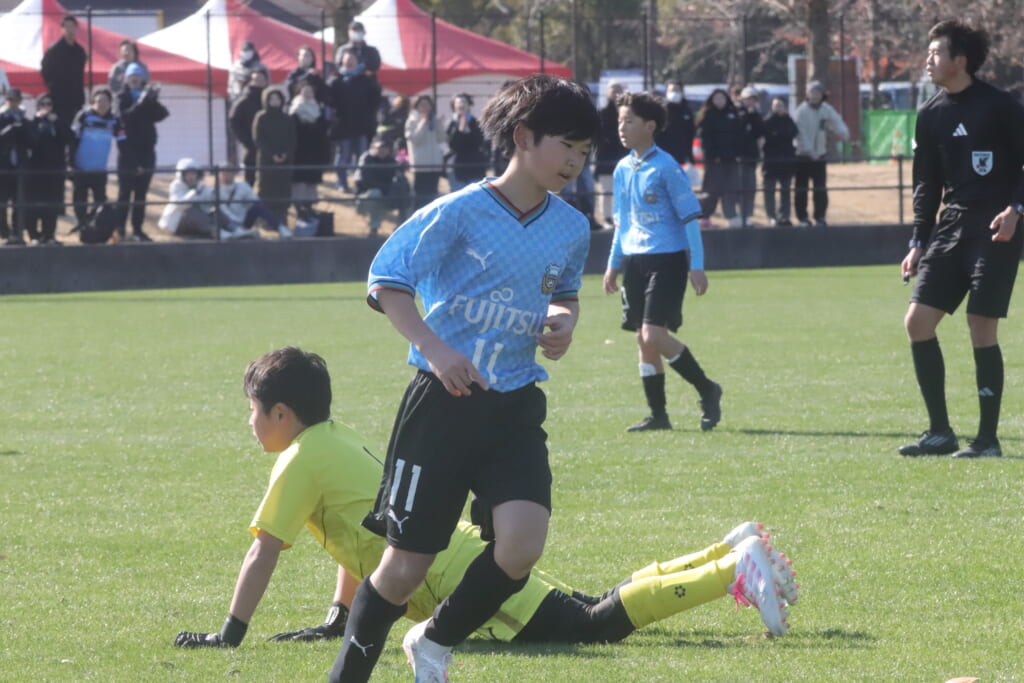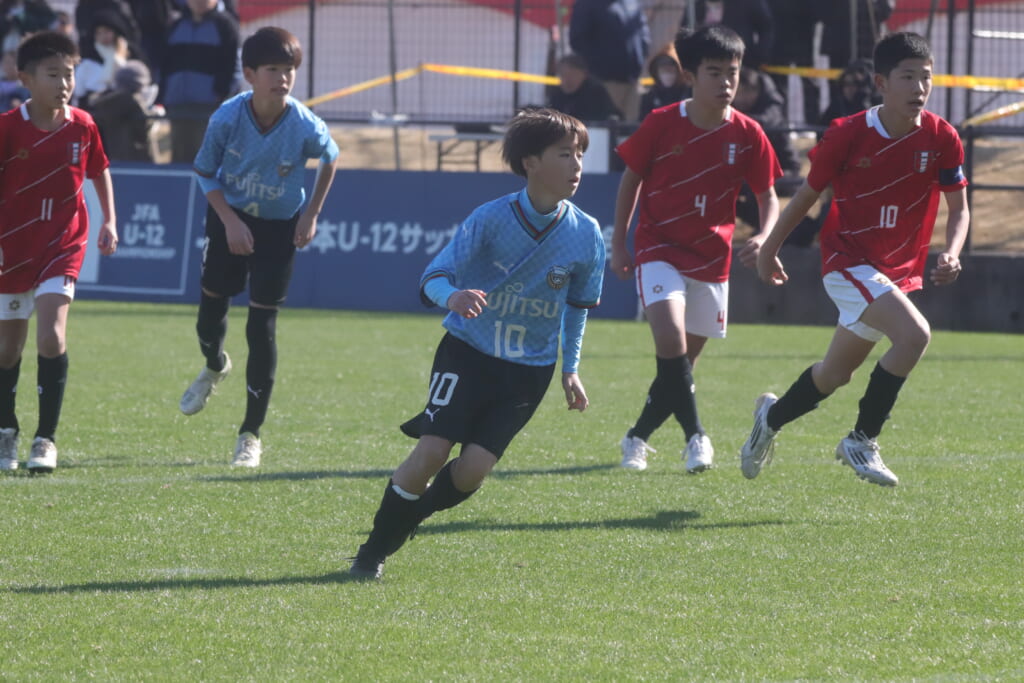 川崎フロンターレU-12は、初日の1次ラウンド第1戦は、サガン鳥栖U-12に1-4、第2戦はグランディールFCに6-3。