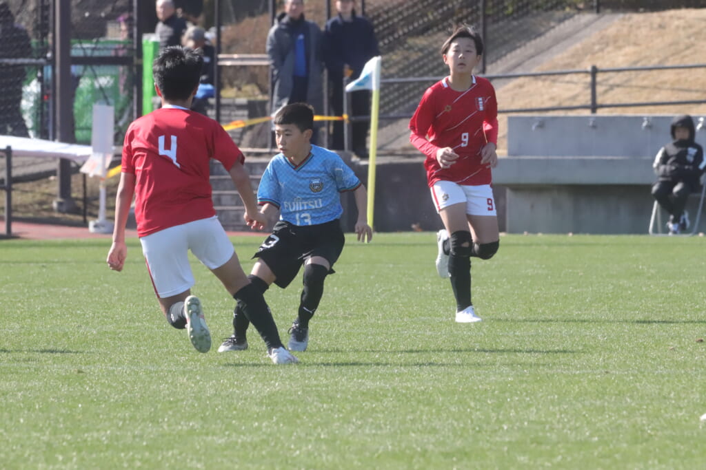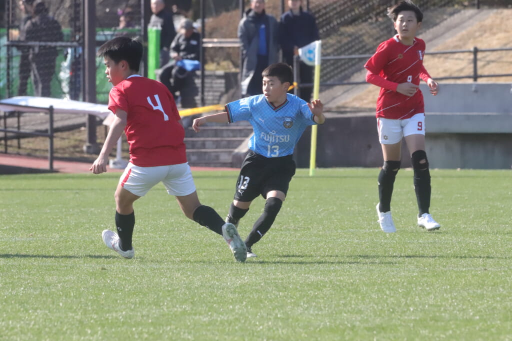 13分フロンターレは、岡西に代わり13戸部心暖。