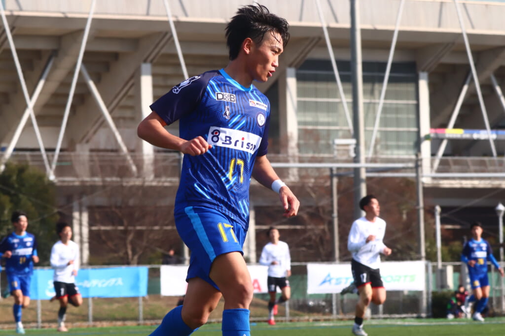 全日本大学サッカー選手権大会の予選ラウンドで敗れた10チームと、東北地区の第2代表富士大、中国地区の第2代表広島経済大が競う全日本大学サッカー選手権大会の強化ラウンドでは、桐蔭横浜大のDF信澤孝亮、FW岡崎寅太郎、中京大のDF元木湊大が試合に出場しました。
