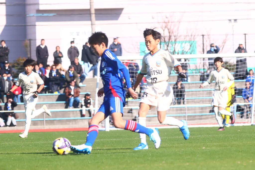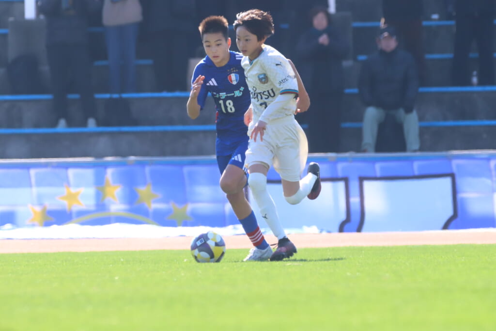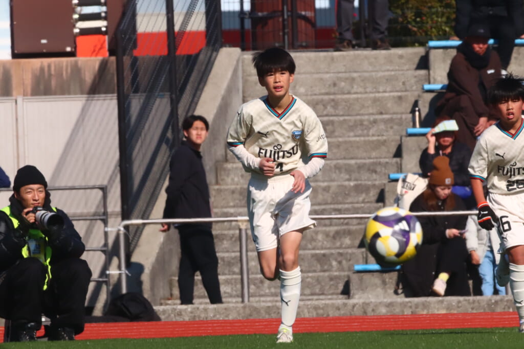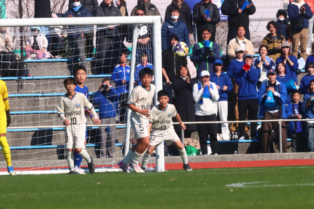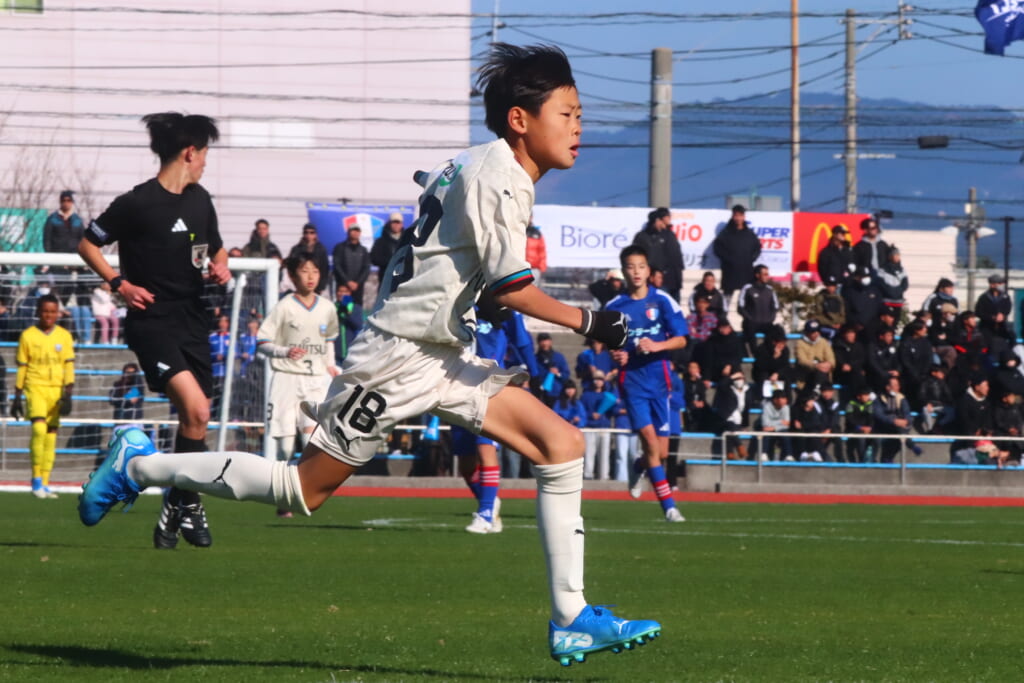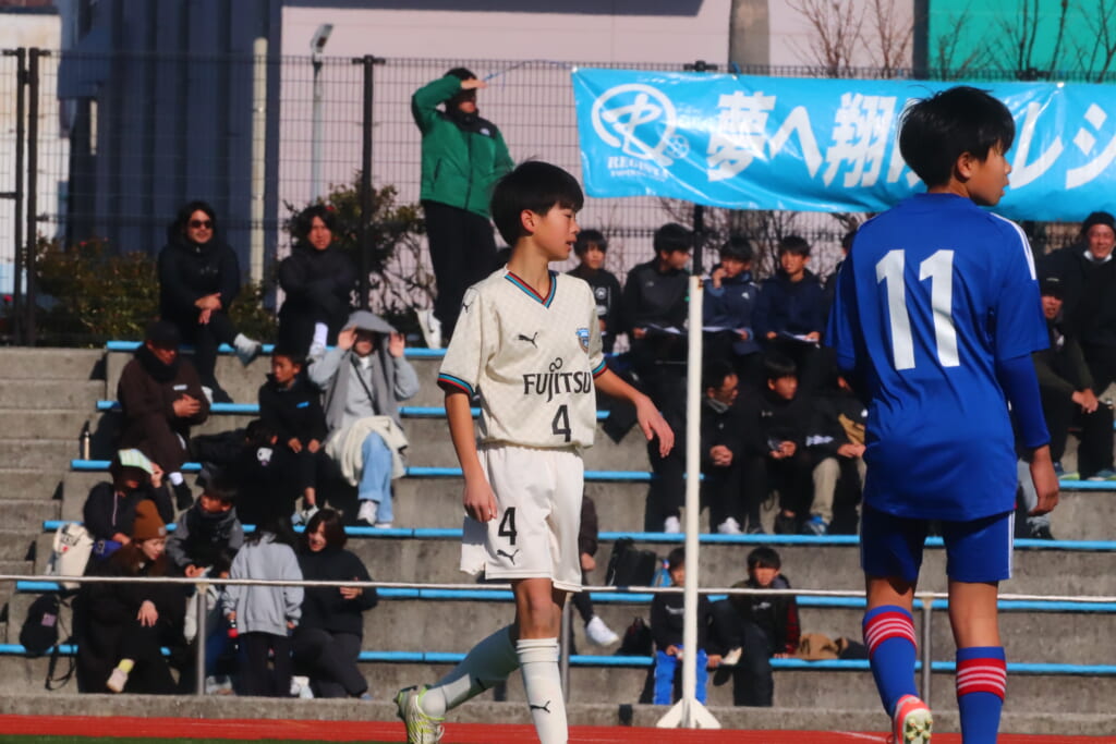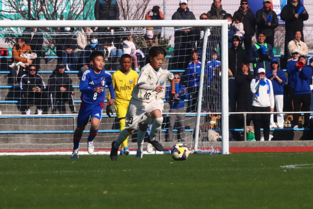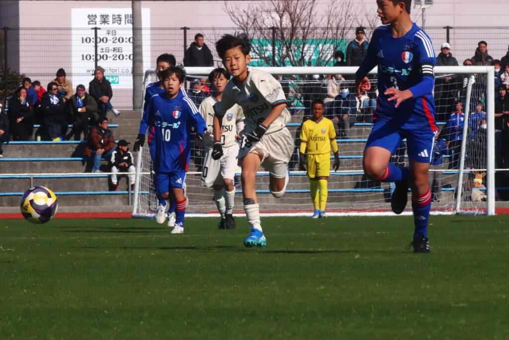 全日本U-12サッカー選手権大会は準々決勝を迎え、川崎フロンターレU-12は埼玉県代表のレジスタFCとの試合に臨みました。