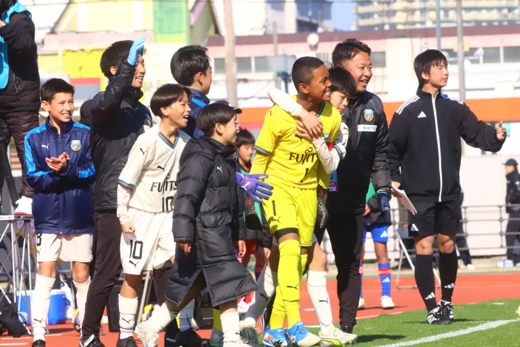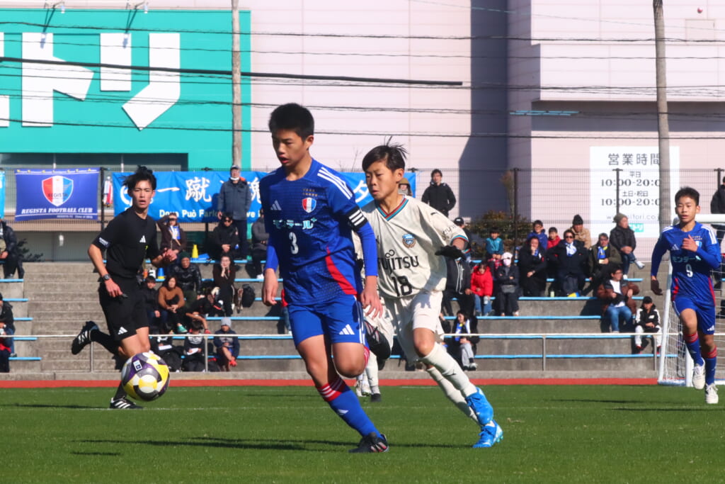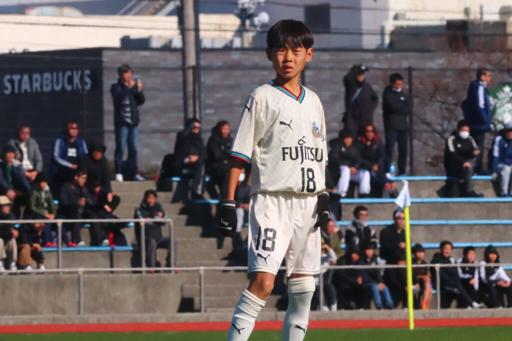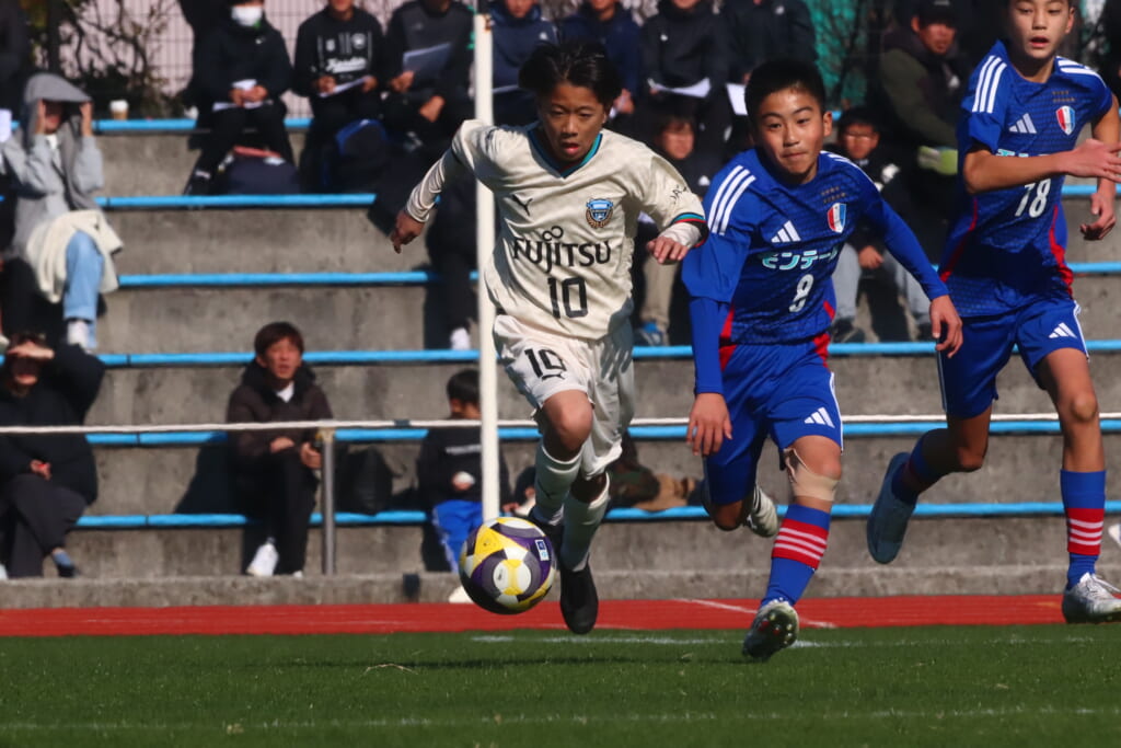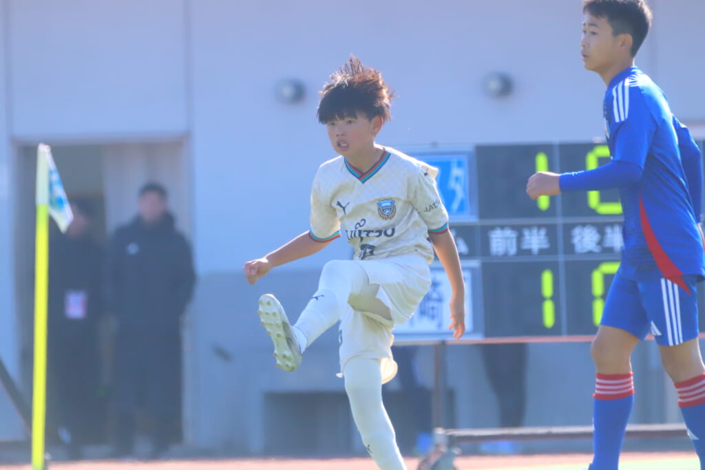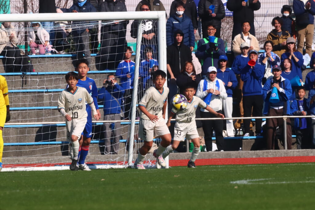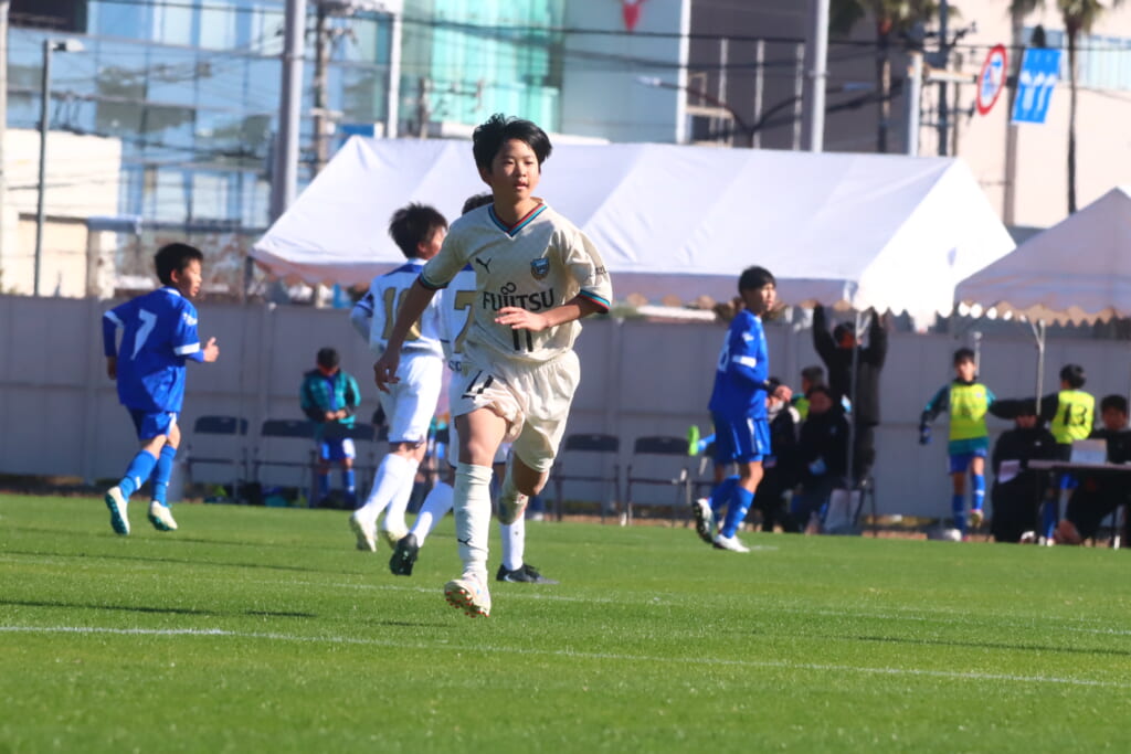 全日本U-12サッカー選手権大会は準々決勝を迎え、川崎フロンターレU-12は埼玉県代表のレジスタFCとの試合に臨みました。