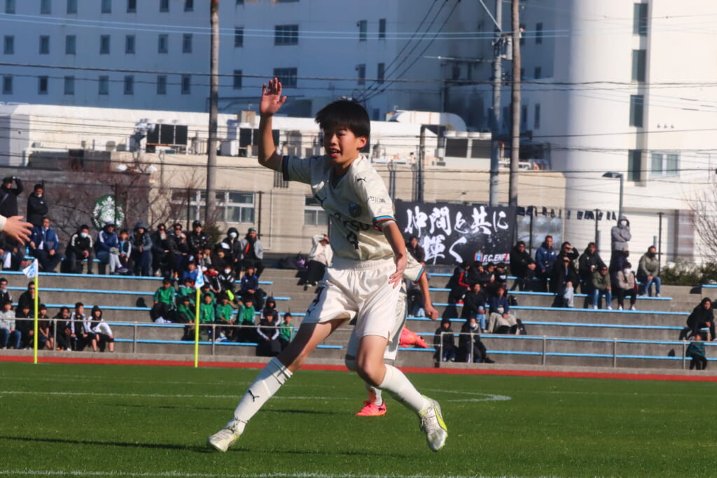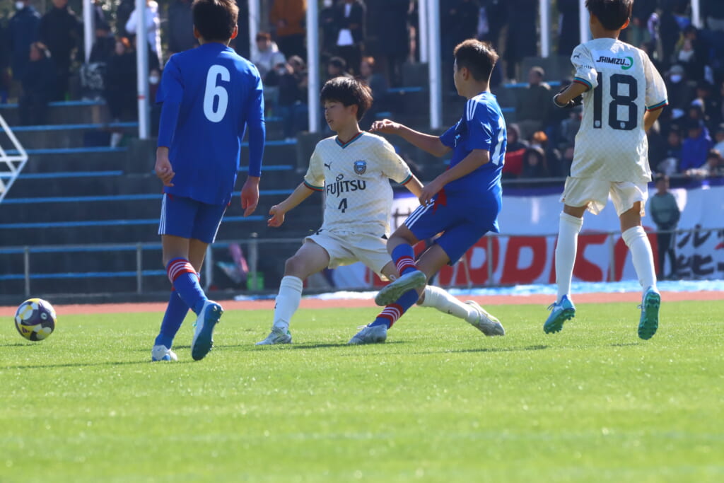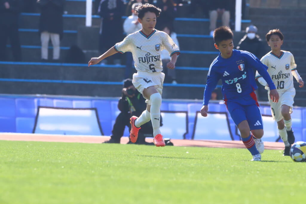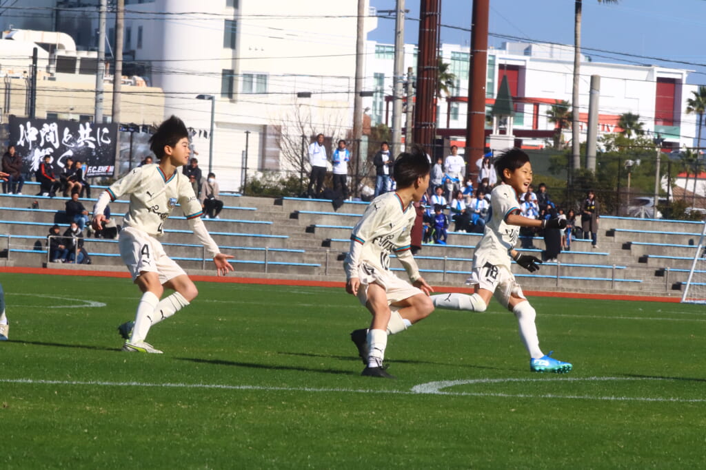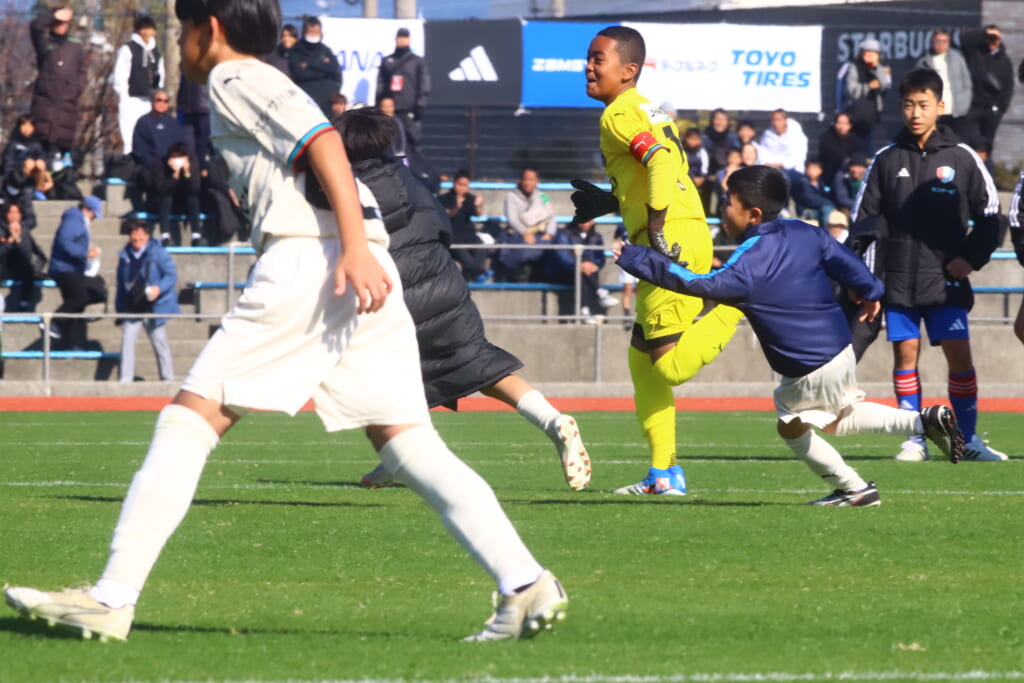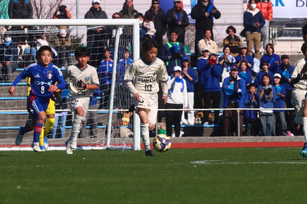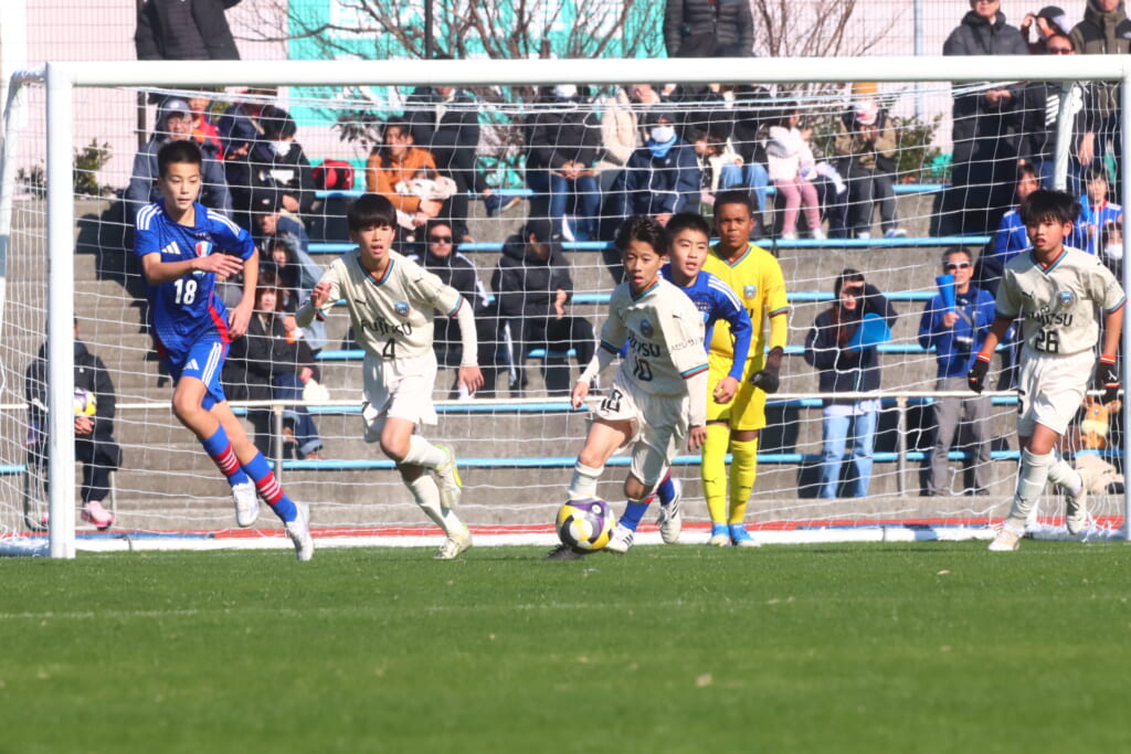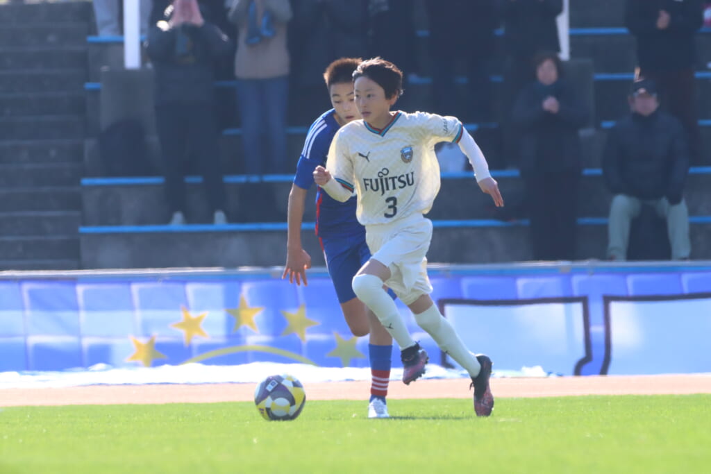 全日本U-12サッカー選手権大会は準々決勝を迎え、川崎フロンターレU-12は埼玉県代表のレジスタFCとの試合に臨みました。