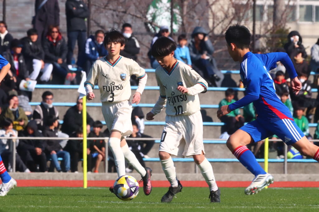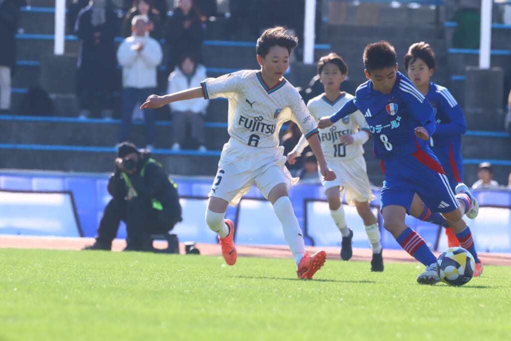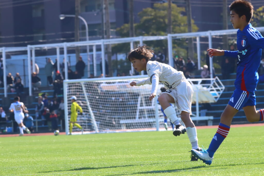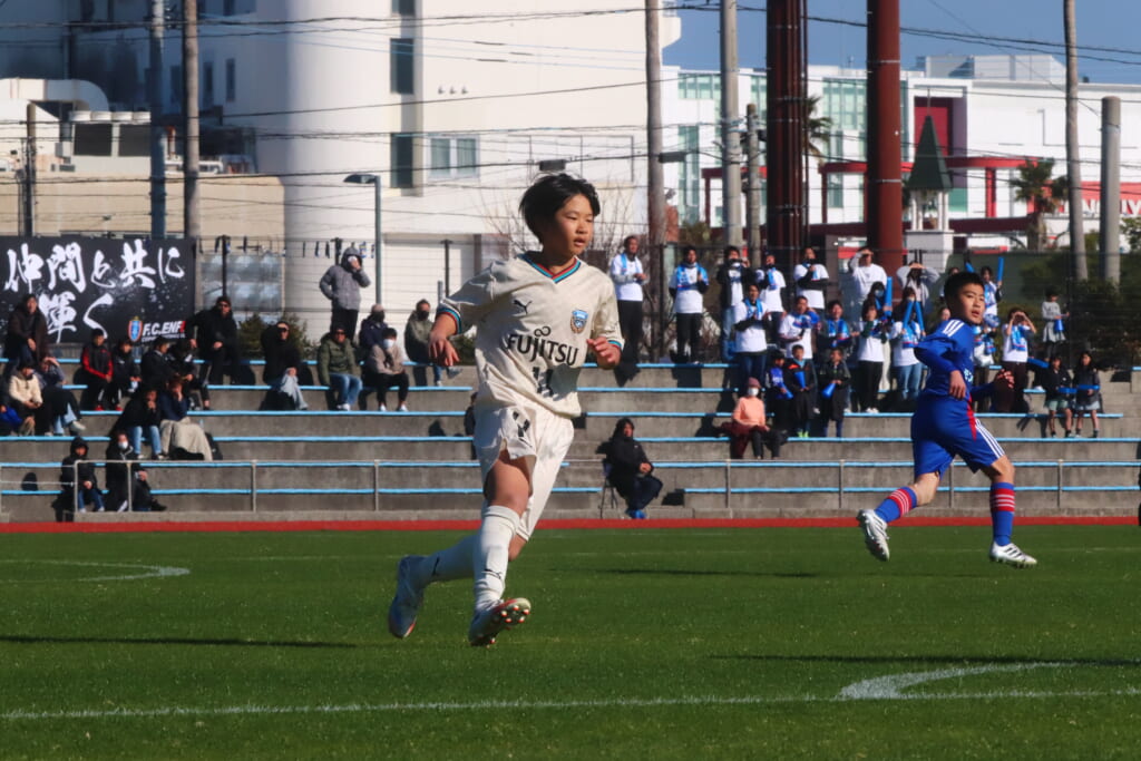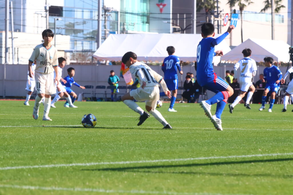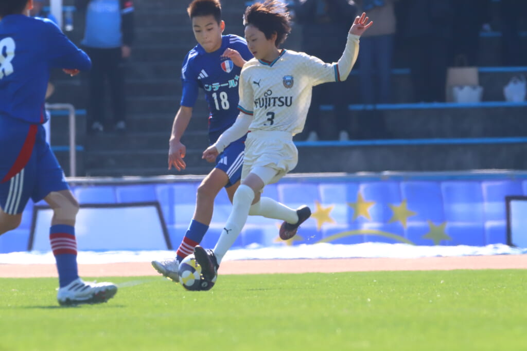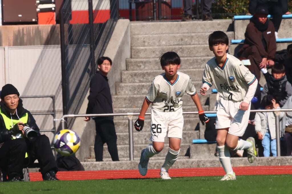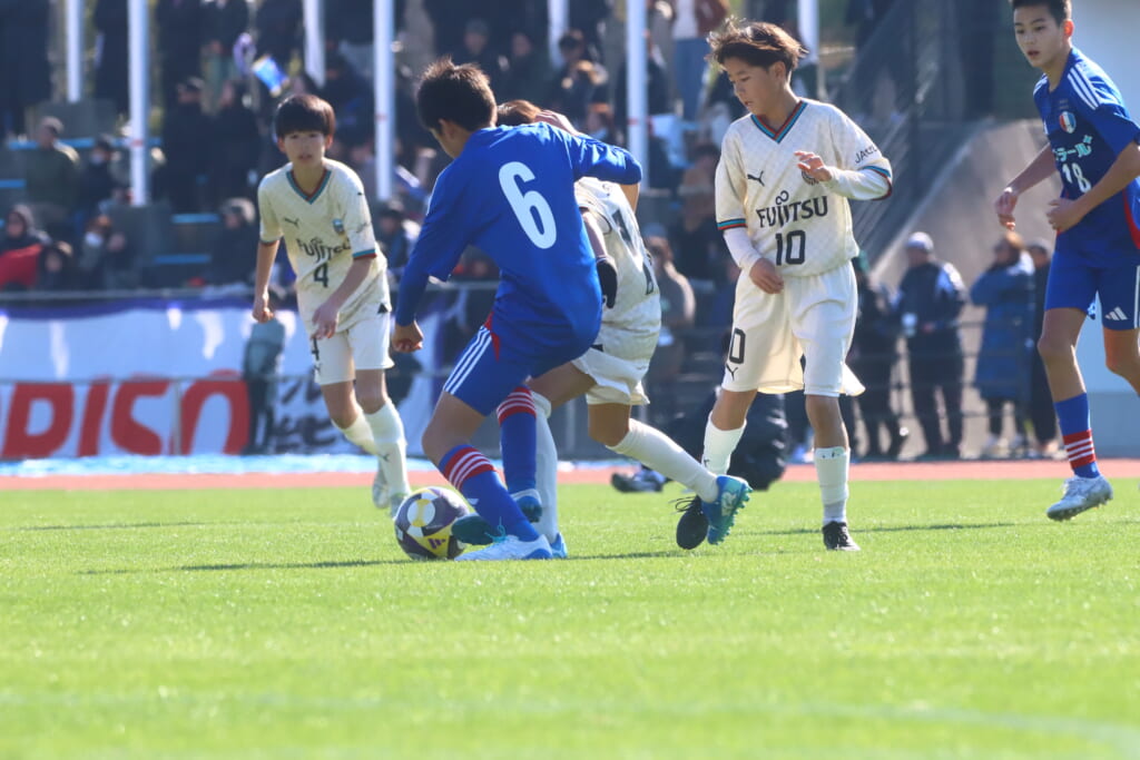 全日本U-12サッカー選手権大会は準々決勝を迎え、川崎フロンターレU-12は埼玉県代表のレジスタFCとの試合に臨みました。