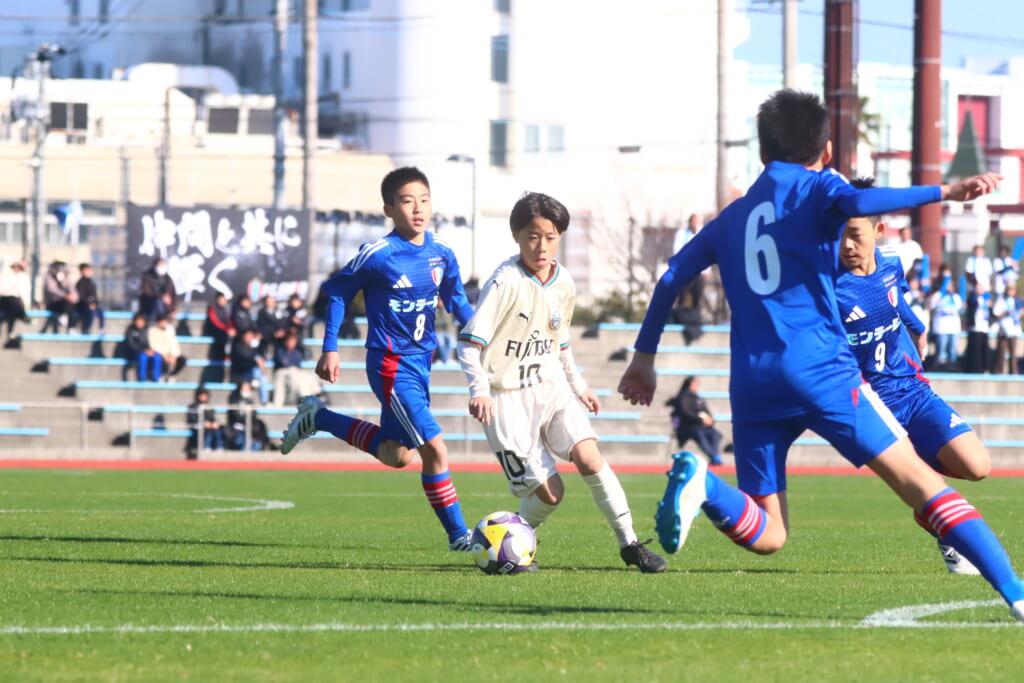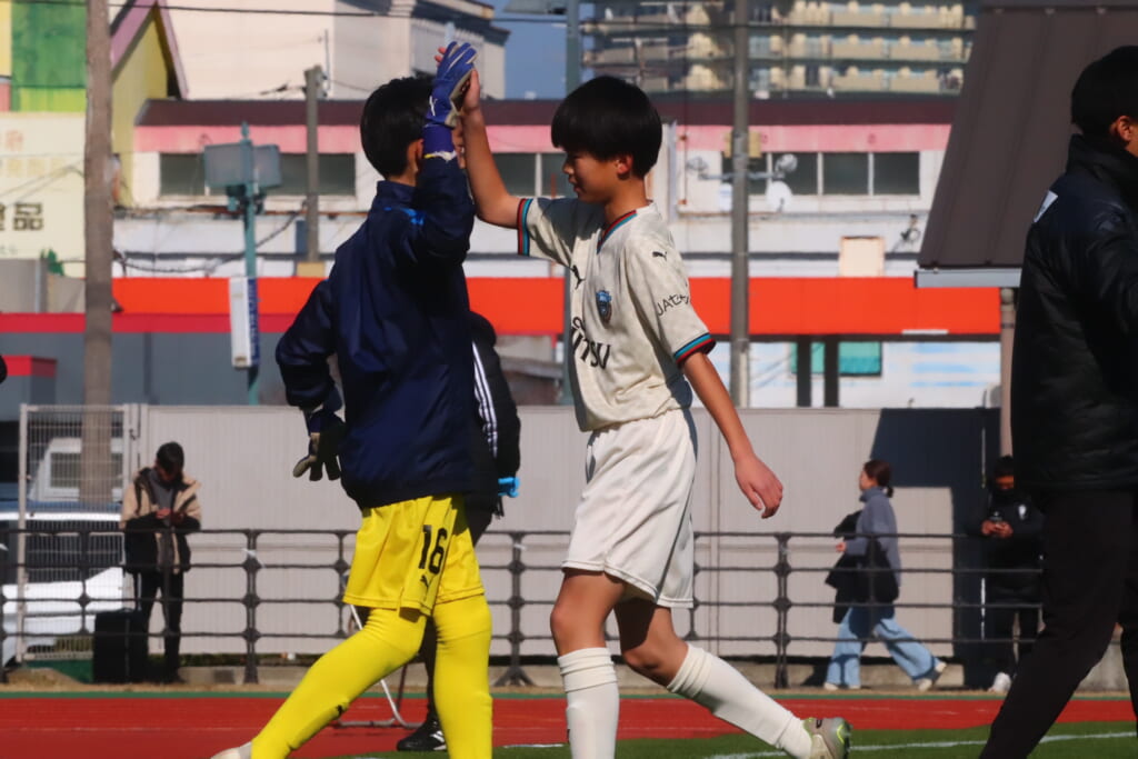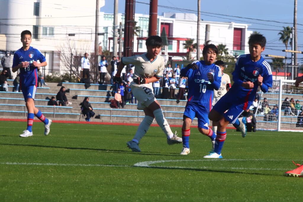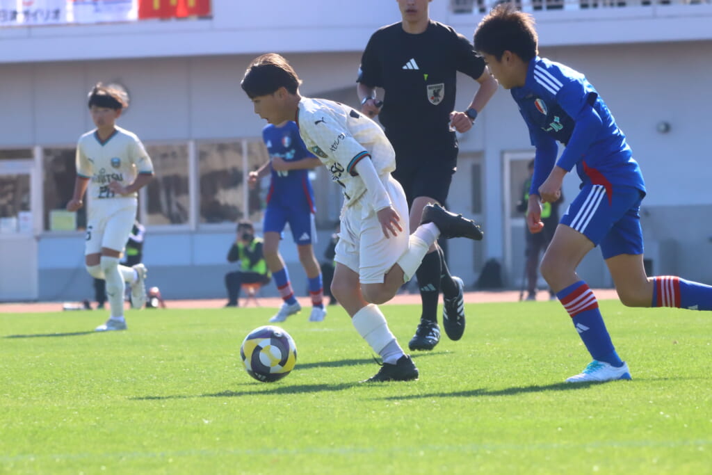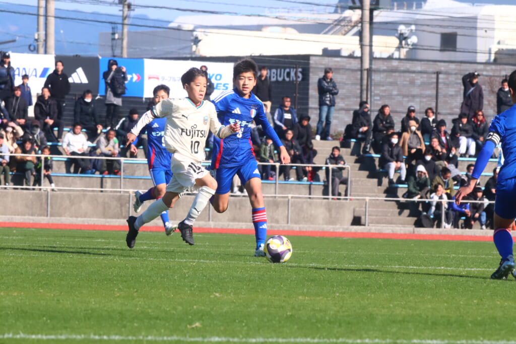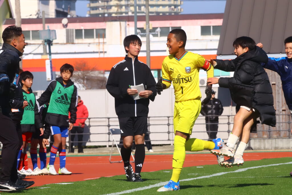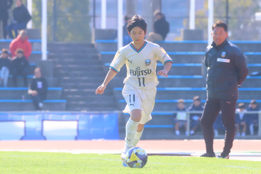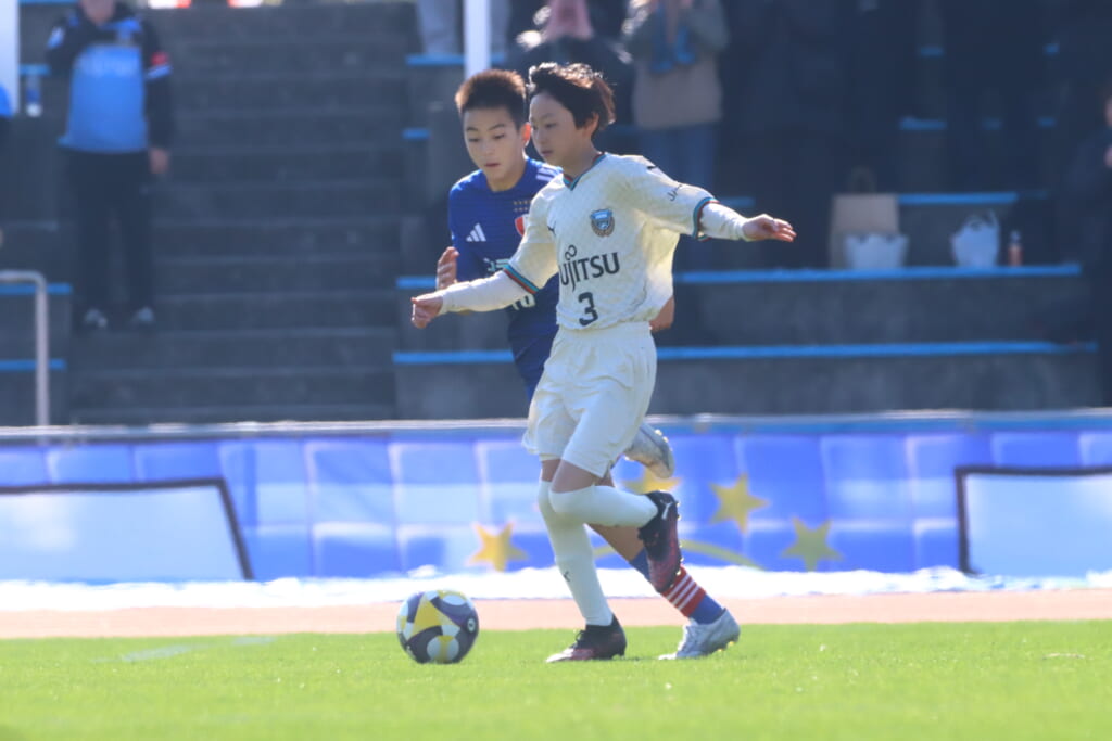 全日本U-12サッカー選手権大会は準々決勝を迎え、川崎フロンターレU-12は埼玉県代表のレジスタFCとの試合に臨みました。