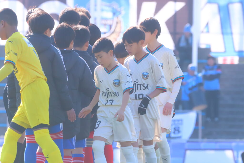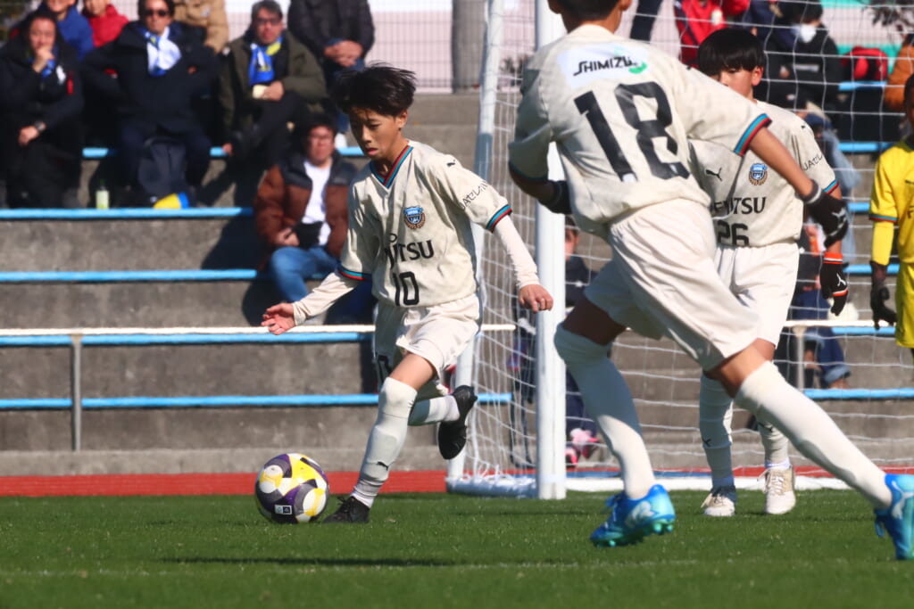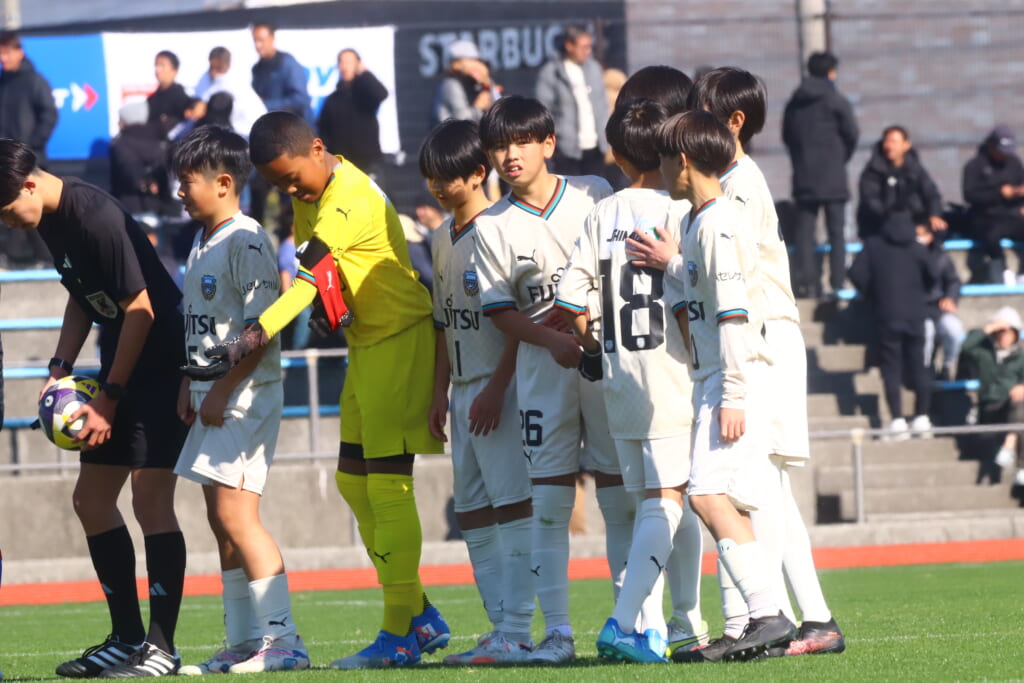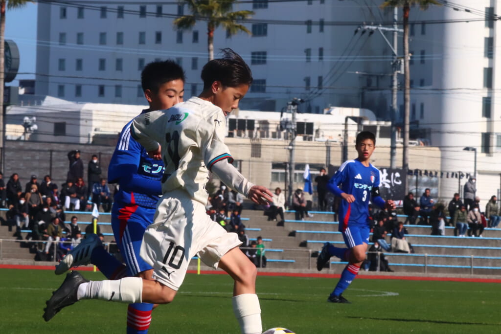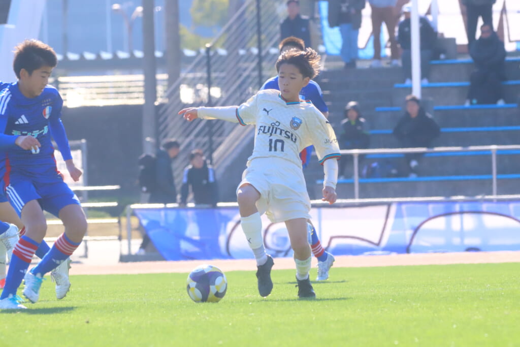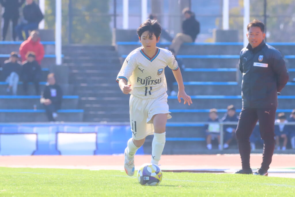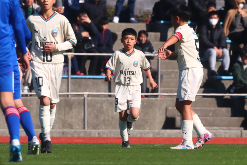 全日本U-12サッカー選手権大会は準々決勝を迎え、川崎フロンターレU-12は埼玉県代表のレジスタFCとの試合に臨みました。