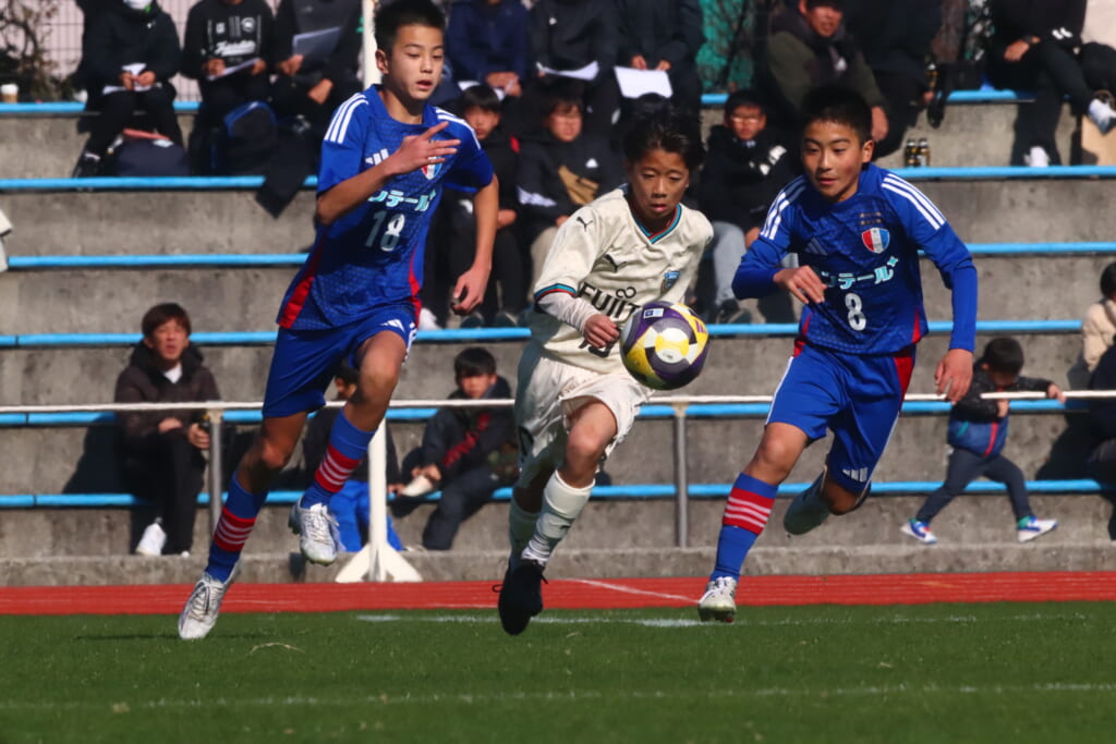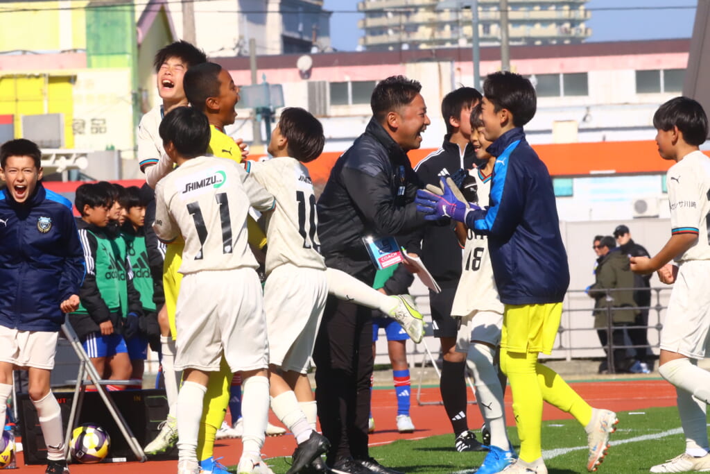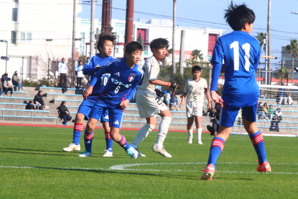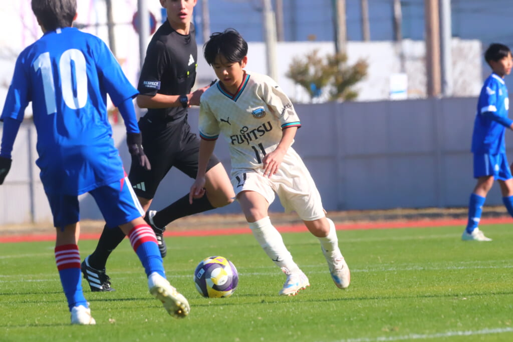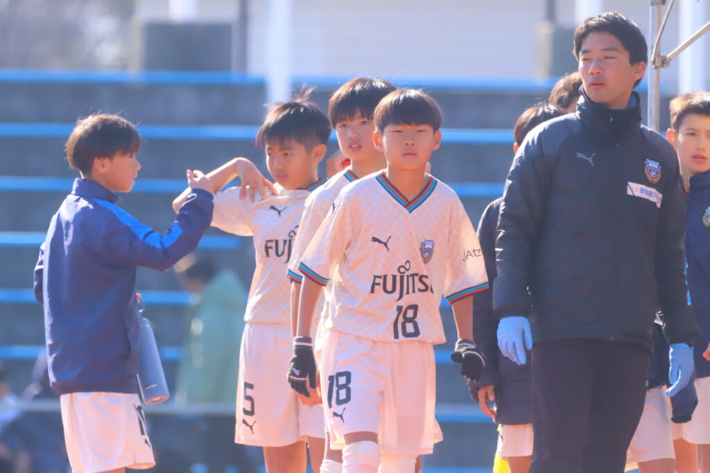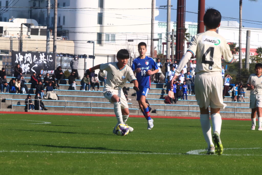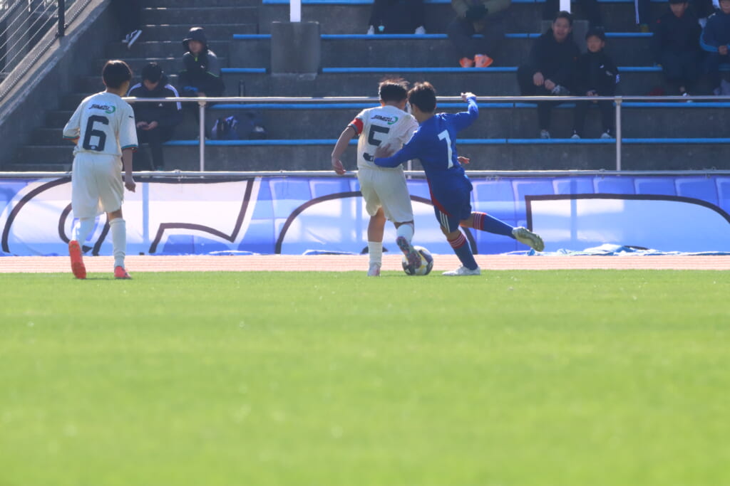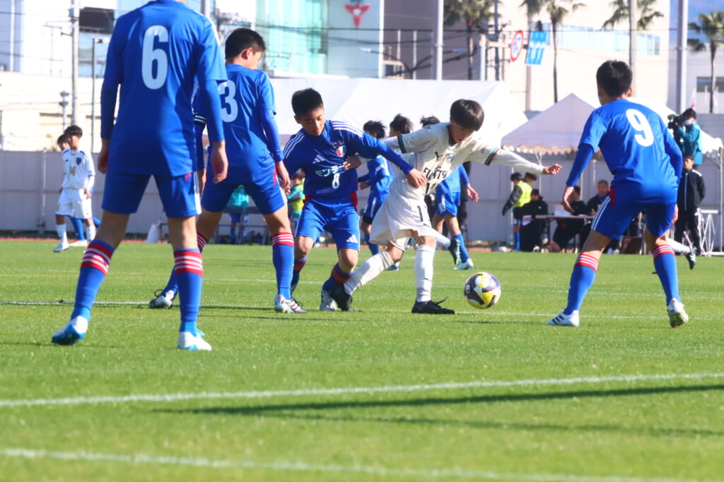全日本U-12サッカー選手権大会は準々決勝を迎え、川崎フロンターレU-12は埼玉県代表のレジスタFCとの試合に臨みました。
