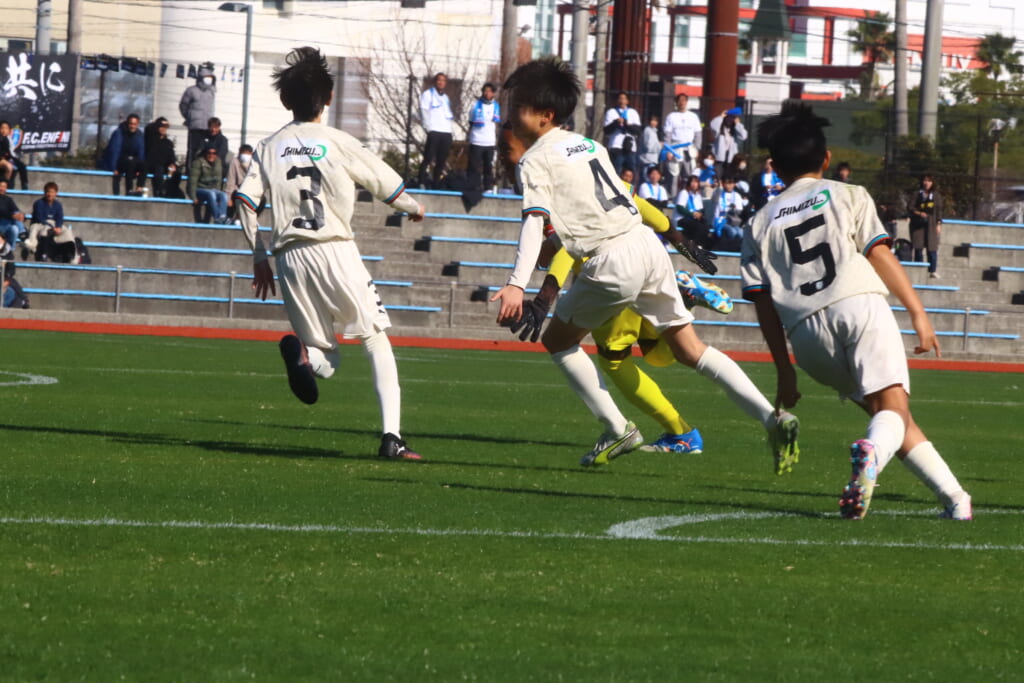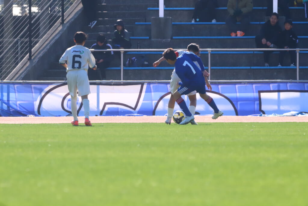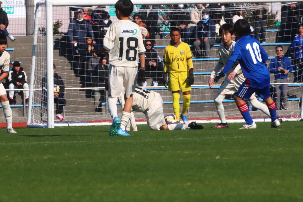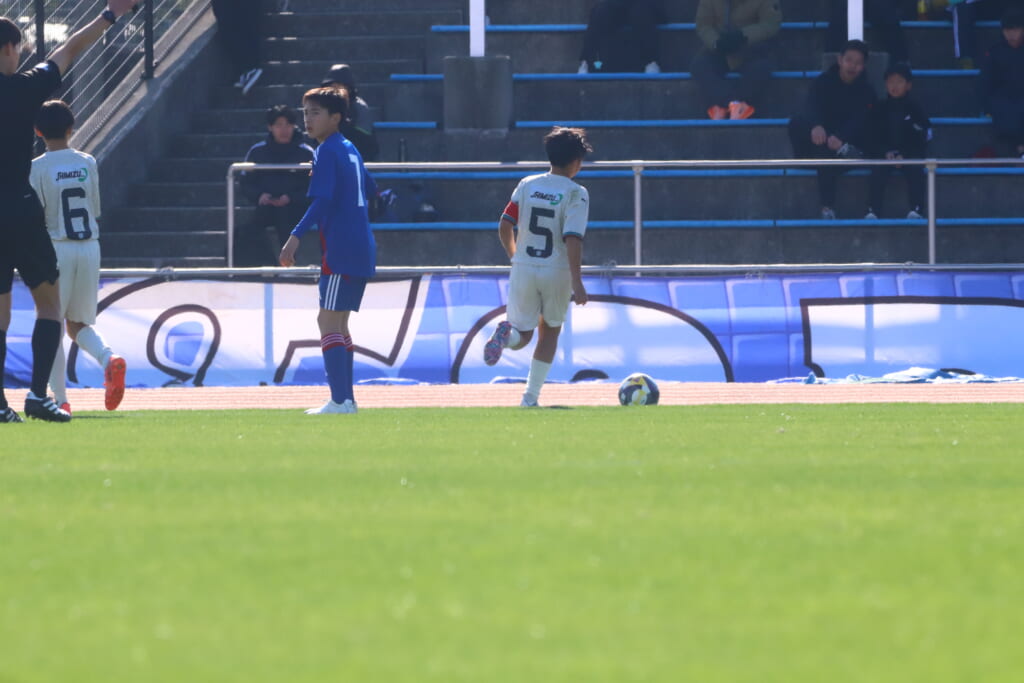 5分には、鈴木が左サイドからエリア左へ持ち込もうとしていきますが、成瀬が粘り強く対応。山本も寄せていきゴールキックにしていきます。