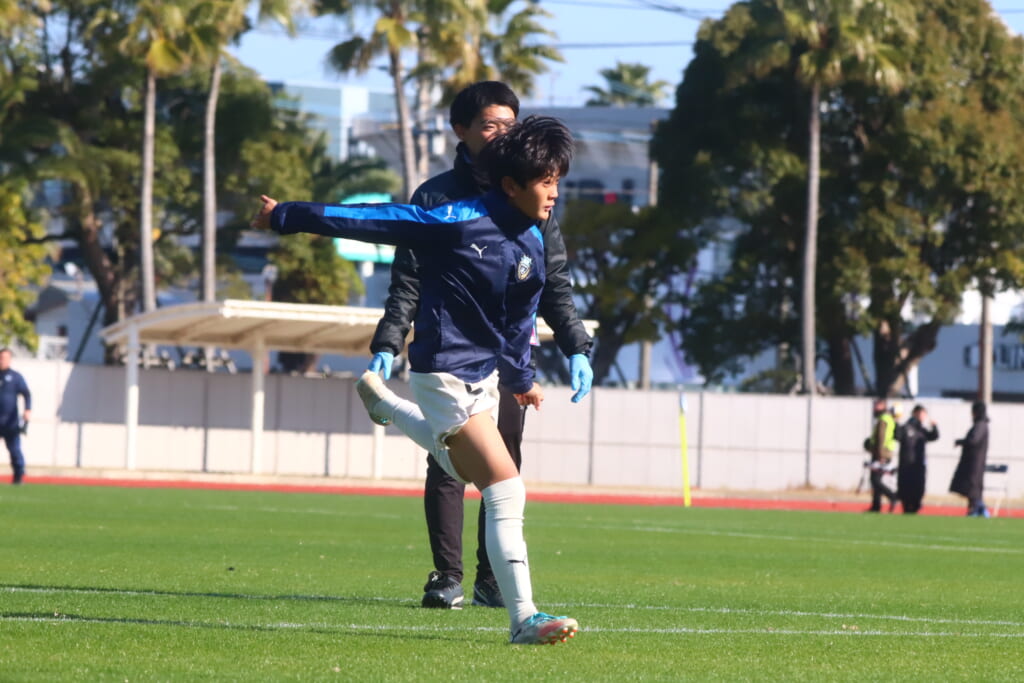 先発は、GK1チケ立野オケチュク、最終ラインは右から26成瀬文哉、3山村兜馬、キャプテンの5下地勇人、中央に13戸部心暖、10新堀葵、前線には11桑原大河、18崔雲沧。