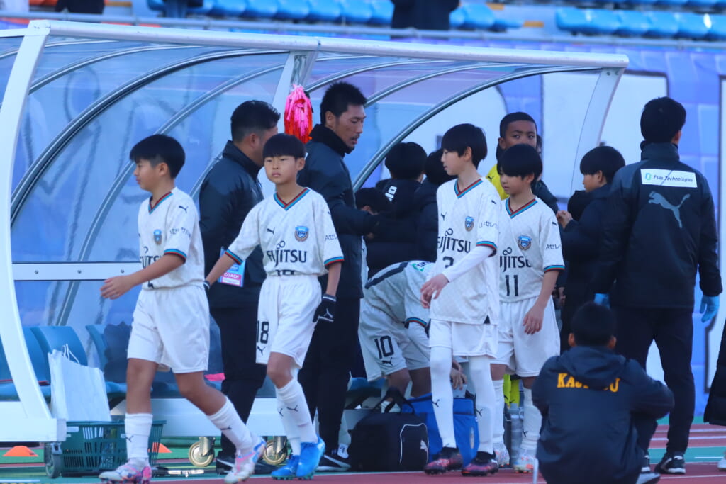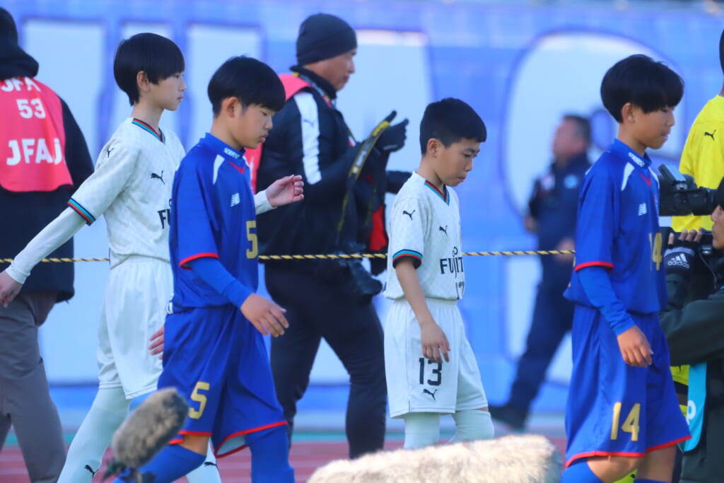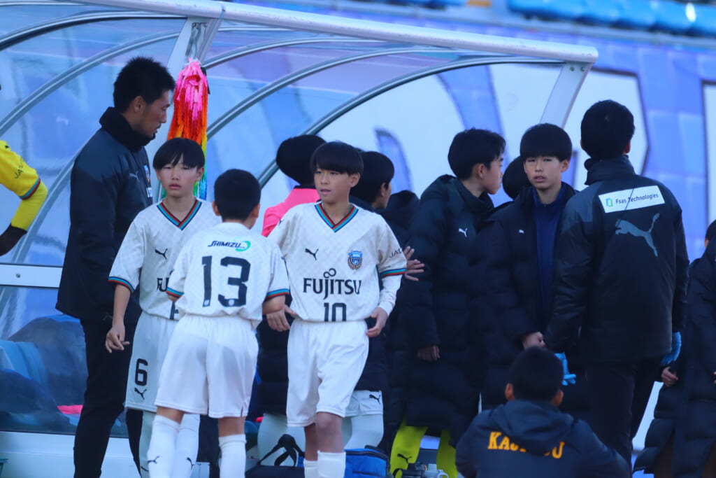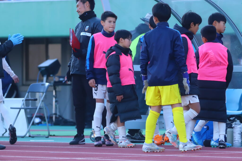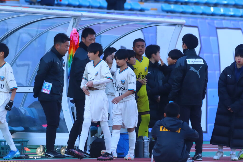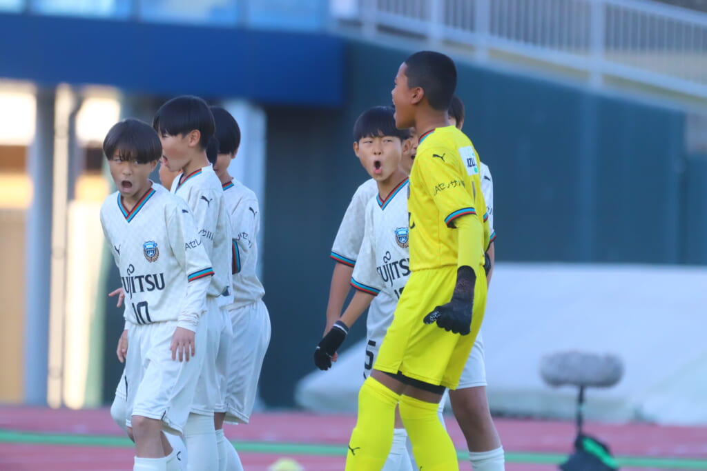 12月28日、鴨池補助競技場で行われた全日本U-12サッカー選手権大会準々決勝、レジスタFC戦を1-1、PK3-2で制した川崎フロンターレU-12。