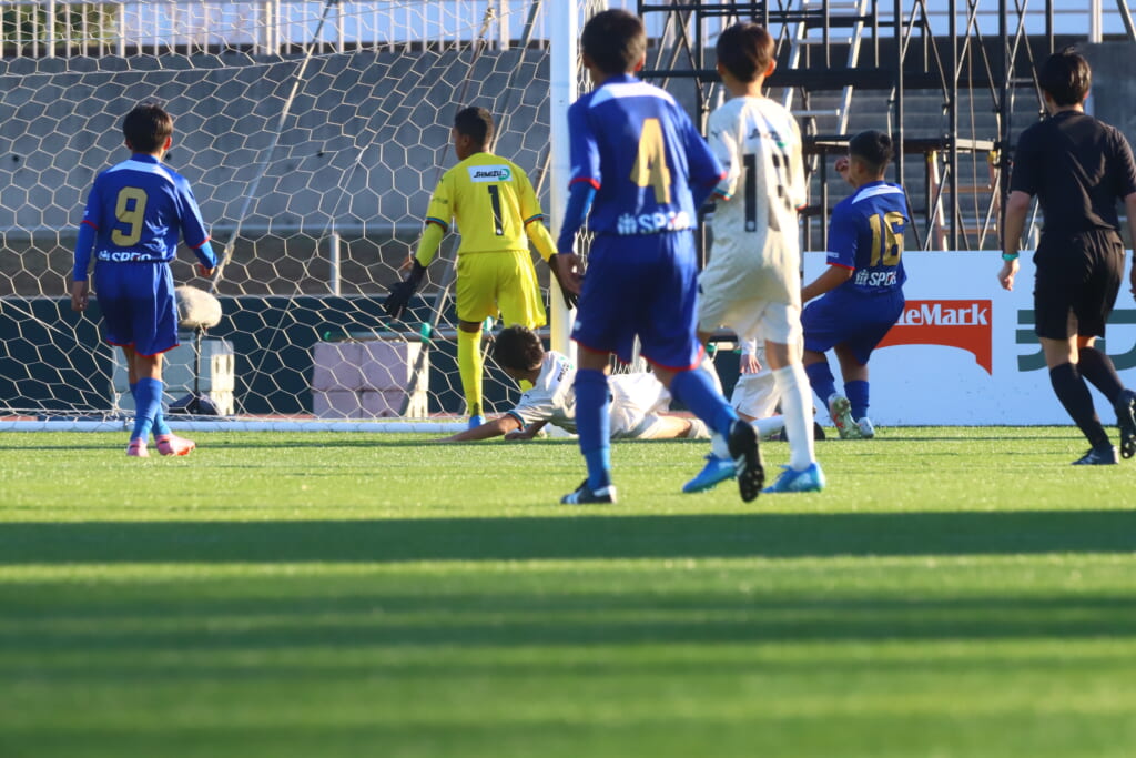 窪田が入れるとこぼれ球を拾い、坂梨が左サイドから折り返し。エリア正面右、山口がシュートを打つとこれが決まり、0-3。