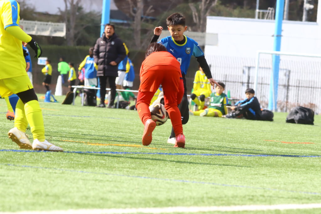 直後には、横河武蔵野、フロンターレがエリア前でボールを動かそうとしたところ、23がカット。正面でシュートを打ちますが、梅木がセーブ。