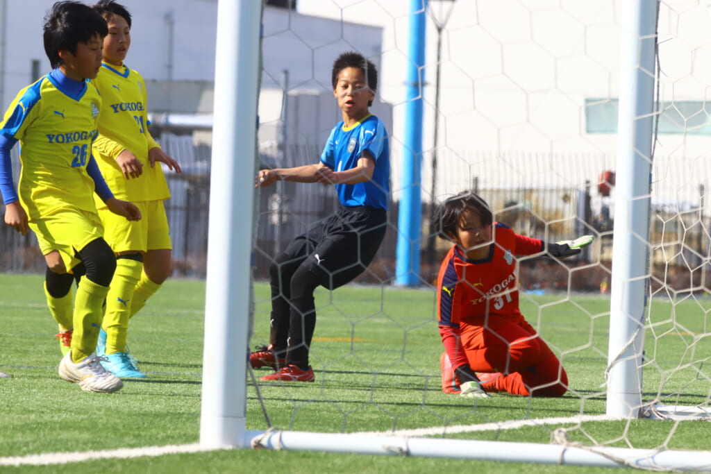 しかし、14分には、中央でカットした横河武蔵野、正面右へ抜け出した24がシュートを打つとこれが決まり、2-1。横河武蔵野もゴールを決めます。