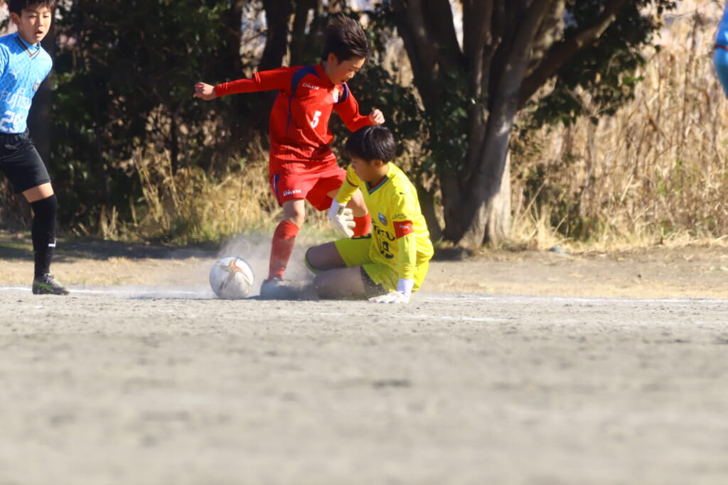それに対して、橘SCは12がやや下がり目でカット。前に持ち込もうとしていきますが、菊地が対応していきます。