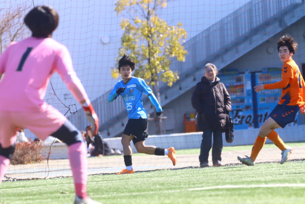 前に持ち出した小川尋斗のパスに抜け出した小田が正面右へ。シュートはサイドネットをたたきゴールとはなりませんでしたが、守備から攻撃へつなげていきます。