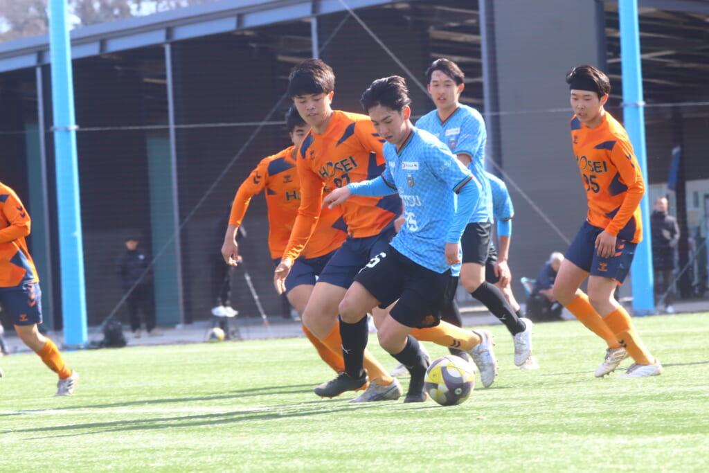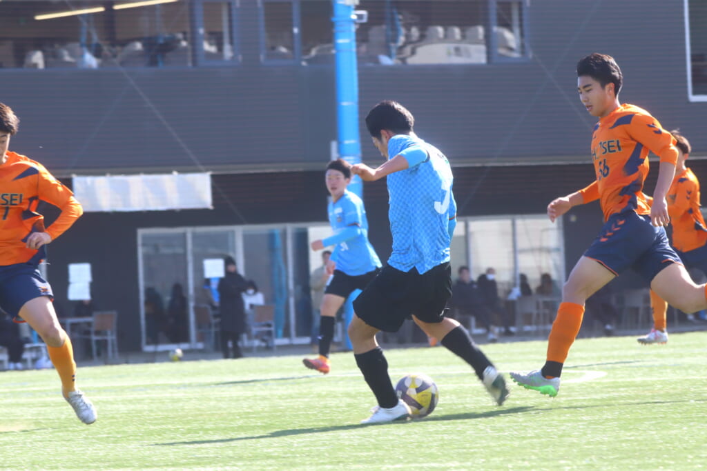 さらに、小川尋斗のパスに廣瀬がエリア正面へ。うまくボールをおさめ、シュート。法政二高の体を張った守りに遭い、ゴールとはなりませんでしたが、チャンスをつくっていきます。