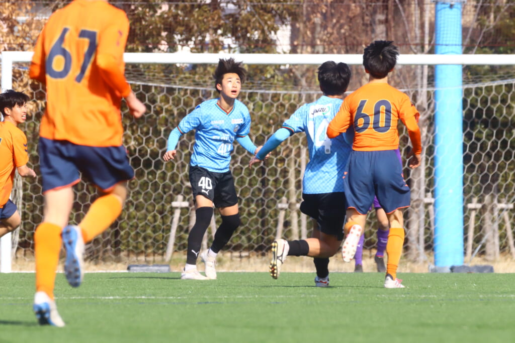 小川翔太が仕掛け、折り返すと廣瀬がエリア内へ。法政二高の対応に遭い、シュートを打つことはできませんでしたが、中央と両サイドを使い、フロンターレがゴールへ迫る場面をつくっていきます。