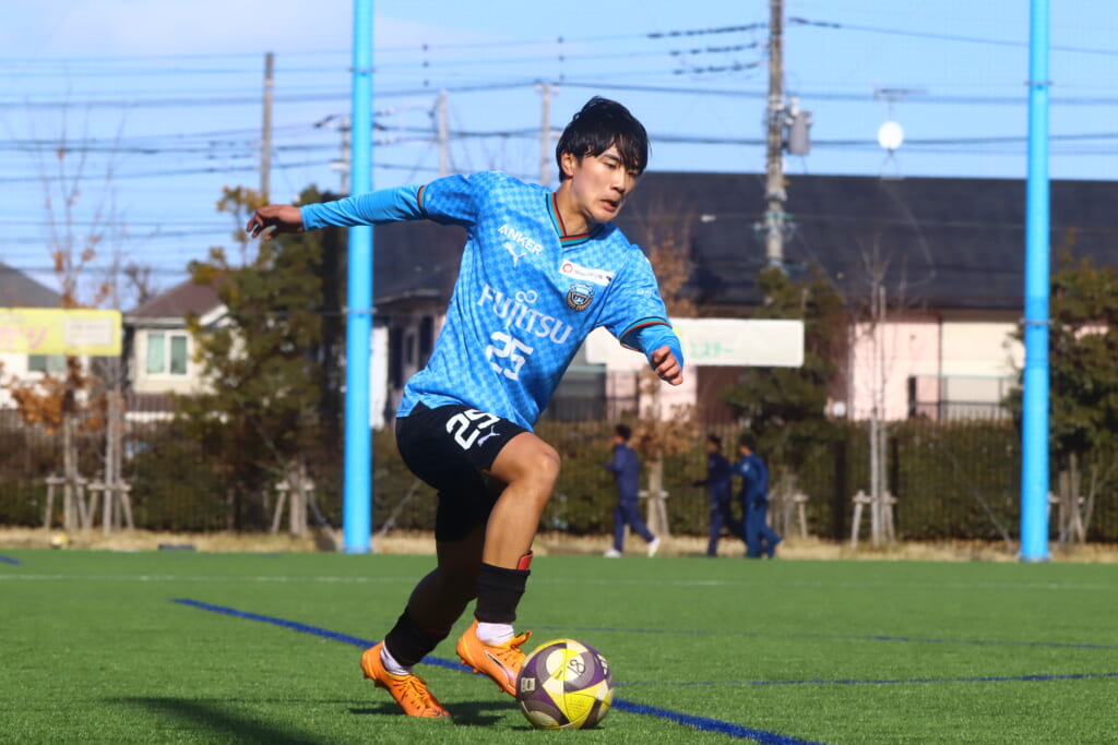 法政二高は、フロンターレU-15生田出身の新2年、MF平尾玲旺が75番をつけて出場しました。