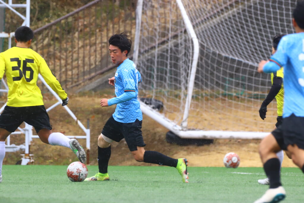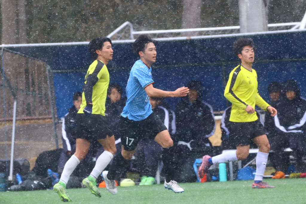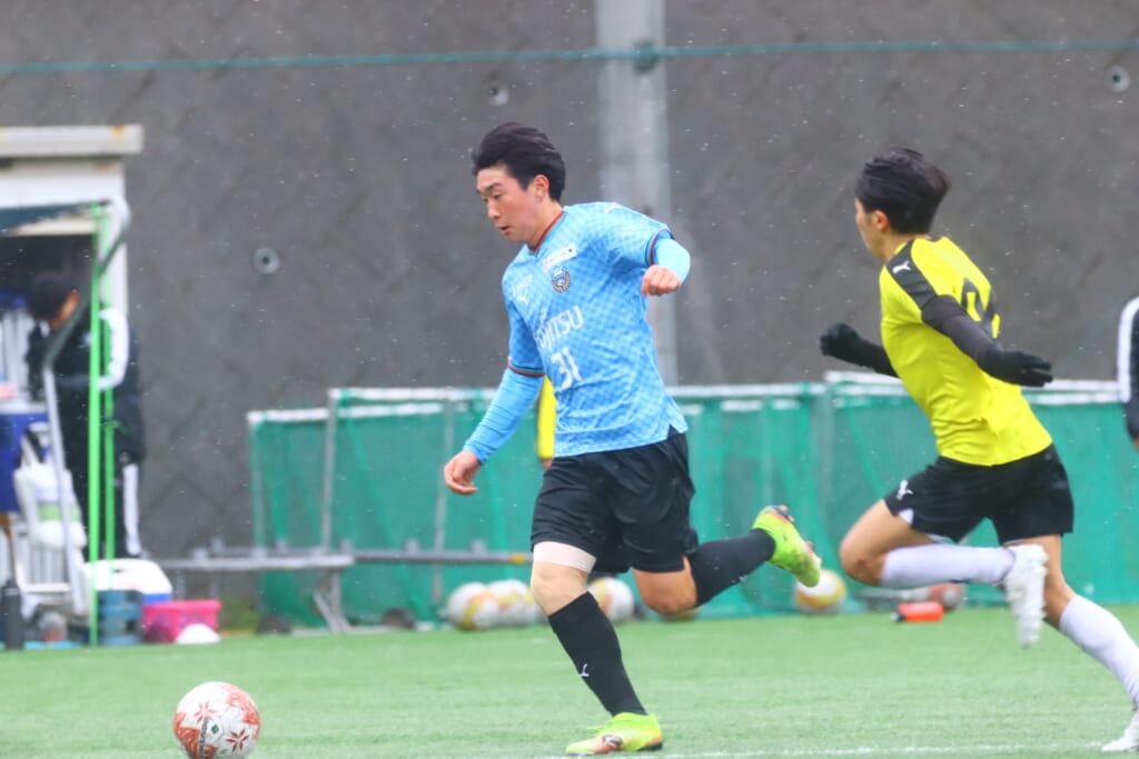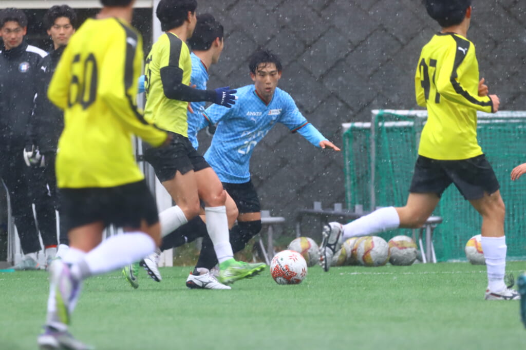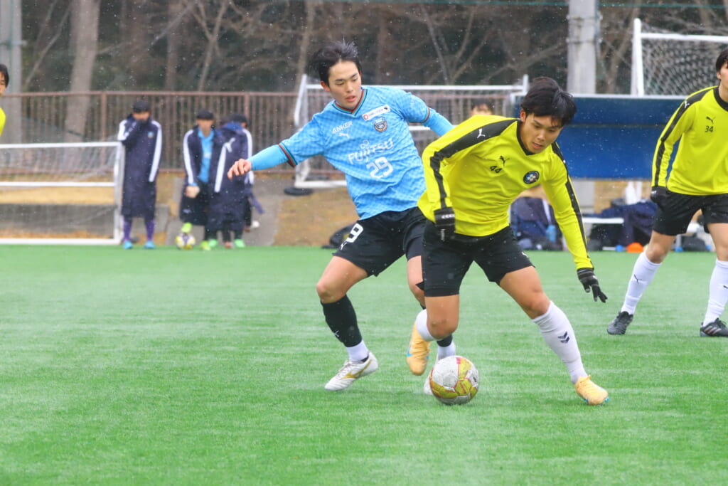 5分には、小川尋斗とのパス交換から木下が正面へ。産業能率大が体を張り阻んだところ、こぼれ球を拾い、間にパスを差し入れながら、つないでいき川村が正面へ。