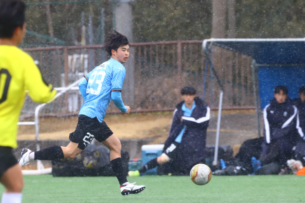 23分には、笹倉のパスに三上が左サイド、高い位置へ。クロスを上げ、セカンドボールを拾い、川村がエリア外正面へ。