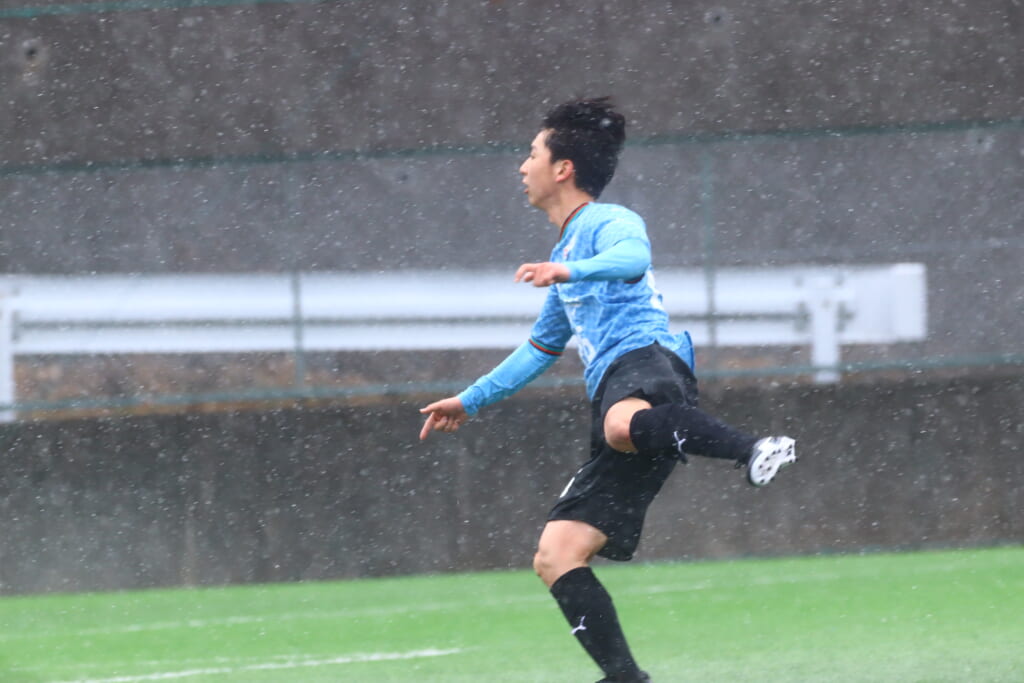 8分には、菊池が中央へ持ち出し右サイドへ展開。小川翔太がクロスを入れると、川村がうまくおさめ、エリア右へ。ここは産業能率大のカバーに遭い、シュートは打てず。