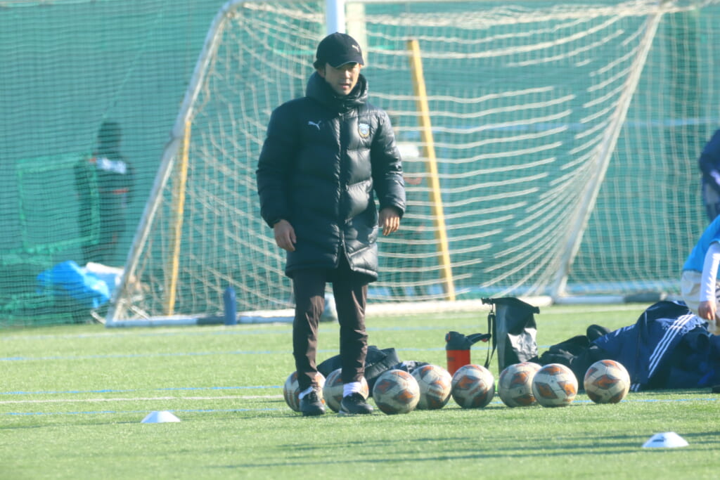 さらにフロンターレは、菊地が中央へ顔を出し、そのパスに片岡が左サイド、高い位置へ顔を出すなど、前へ。10分には菊地のパスを受けたケーサーが正面へ仕掛けていきますが、はるひ野はカット。