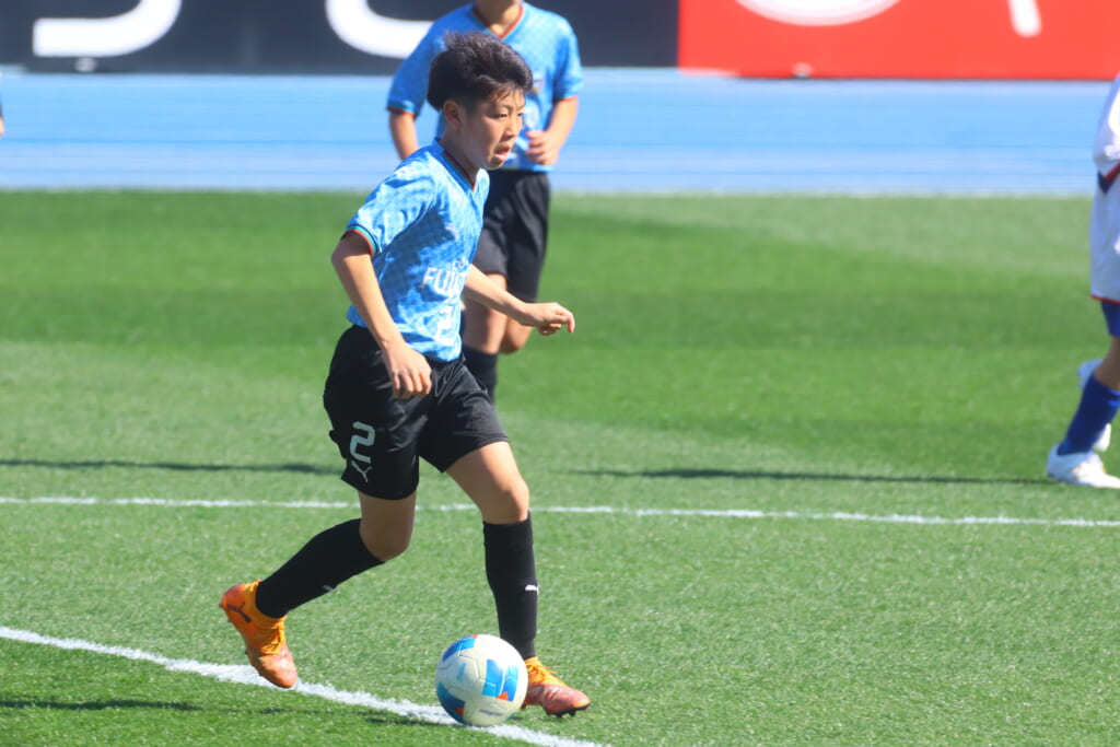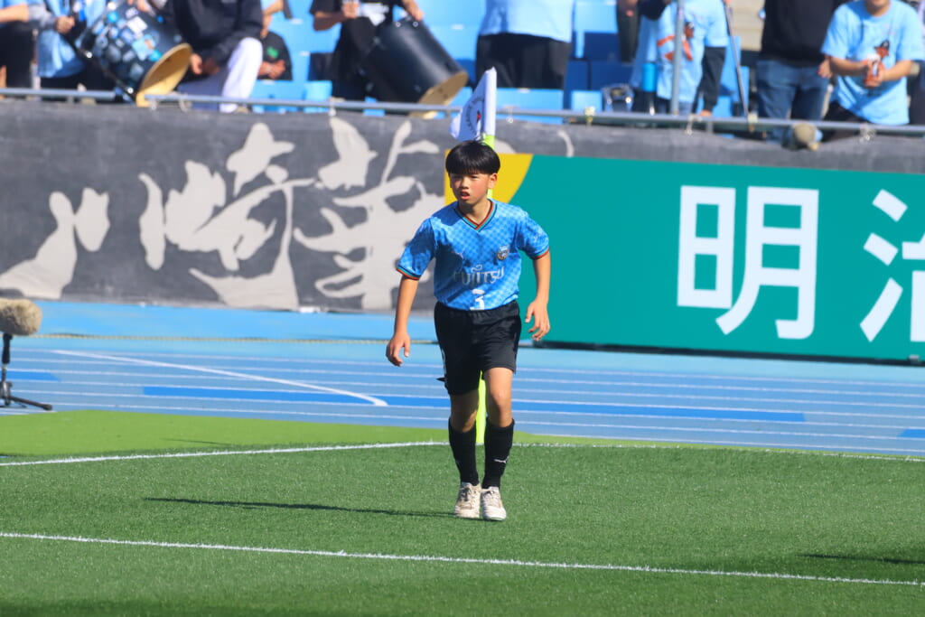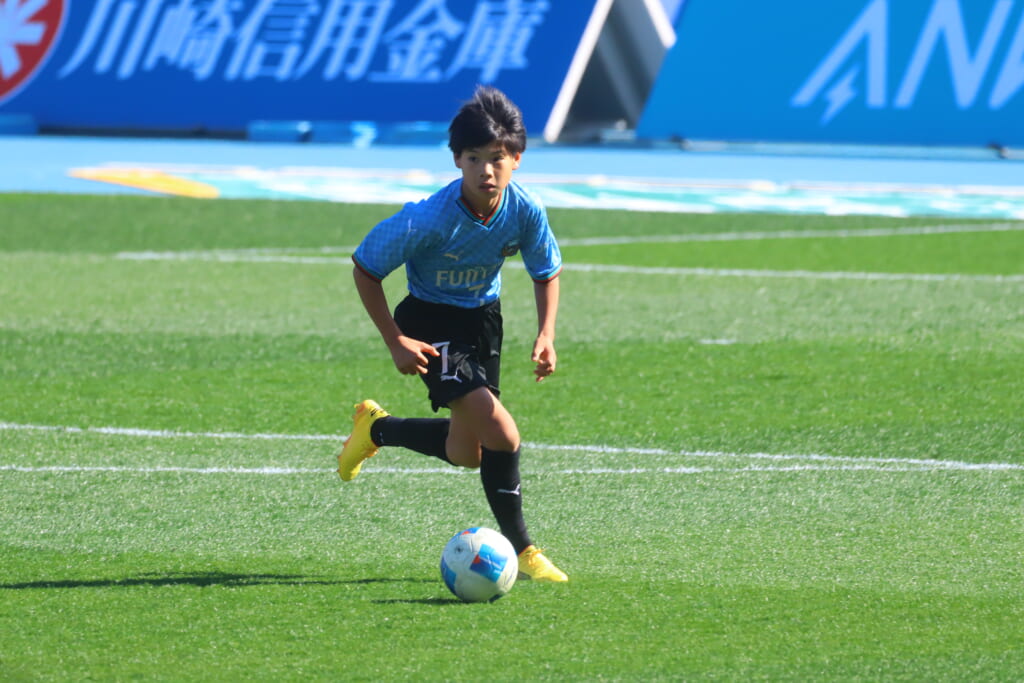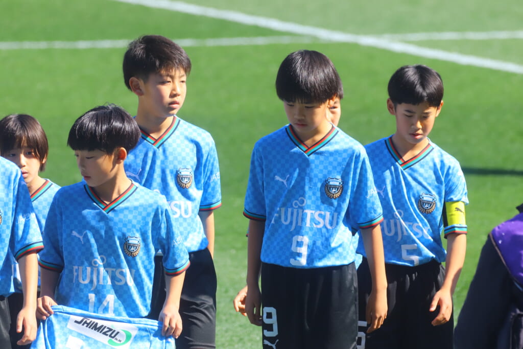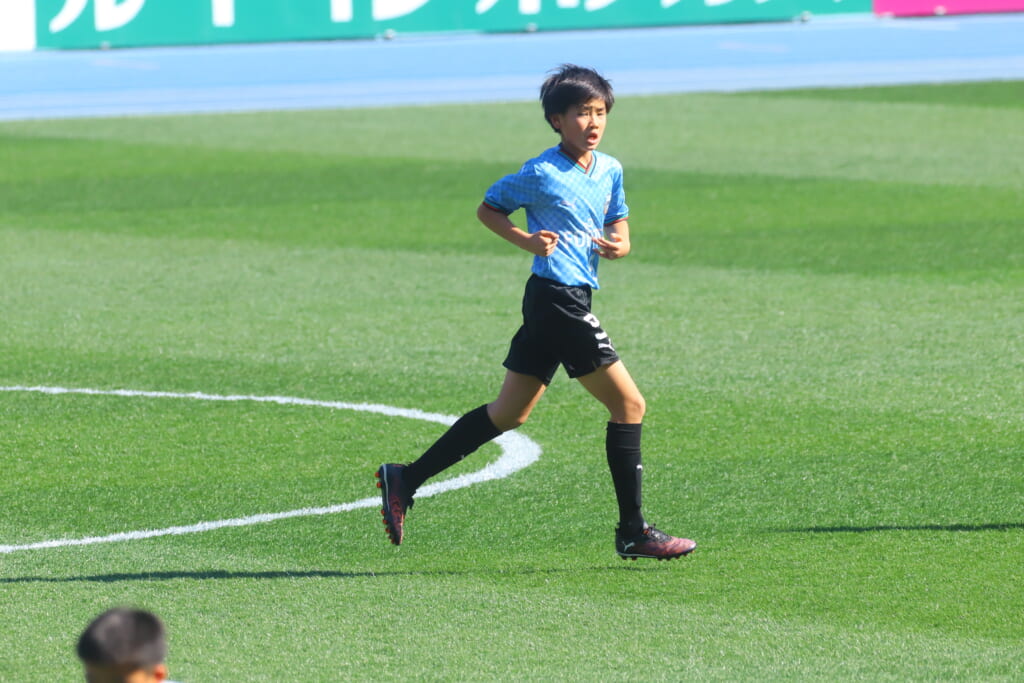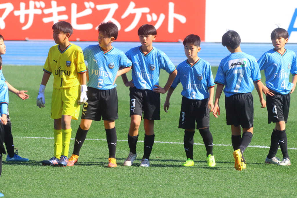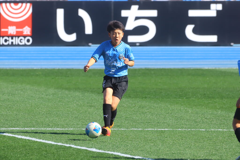 フロンターレの先発は、GK16梅木理生、最終ラインは右からキャプテンの5藤木乃以、新5年の2山口堂真、3成瀬文哉、7田中真祐斗、ボランチは14宮本櫂、8髙桑湊人、右MF4芳賀廣人、左MFは新5年の18福原暖太、前線には9長野優斗、10崔雲沧。