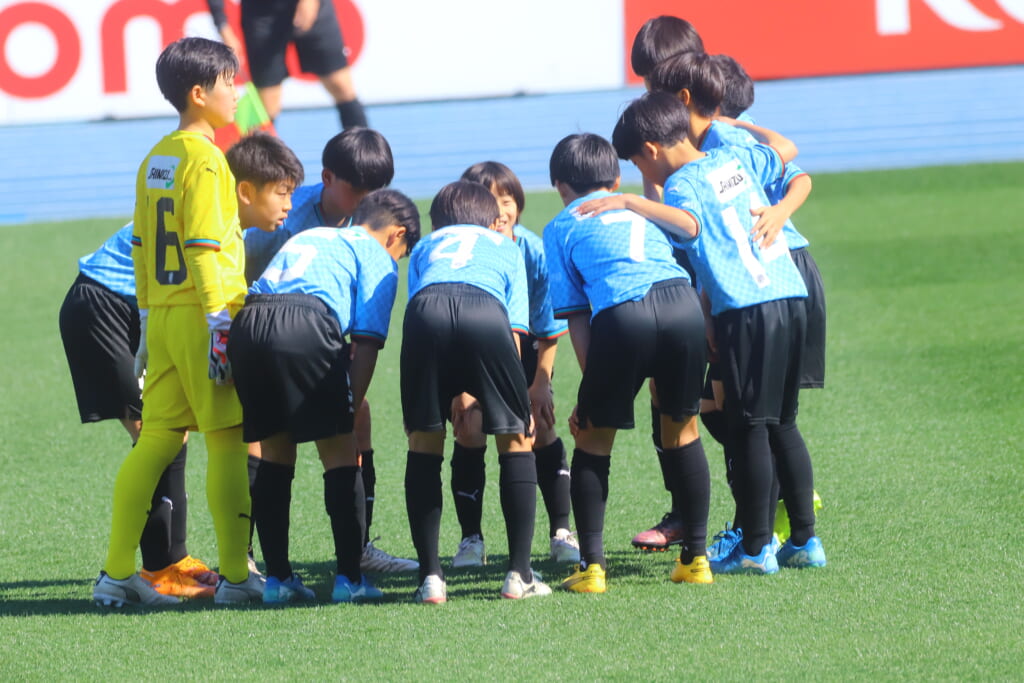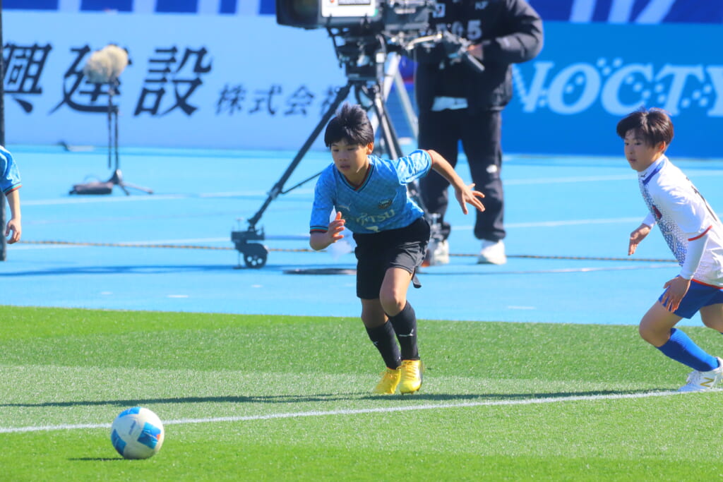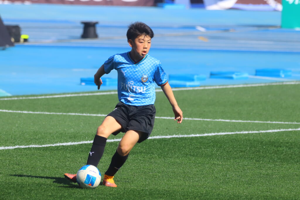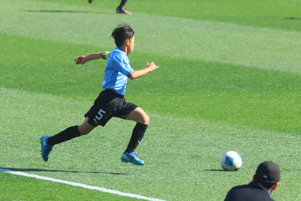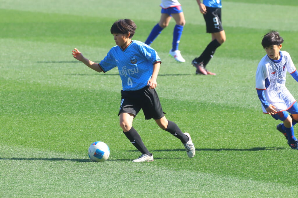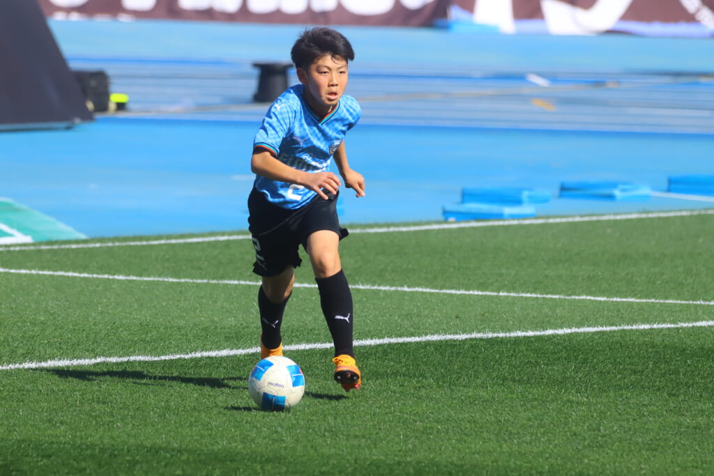 フロンターレの先発は、GK16梅木理生、最終ラインは右からキャプテンの5藤木乃以、新5年の2山口堂真、3成瀬文哉、7田中真祐斗、ボランチは14宮本櫂、8髙桑湊人、右MF4芳賀廣人、左MFは新5年の18福原暖太、前線には9長野優斗、10崔雲沧。