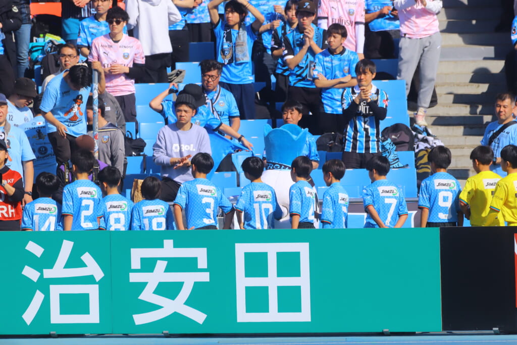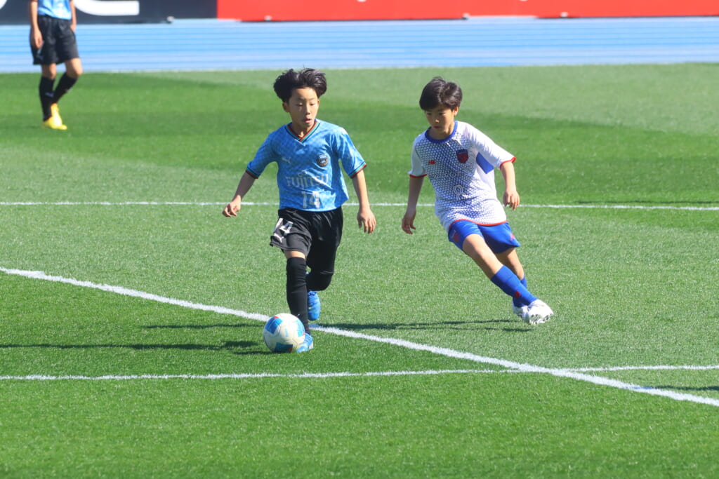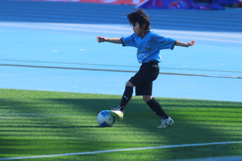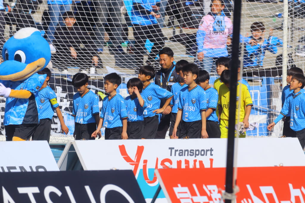 明治安田J1百年構想リーグは、第3節を迎え、川崎フロンターレはFC東京との伝統の一戦、多摩川クラシコに臨み、前座試合として川崎フロンターレU-12の新6年生たちとFC東京サッカーアドバンススクールによる「多摩川コラシコ」が行われました。