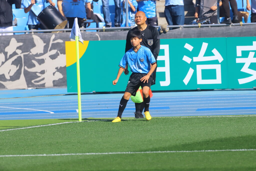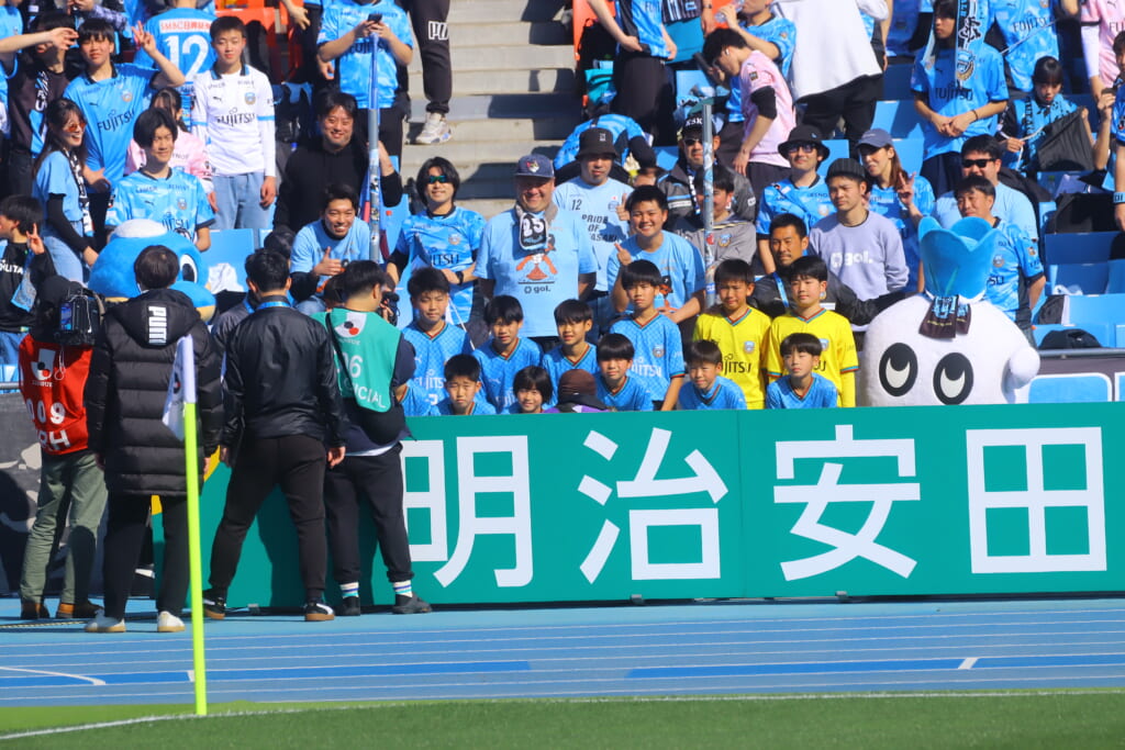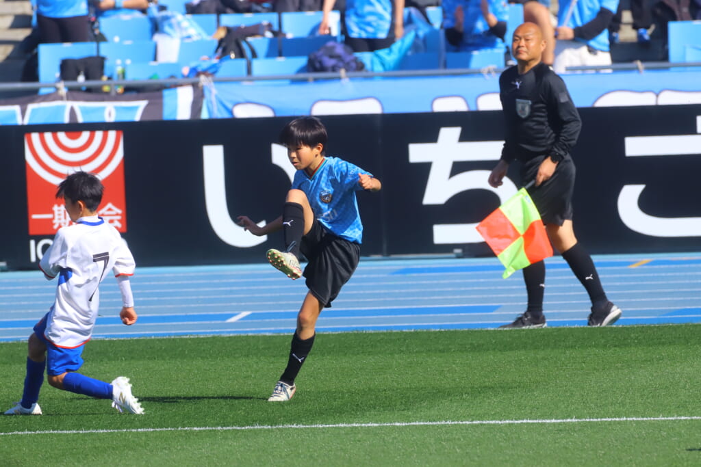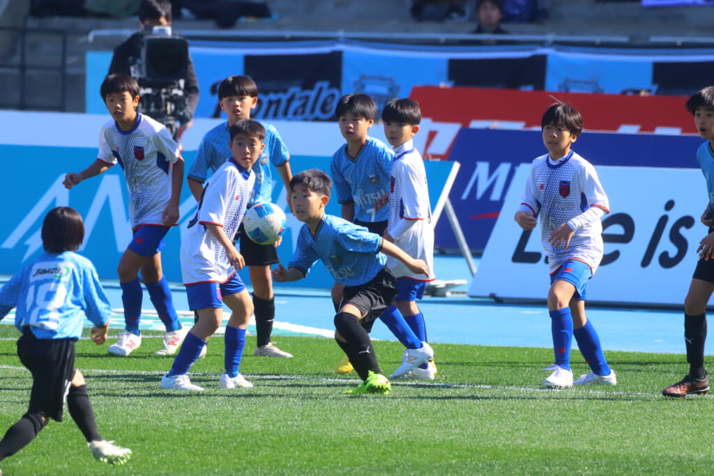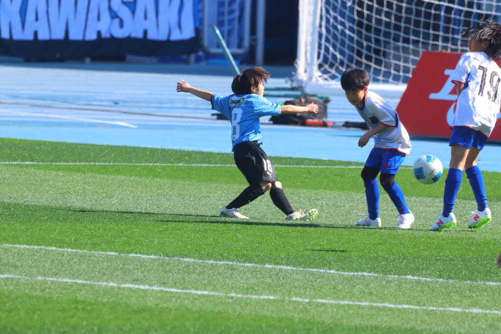 明治安田J1百年構想リーグは、第3節を迎え、川崎フロンターレはFC東京との伝統の一戦、多摩川クラシコに臨み、前座試合として川崎フロンターレU-12の新6年生たちとFC東京サッカーアドバンススクールによる「多摩川コラシコ」が行われました。