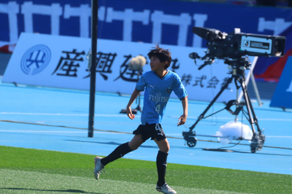 さらに直後には、フロンターレ。右サイドへ展開すると、芳賀がエリア外右へ。右足を振り抜くとゴールネットが揺れ、1-0。