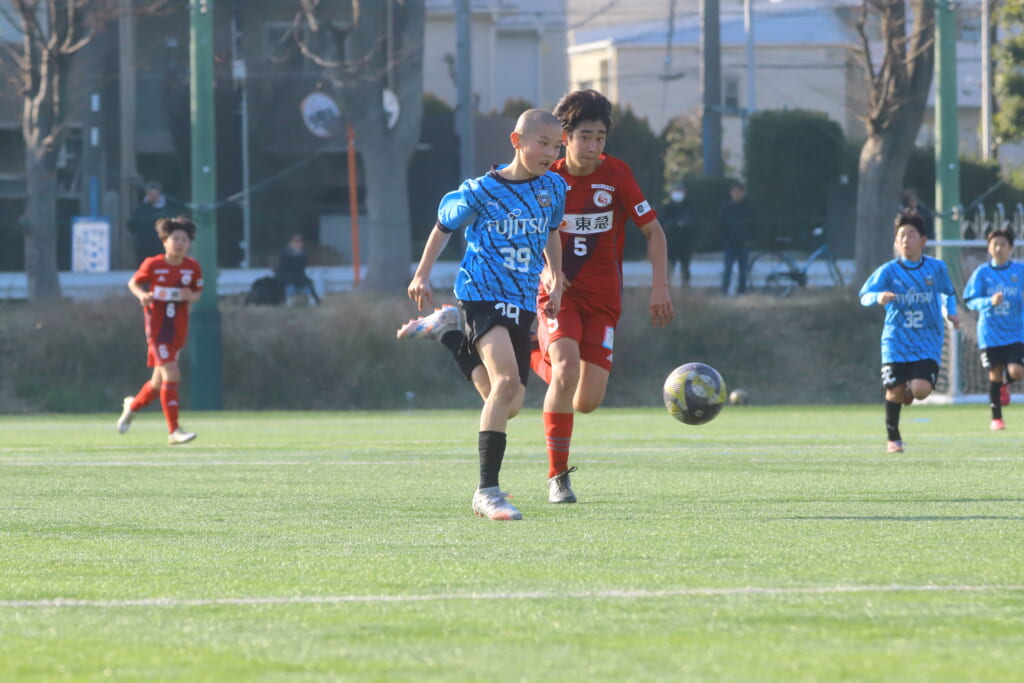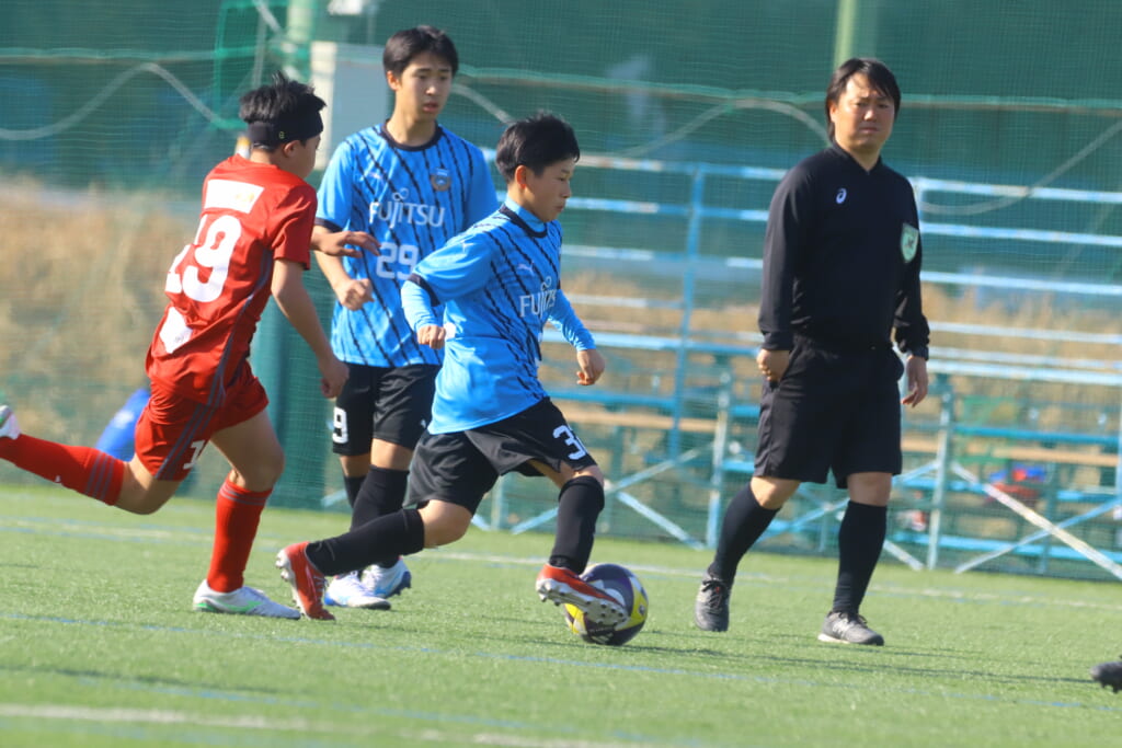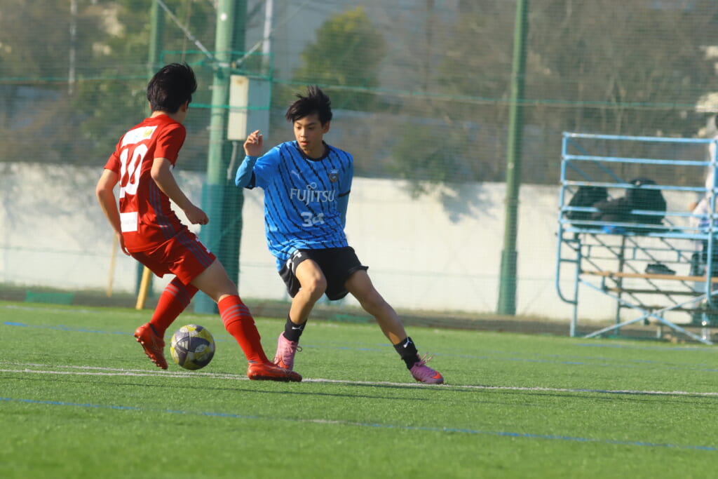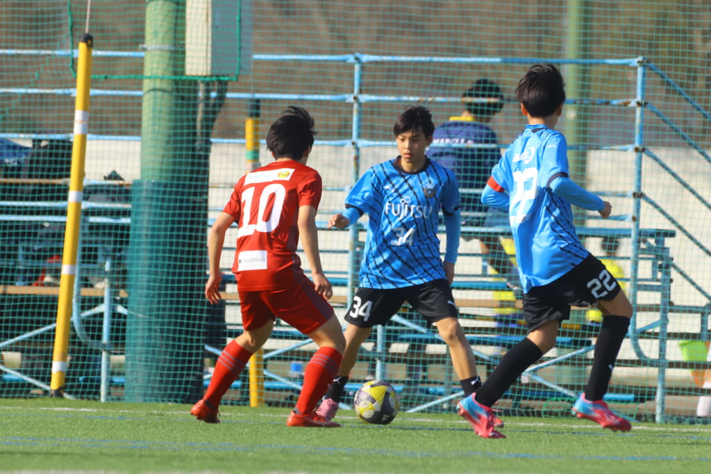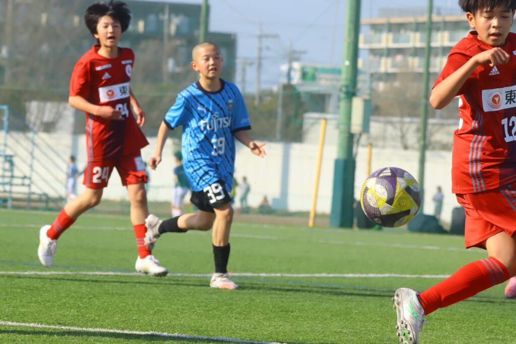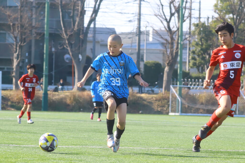 川崎フロンターレU-15等々力の2年生たちは、2月15日、神奈川県(U-15)サッカーリーグ3部の開幕戦、東急Sレイエス FC U-15戦に臨みました。