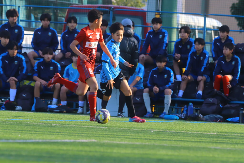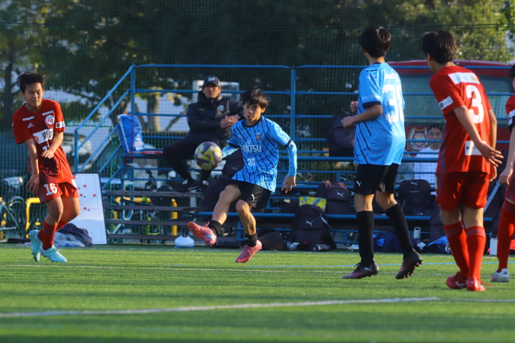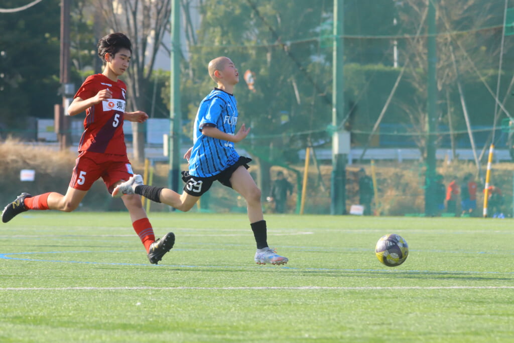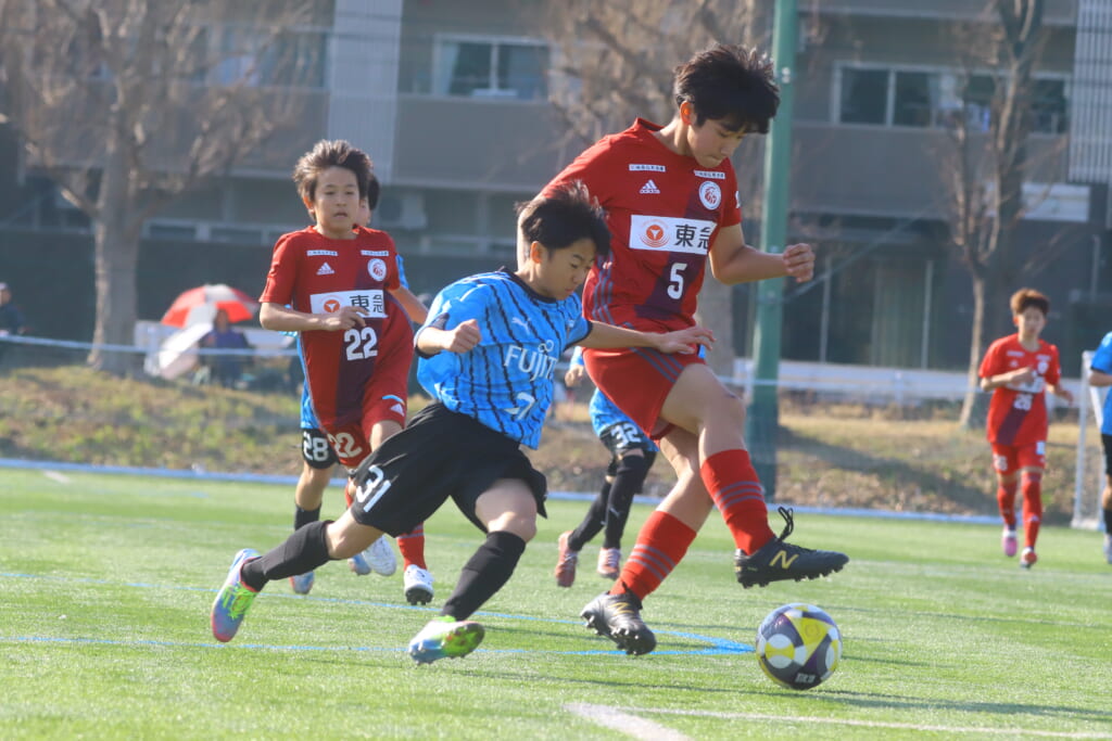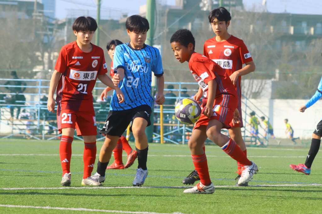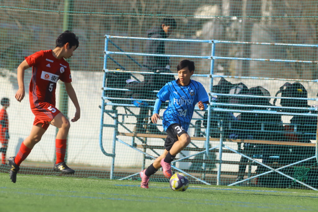 川崎フロンターレU-15等々力の2年生たちは、2月15日、神奈川県(U-15)サッカーリーグ3部の開幕戦、東急Sレイエス FC U-15戦に臨みました。