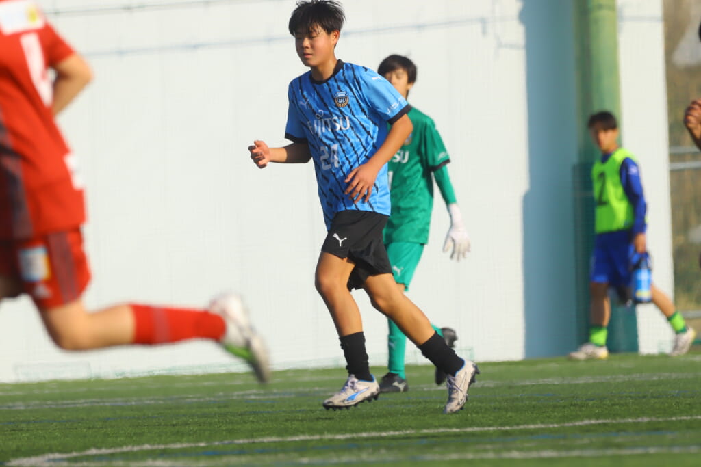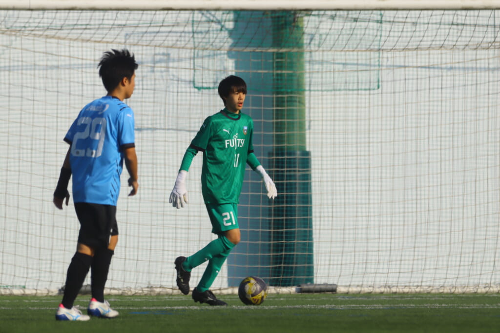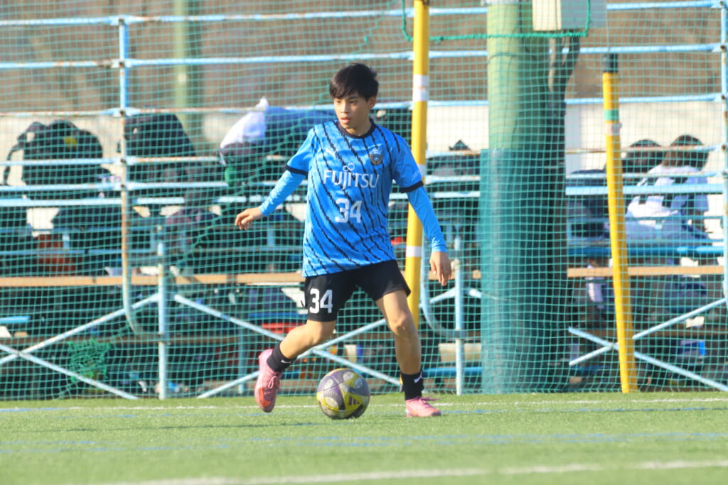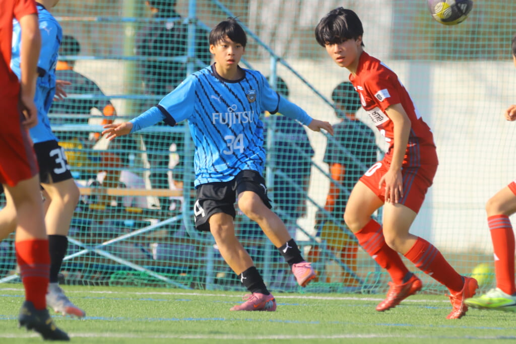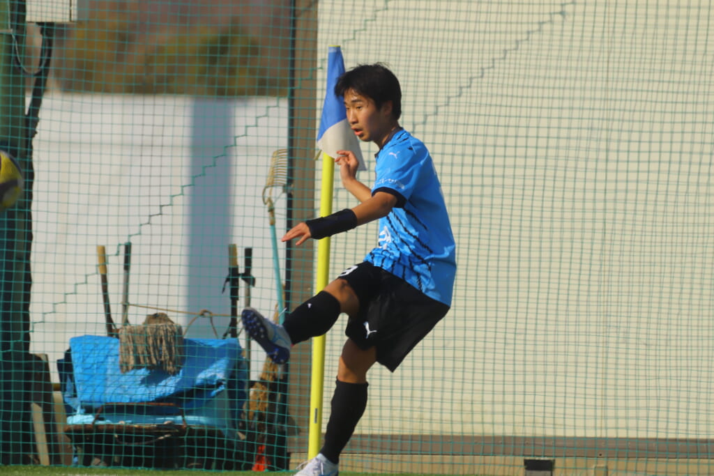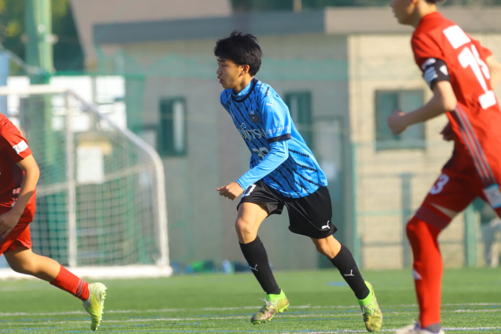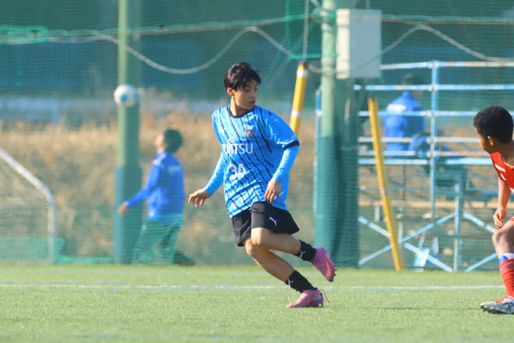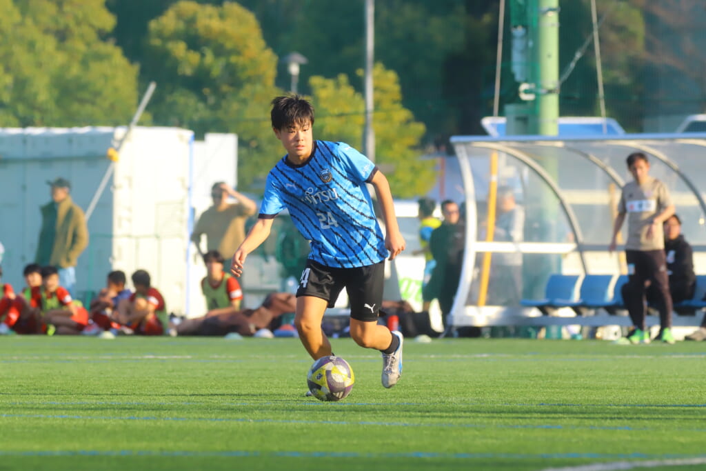 フロンターレ等々力の先発は、GK21山田龍青、最終ラインは右から38羽生吏、24大原颯仁、キャプテンの22小滝悠仁、26上口大遥、ボランチは32大久保晴瑠、29細川惟旭、右MF31相場依空、左MF34穂積樹、トップ下28川埜蒼真、前線には鈴木翔。