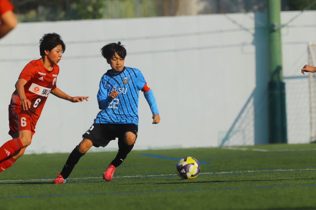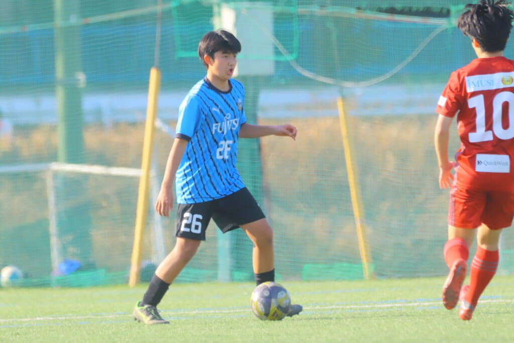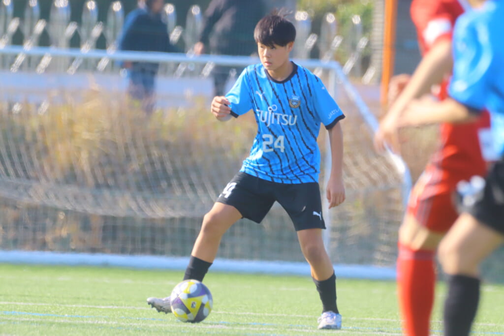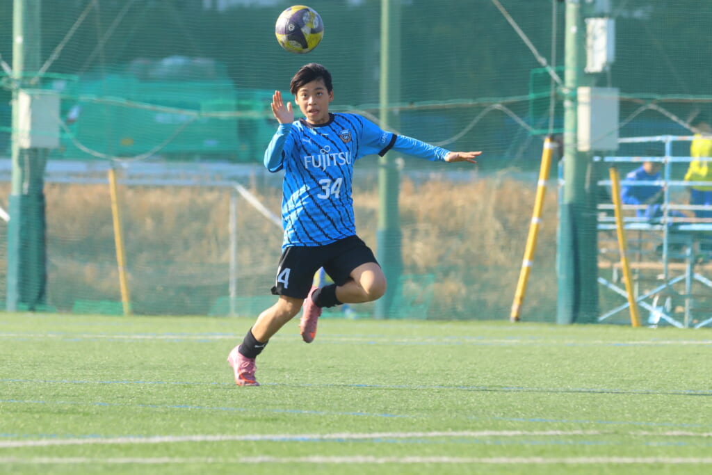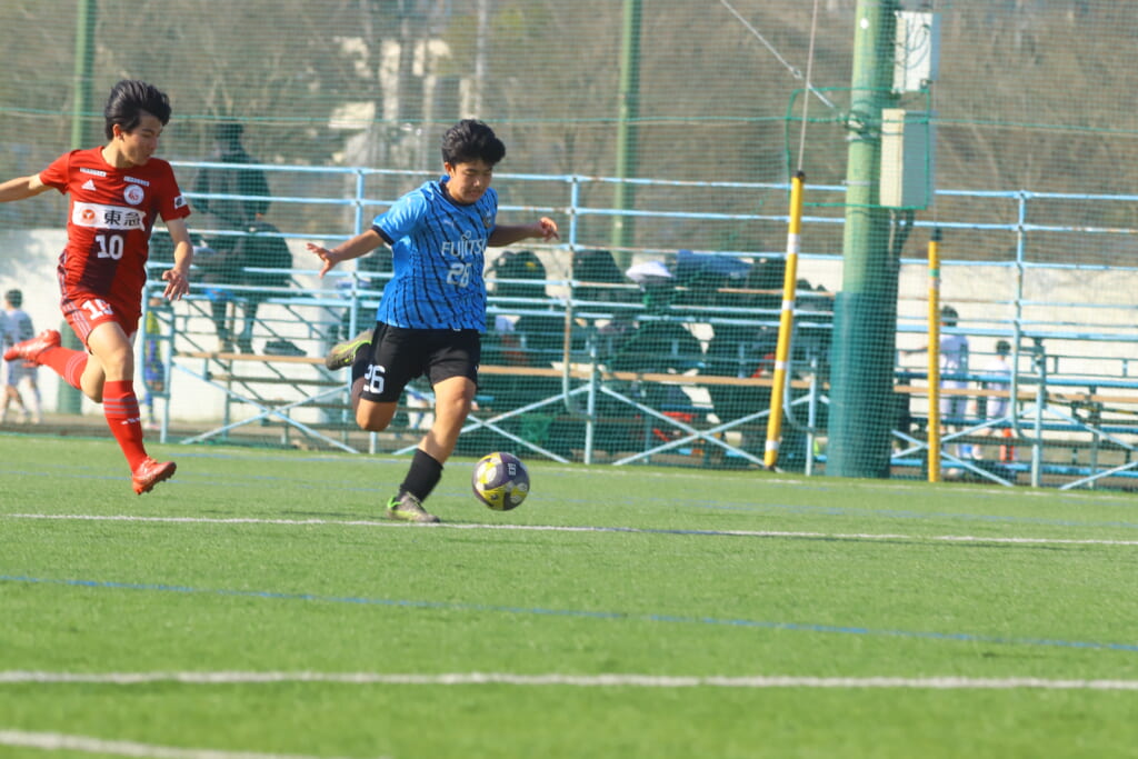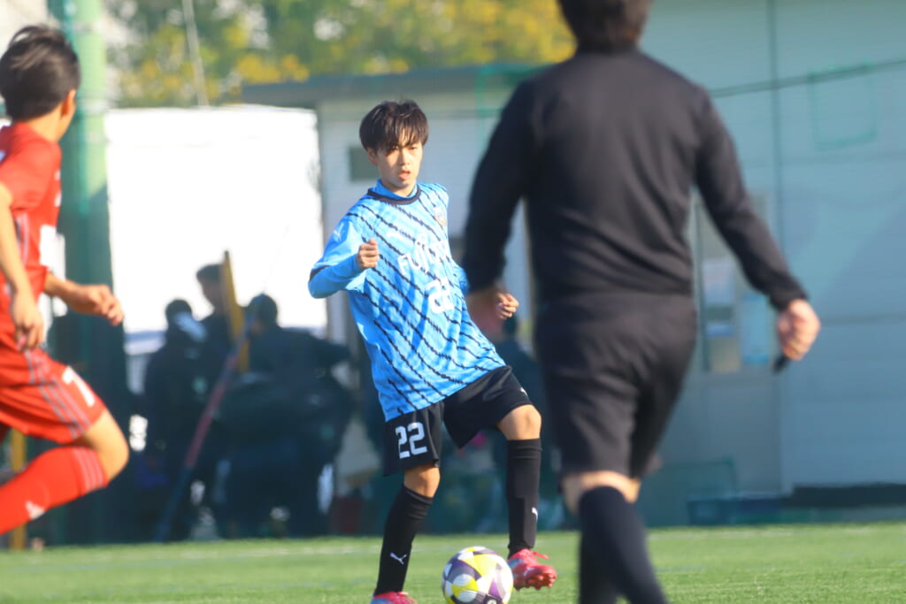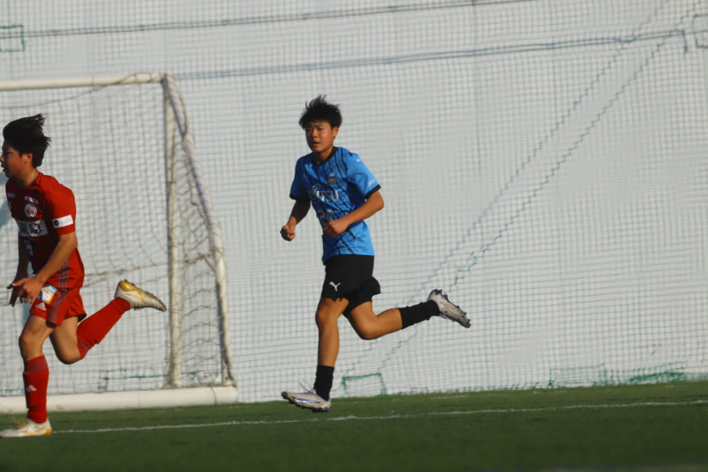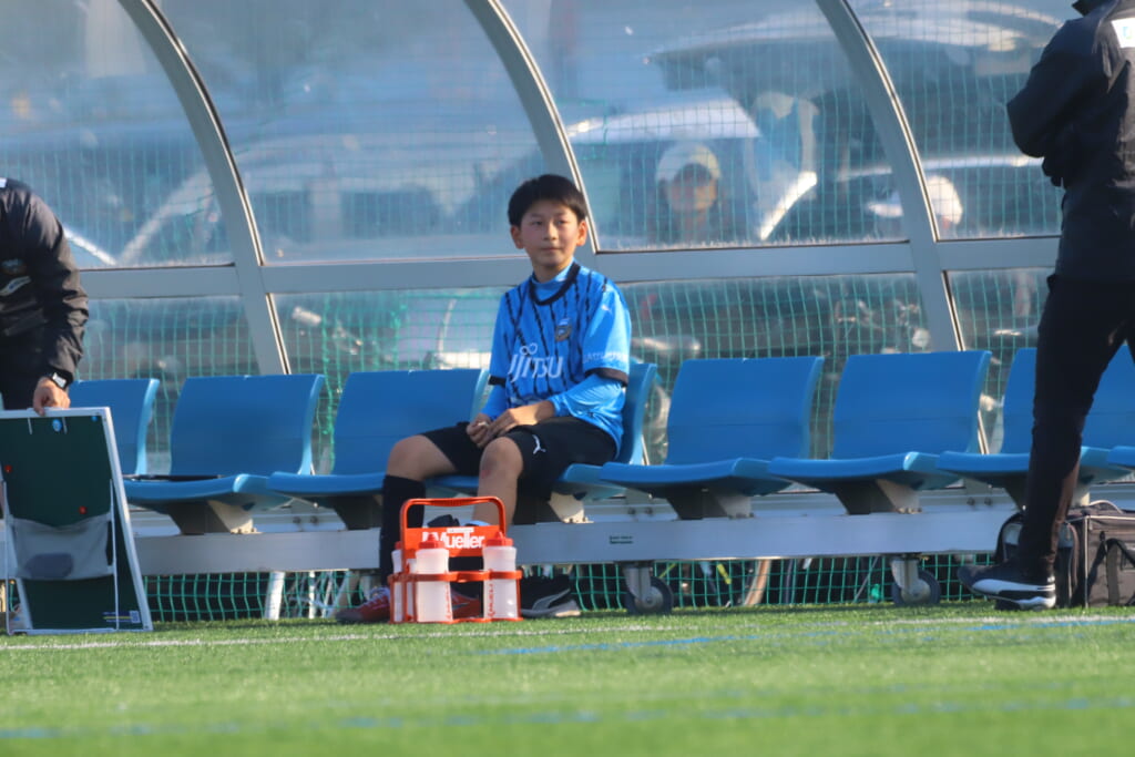 フロンターレ等々力の先発は、GK21山田龍青、最終ラインは右から38羽生吏、24大原颯仁、キャプテンの22小滝悠仁、26上口大遥、ボランチは32大久保晴瑠、29細川惟旭、右MF31相場依空、左MF34穂積樹、トップ下28川埜蒼真、前線には鈴木翔。