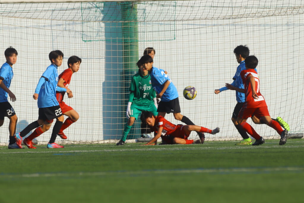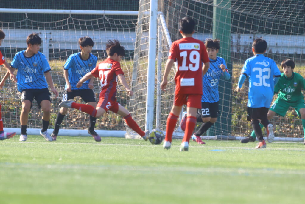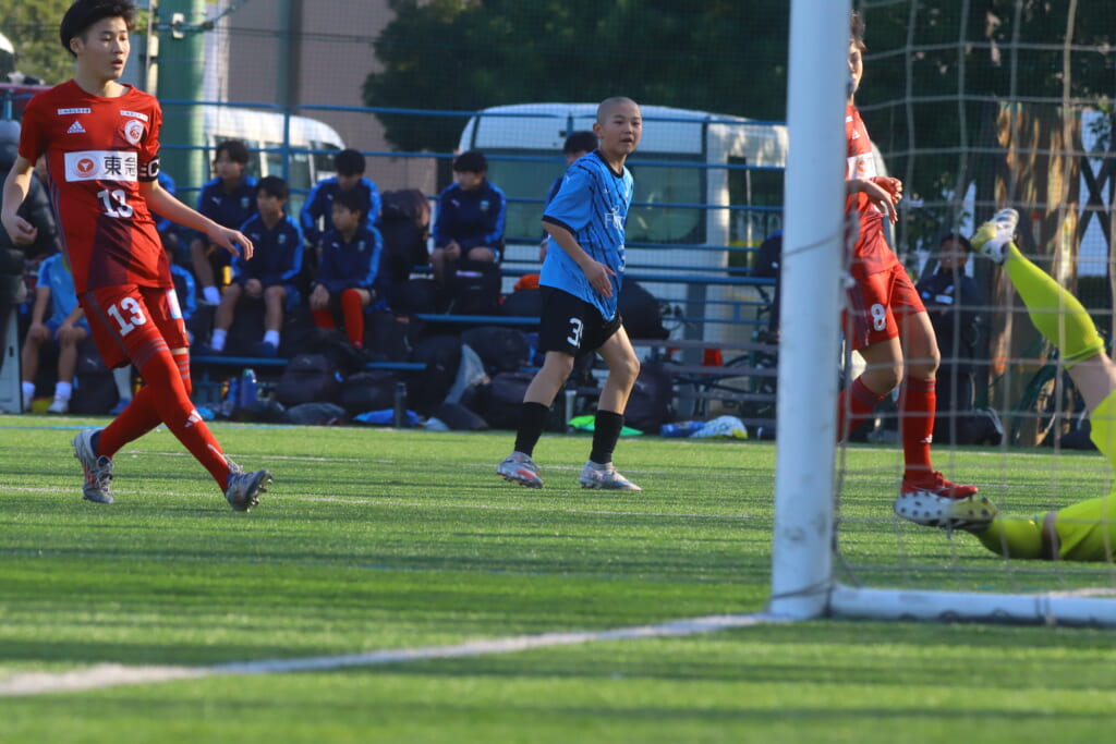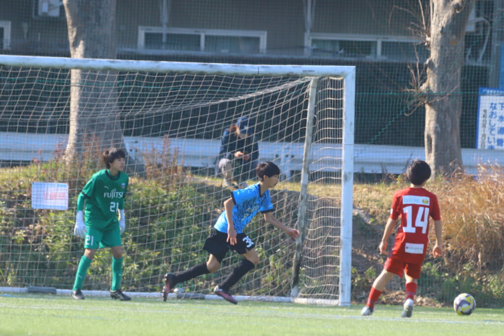 11分にはさらにフロンターレ等々力、細川のパスに鈴木が正面へ。シュートはクロスバーを叩き、得点とはなりませんでしたが、さらにフロンターレ等々力がチャンスをつくっていきます。
