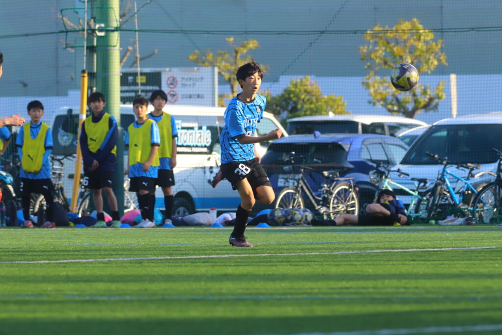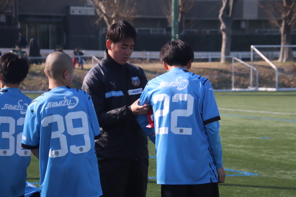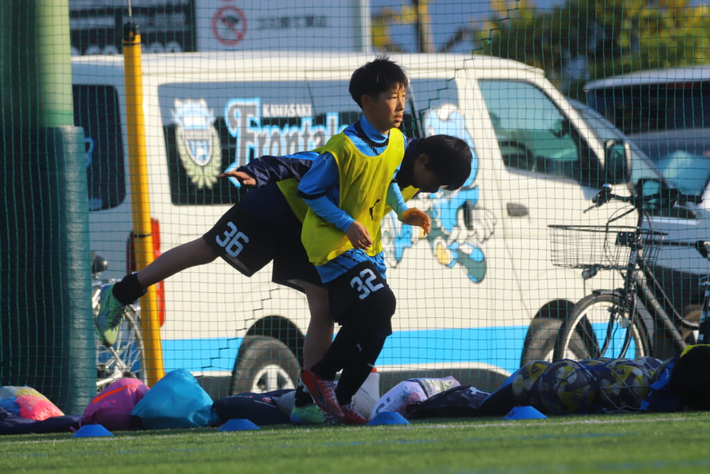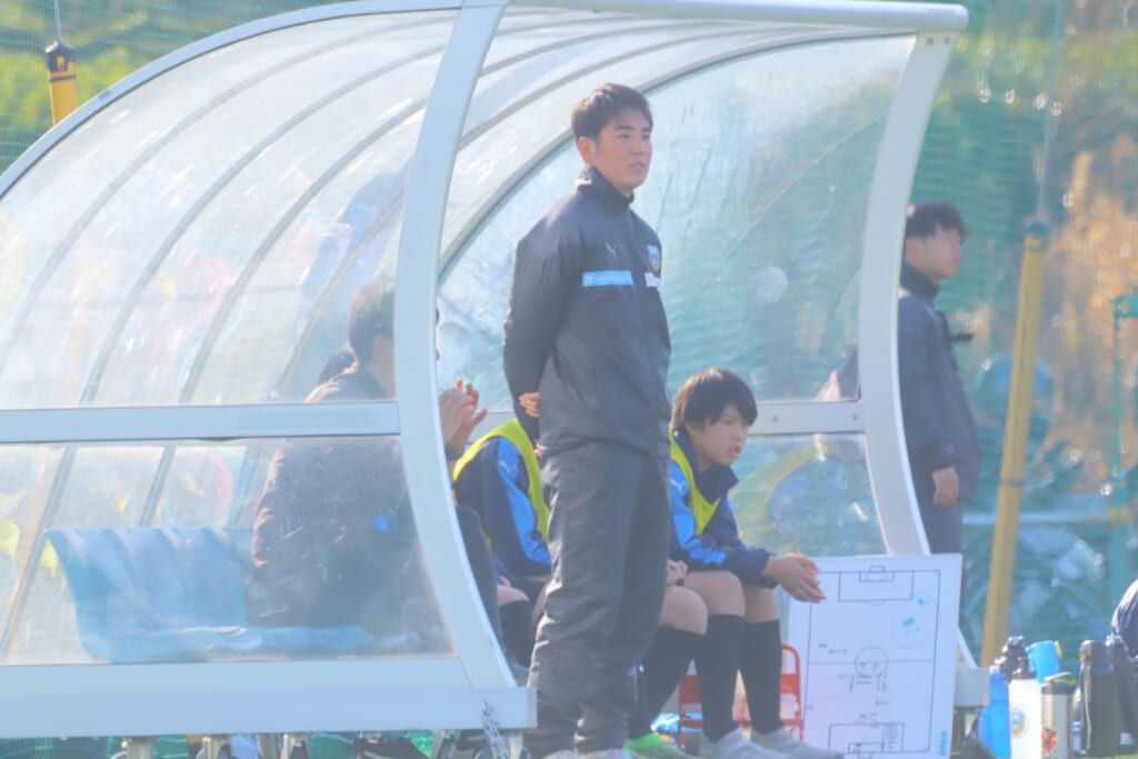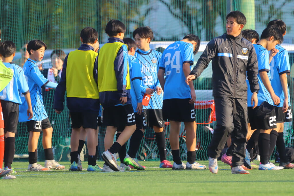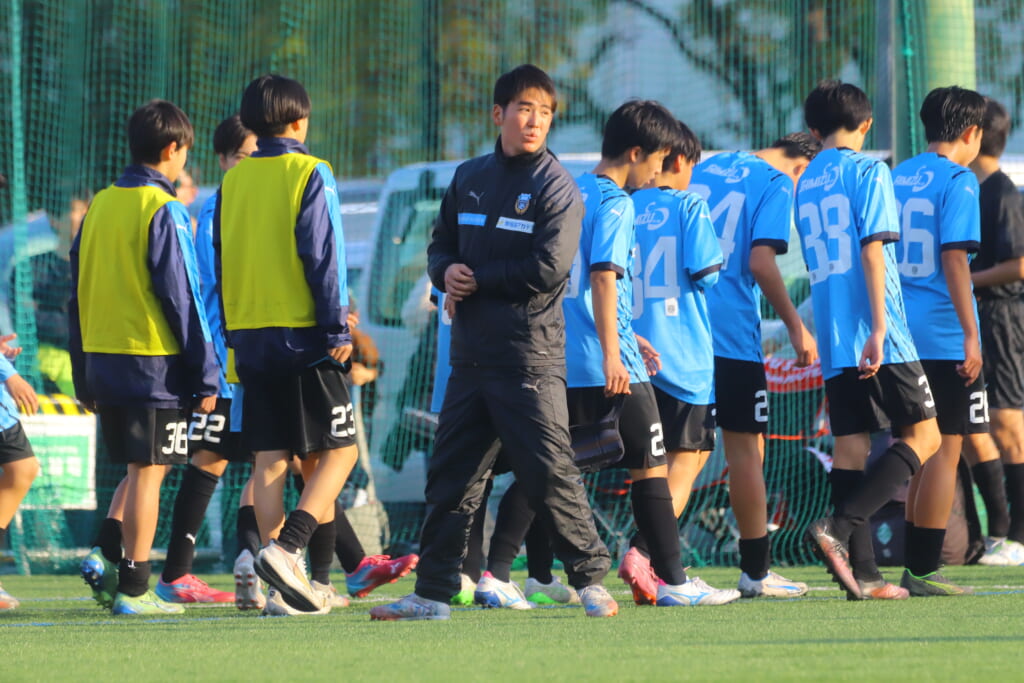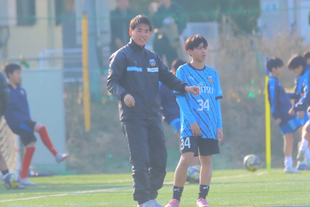 指導するのは、フロンターレ等々力のコーチに今季から就任、U-12からU-15までフロンターレのアカデミーで育った島田泰輝コーチ。