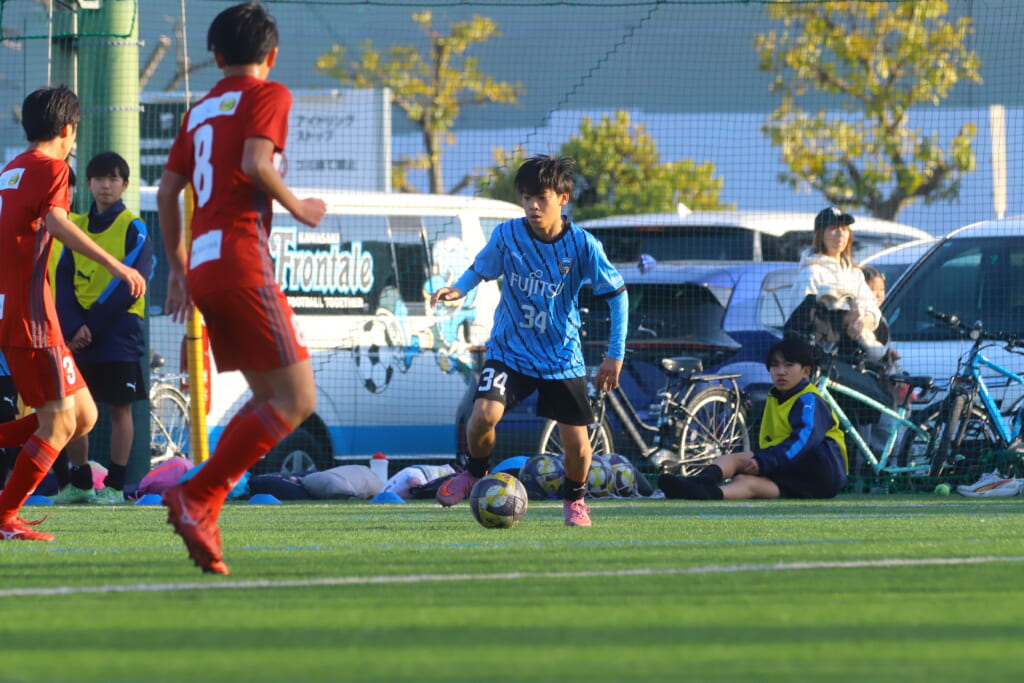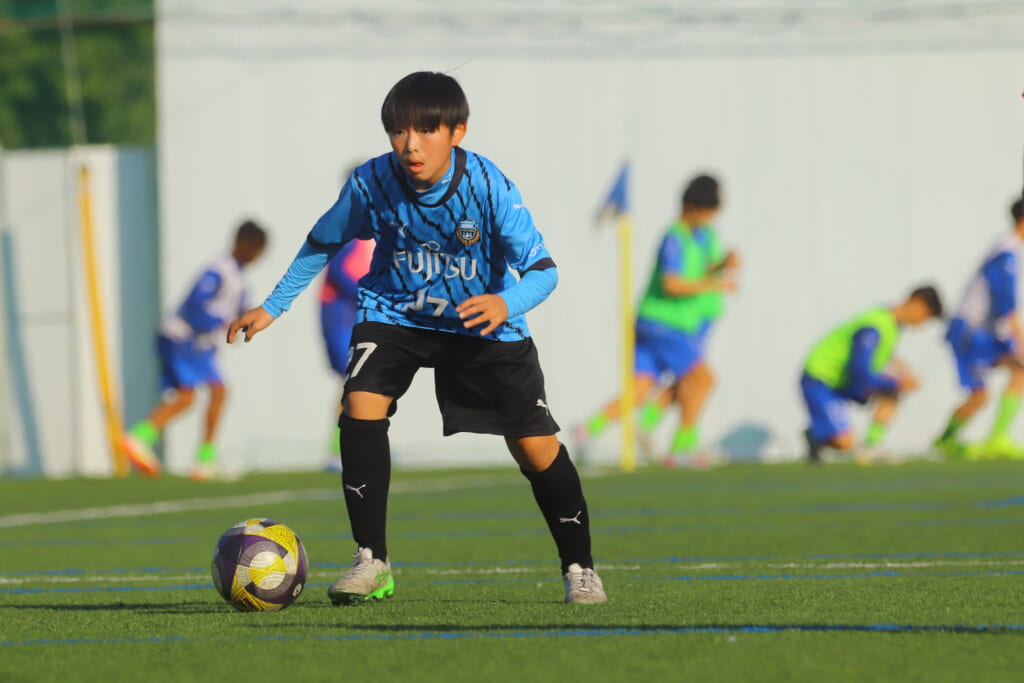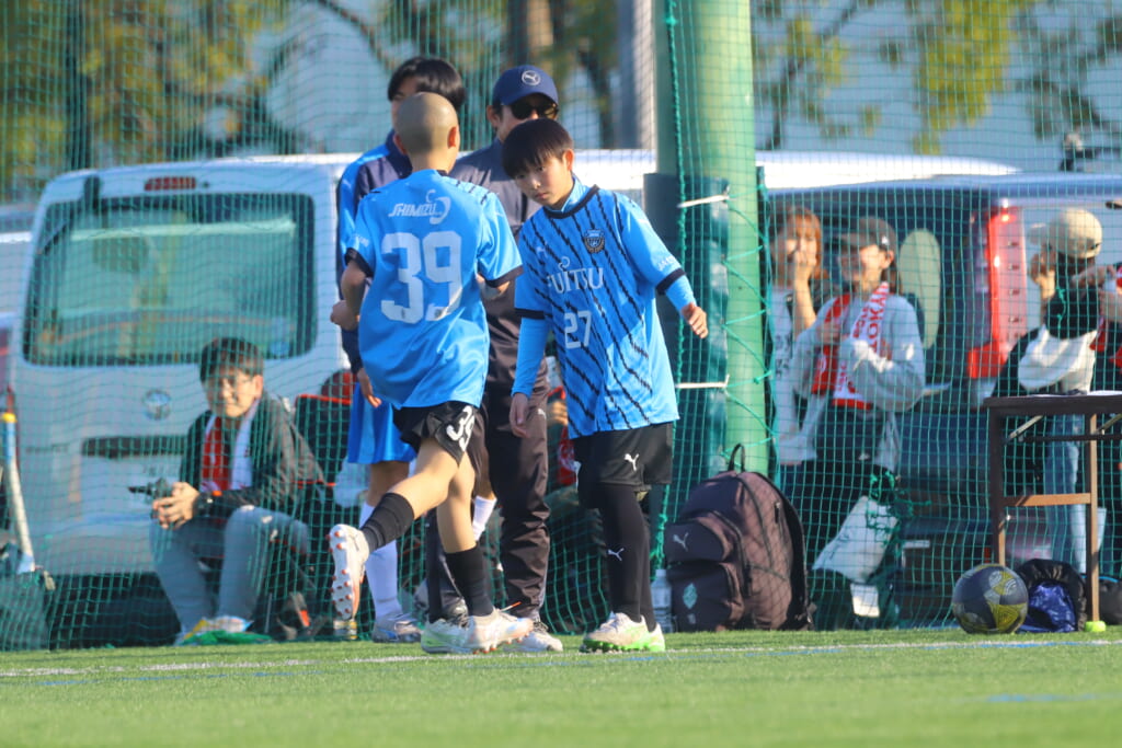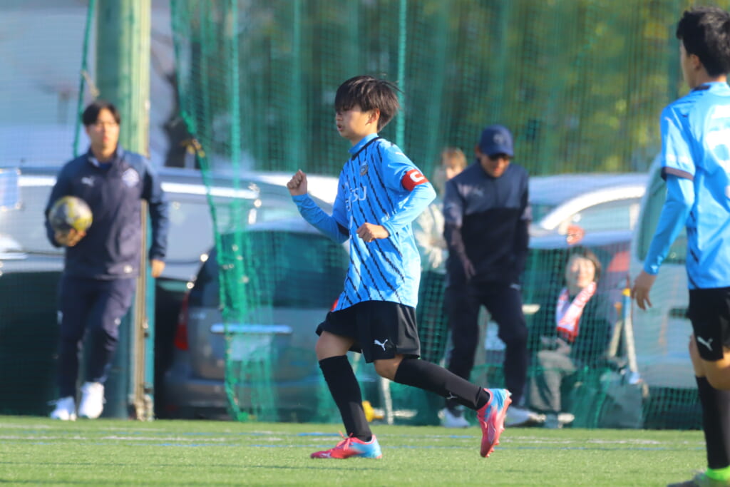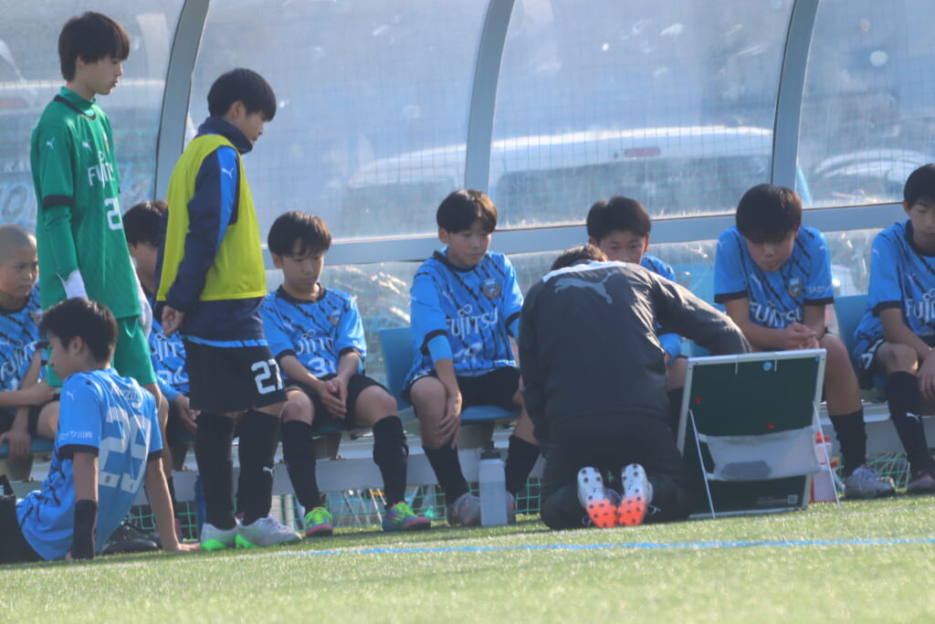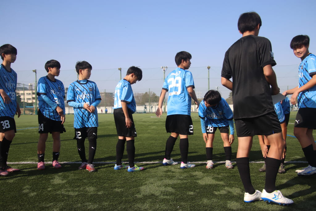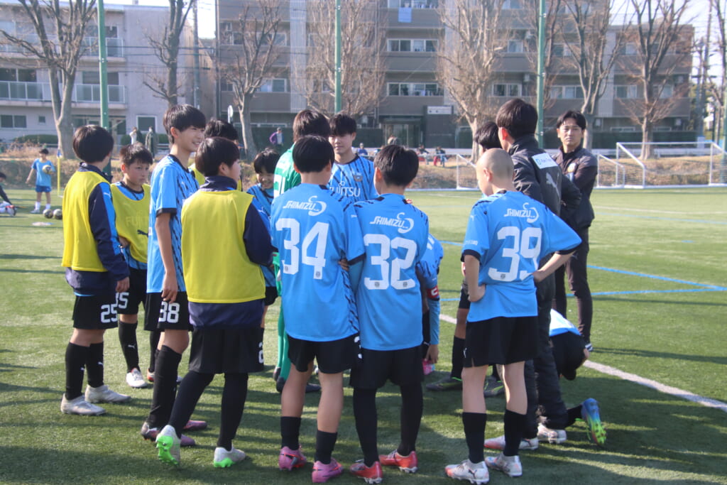 指導するのは、フロンターレ等々力のコーチに今季から就任、U-12からU-15までフロンターレのアカデミーで育った島田泰輝コーチ。
