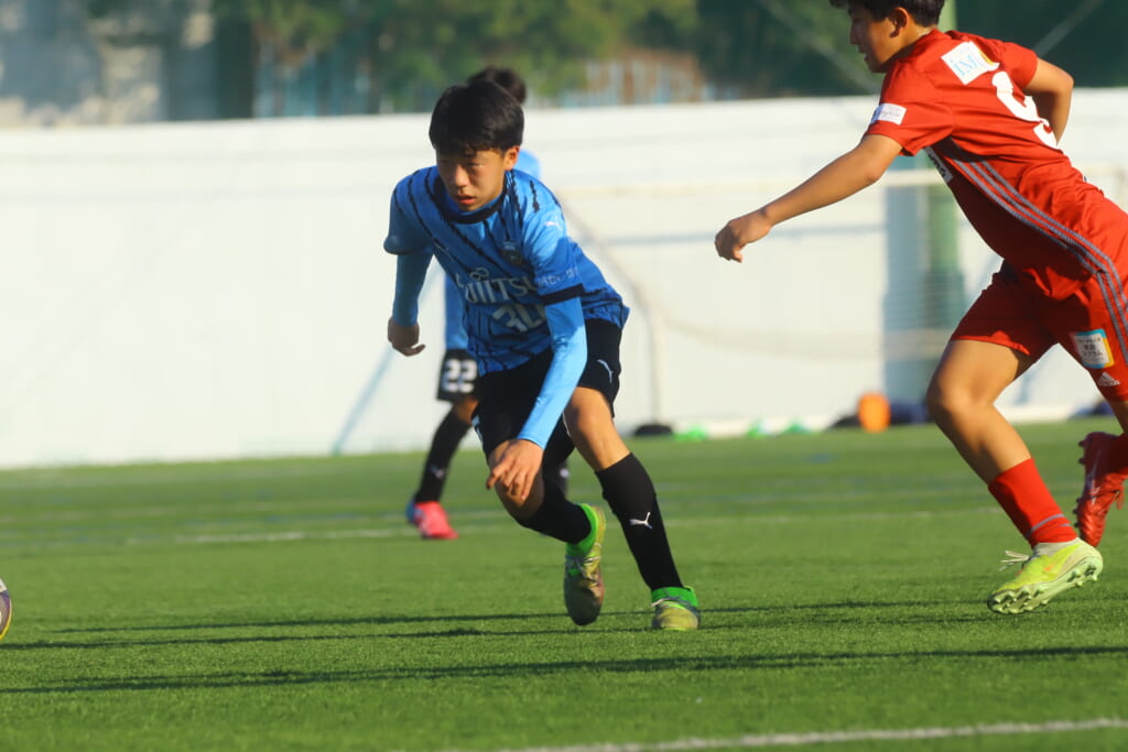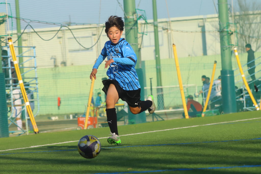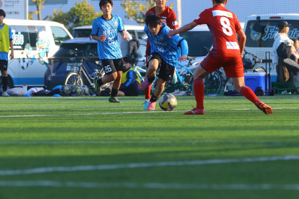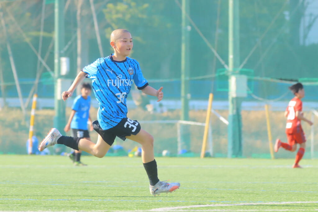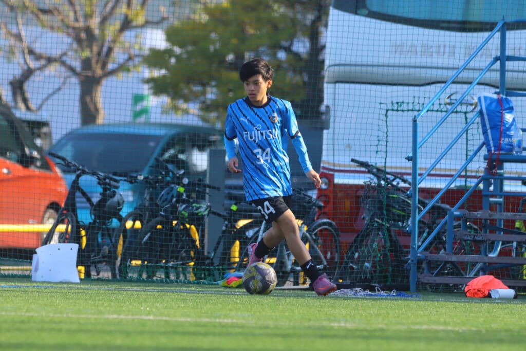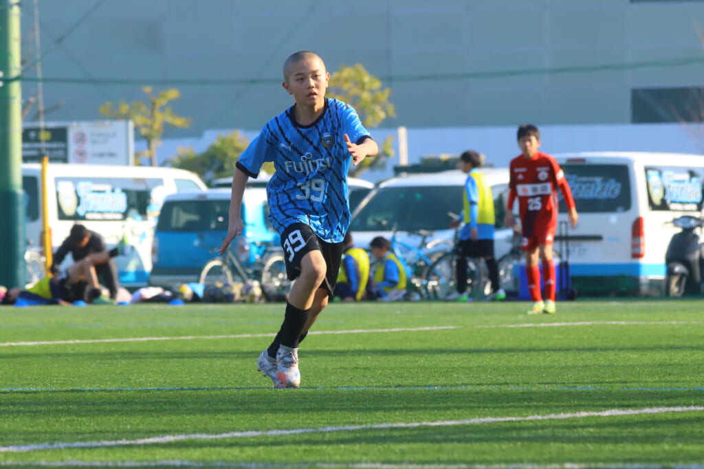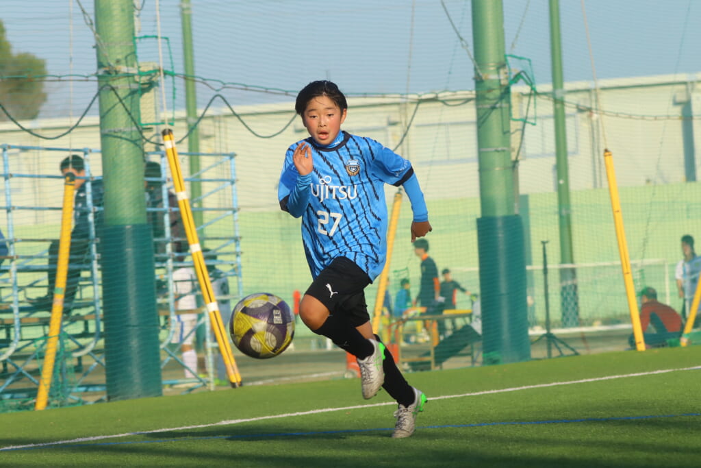 指導するのは、フロンターレ等々力のコーチに今季から就任、U-12からU-15までフロンターレのアカデミーで育った島田泰輝コーチ。