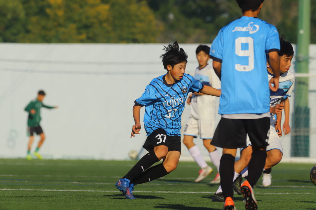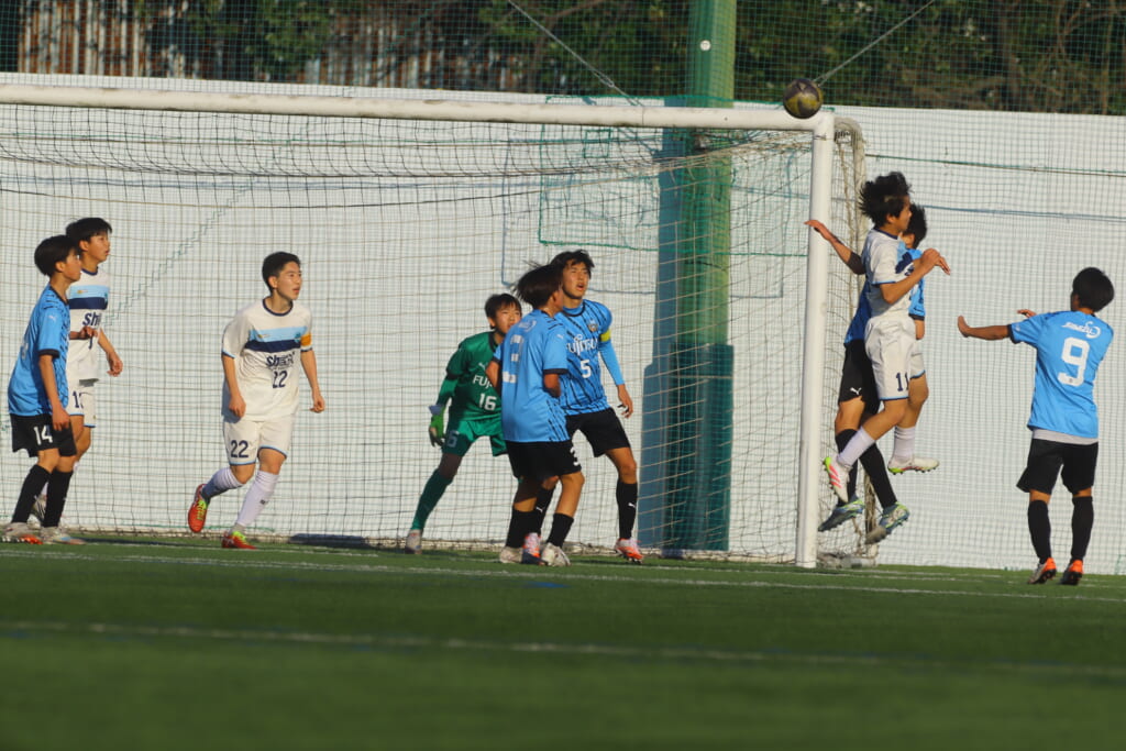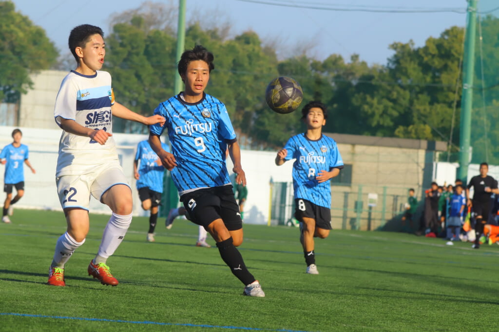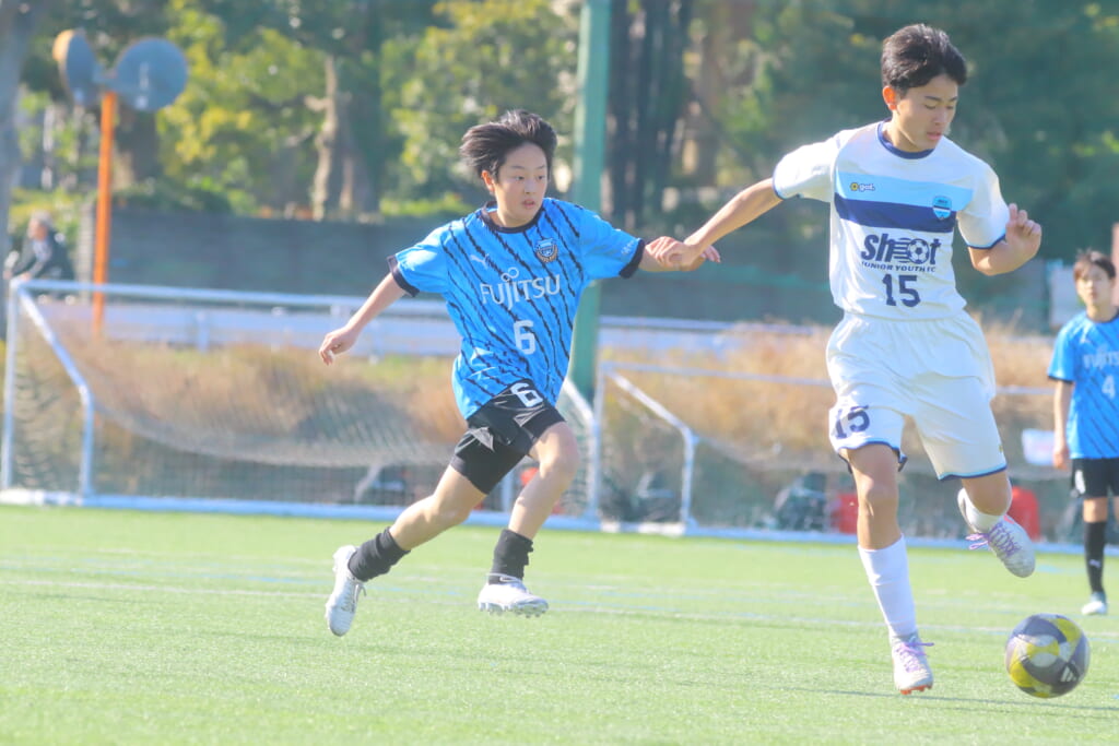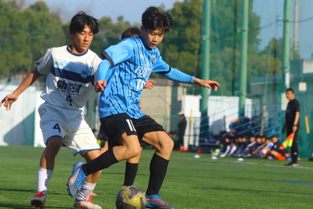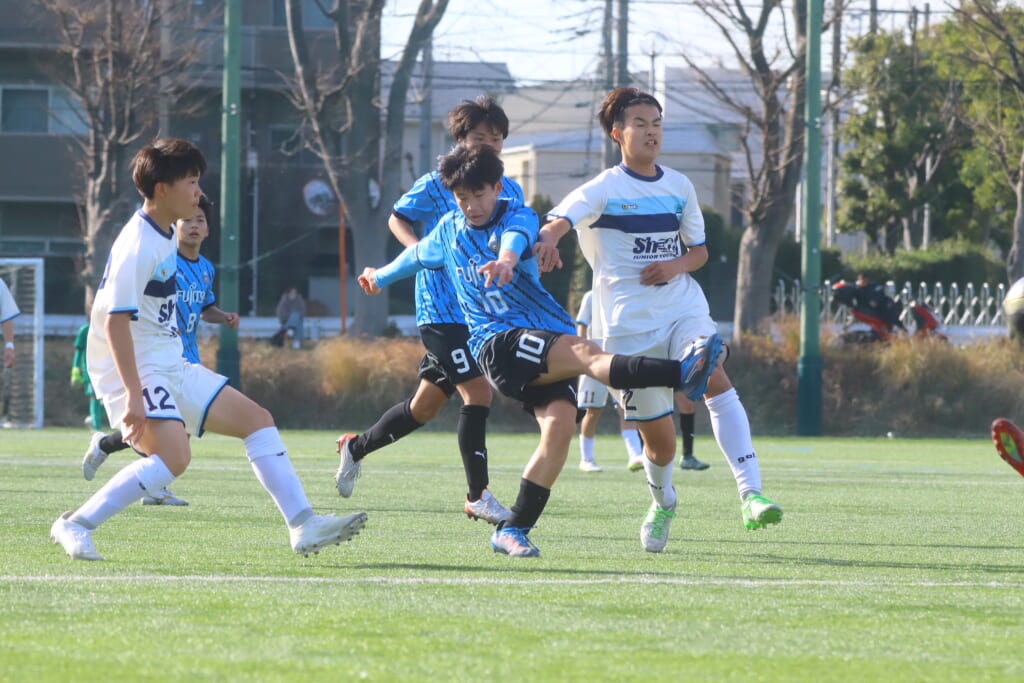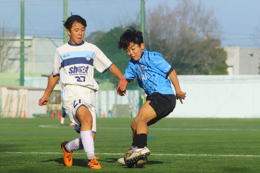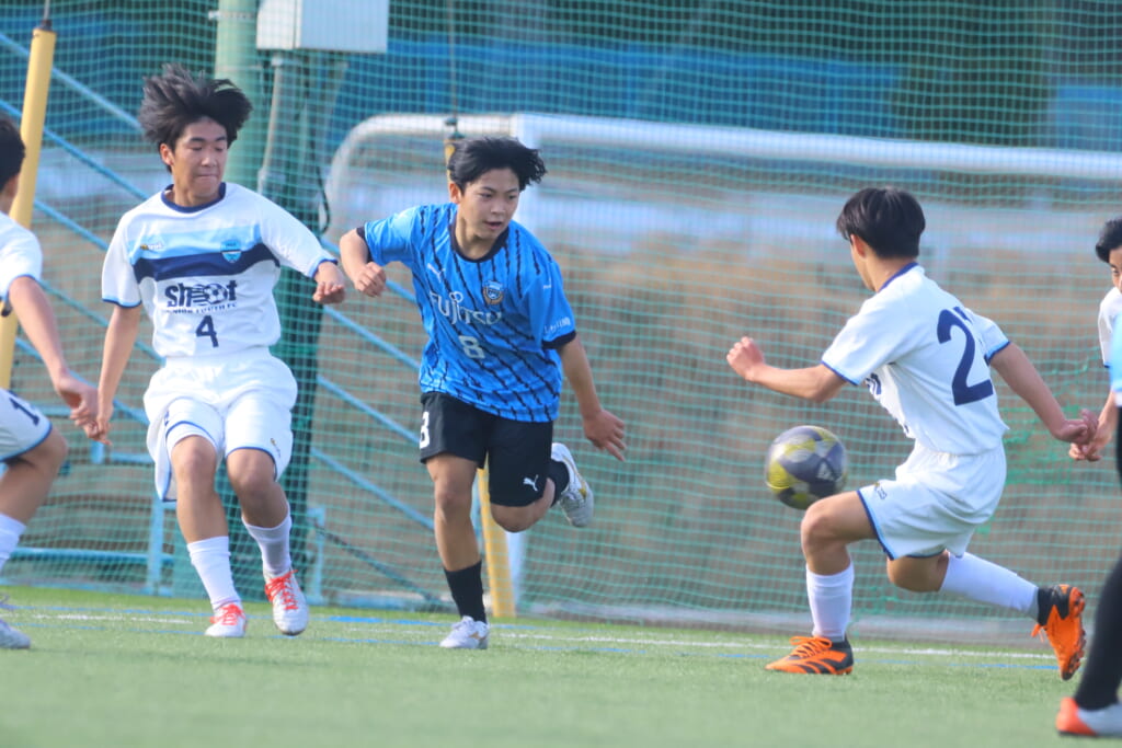 さらに中央で瀬川や中田がセカンドボールをものにし、フロンターレ等々力の陣内でプレーする時間をつくるシュートJrユース。