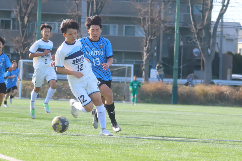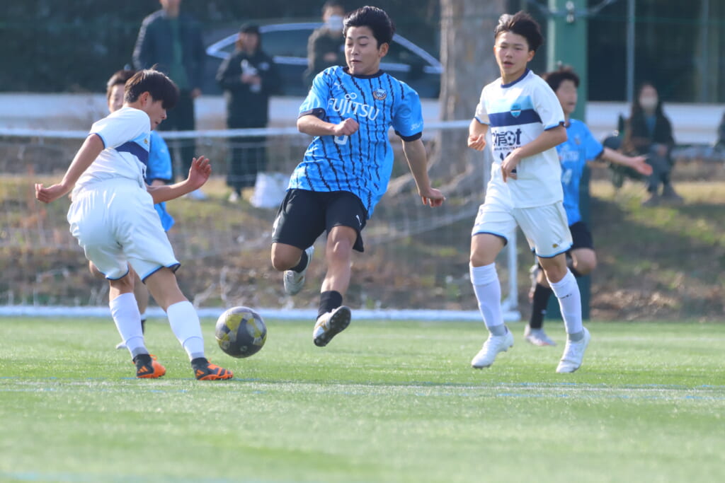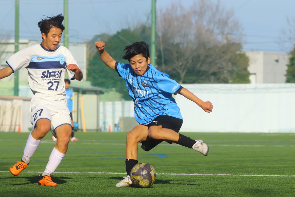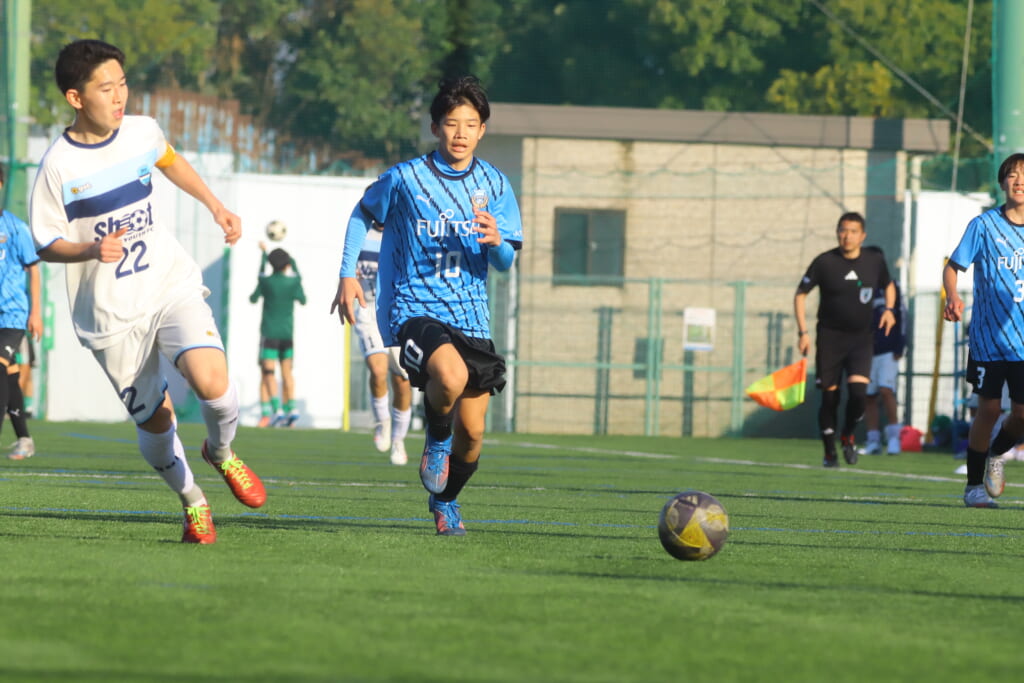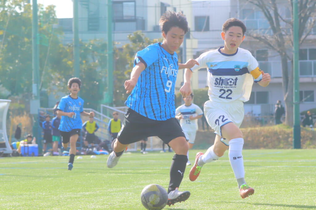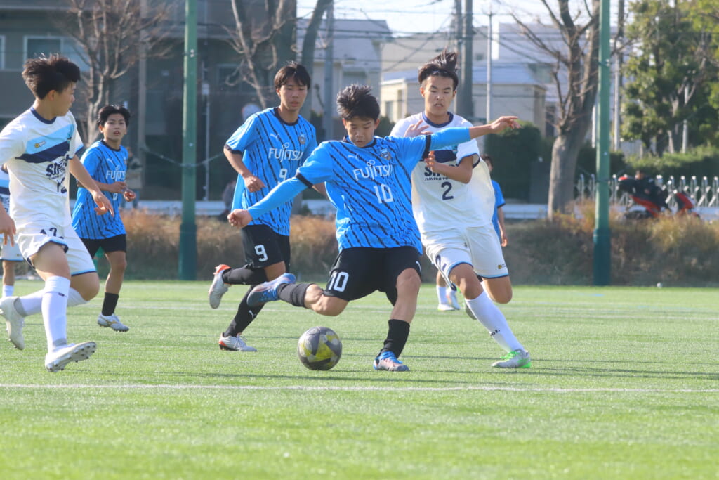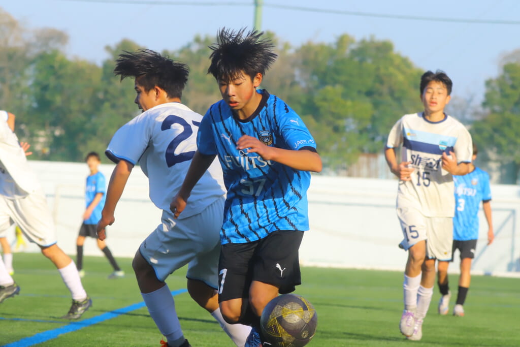さらに中央で瀬川や中田がセカンドボールをものにし、フロンターレ等々力の陣内でプレーする時間をつくるシュートJrユース。