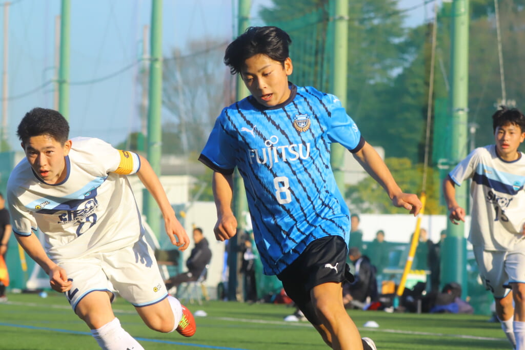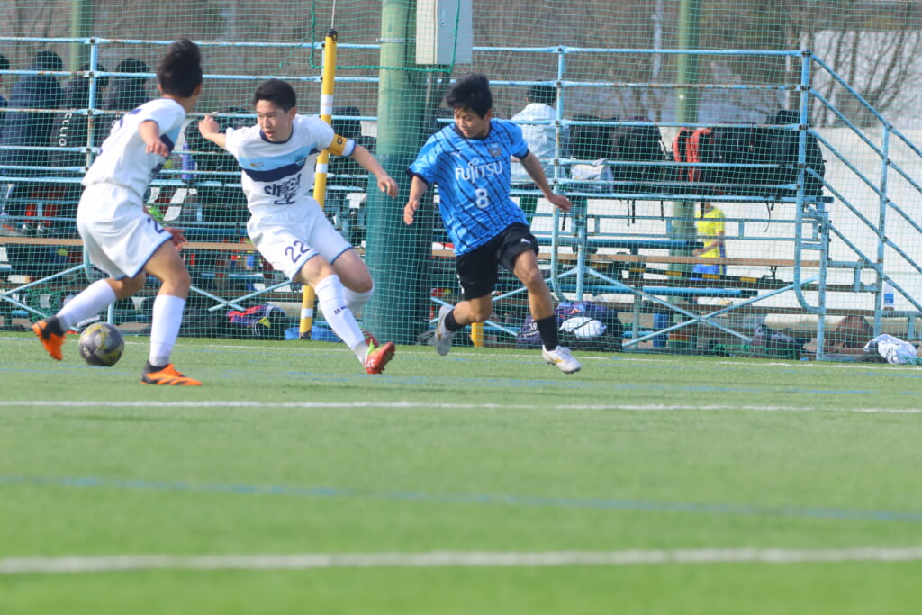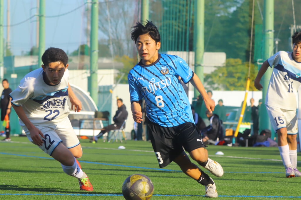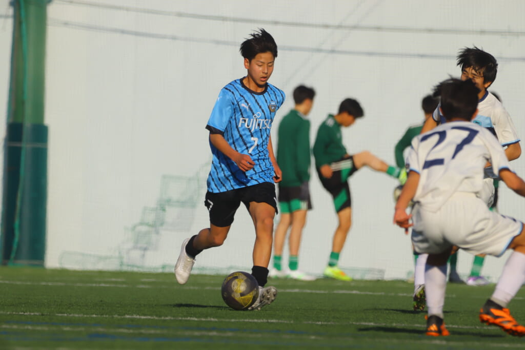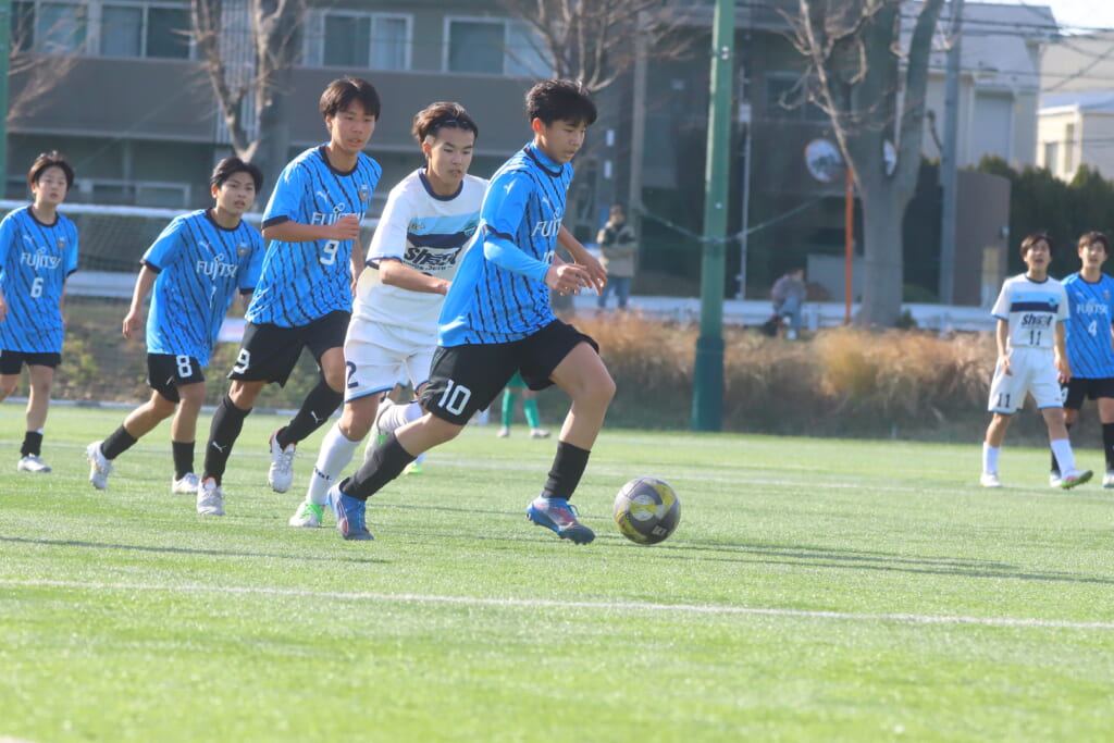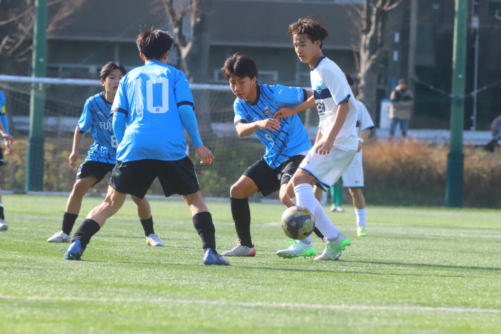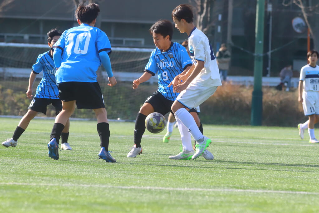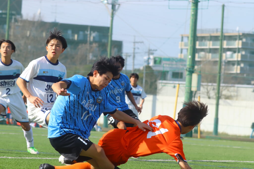 さらに中央で瀬川や中田がセカンドボールをものにし、フロンターレ等々力の陣内でプレーする時間をつくるシュートJrユース。