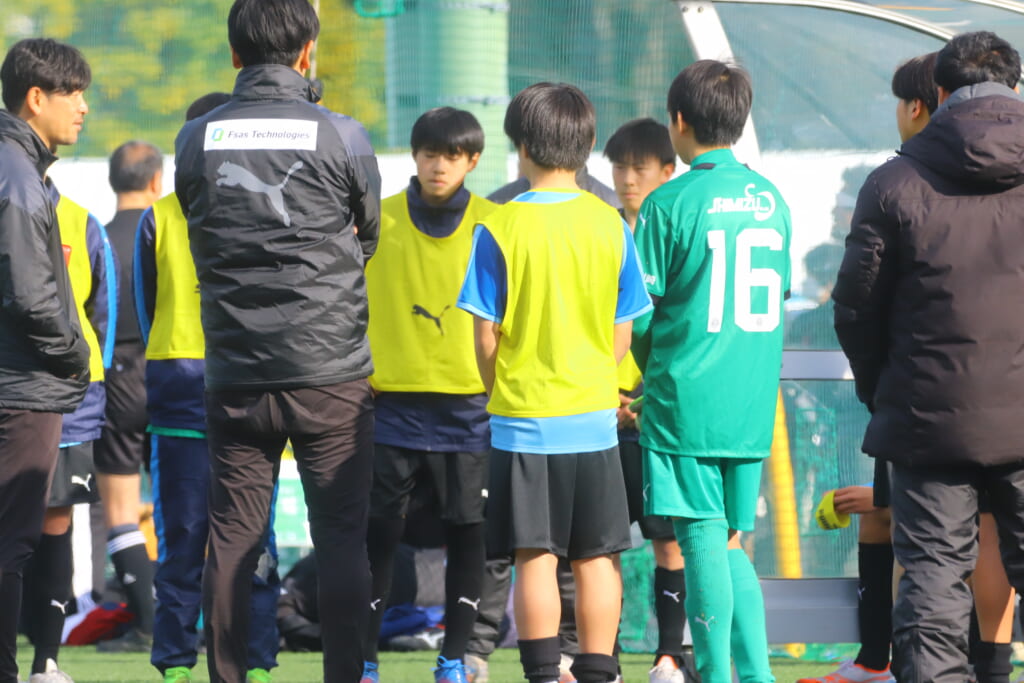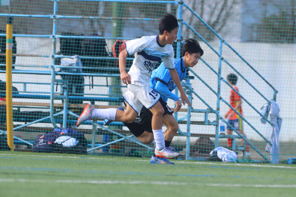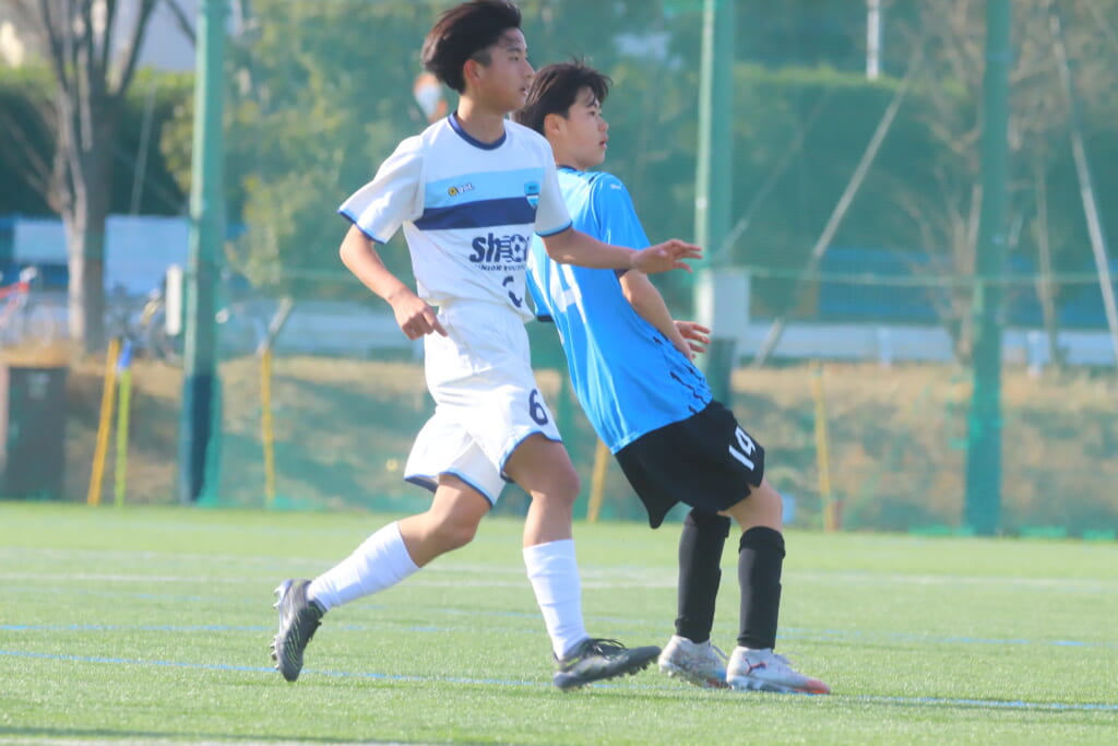 4分には、荻原のパスに大寺が正面へ抜け出しそうになりますが、シュートJrユースは中田がカットそこから右サイドへ展開。